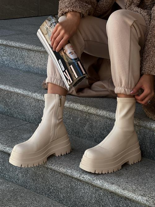 Зимние ботинки из экокожи на массивной подошве. Застежка в виде молнии сбоку, квадратный нос, массивная подошва из термопластичной резины.