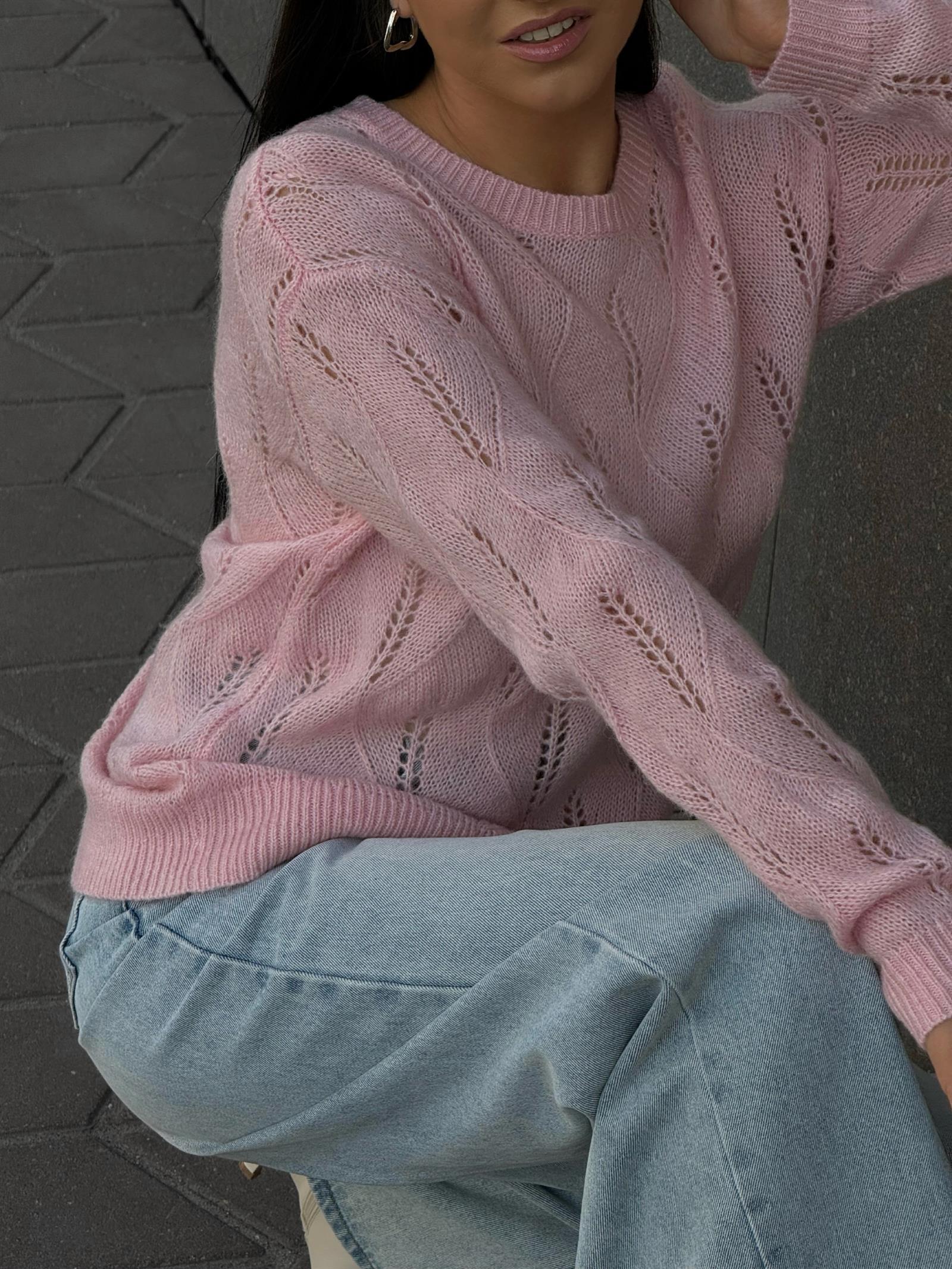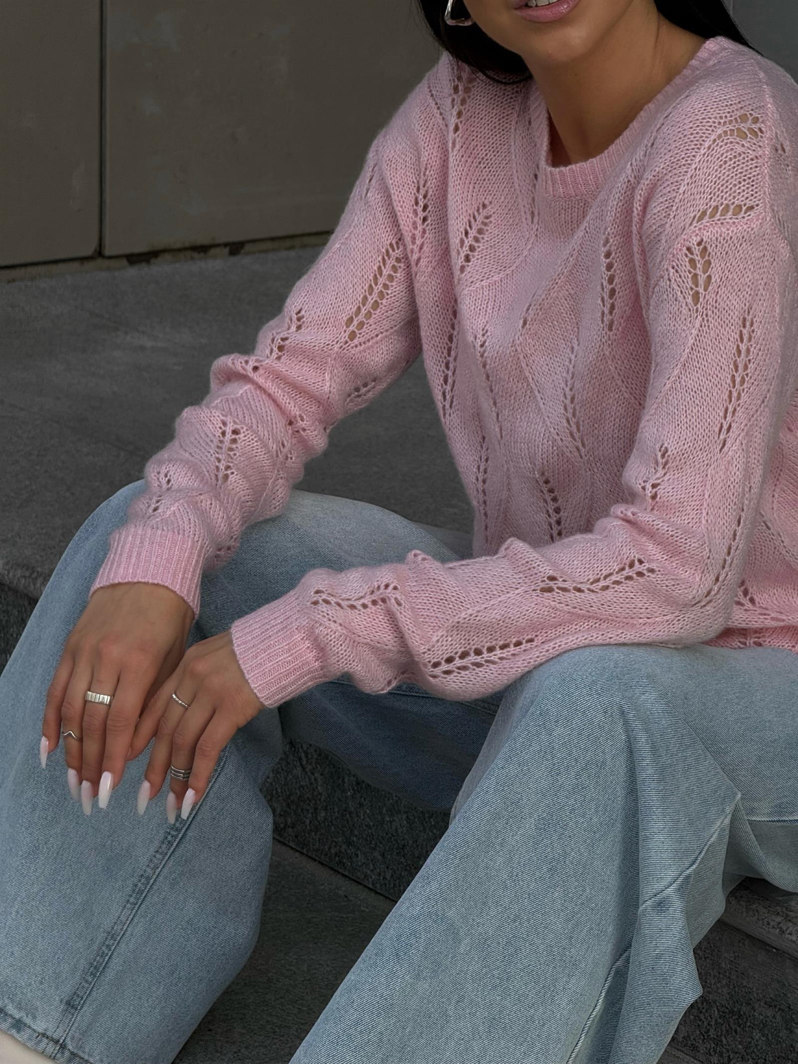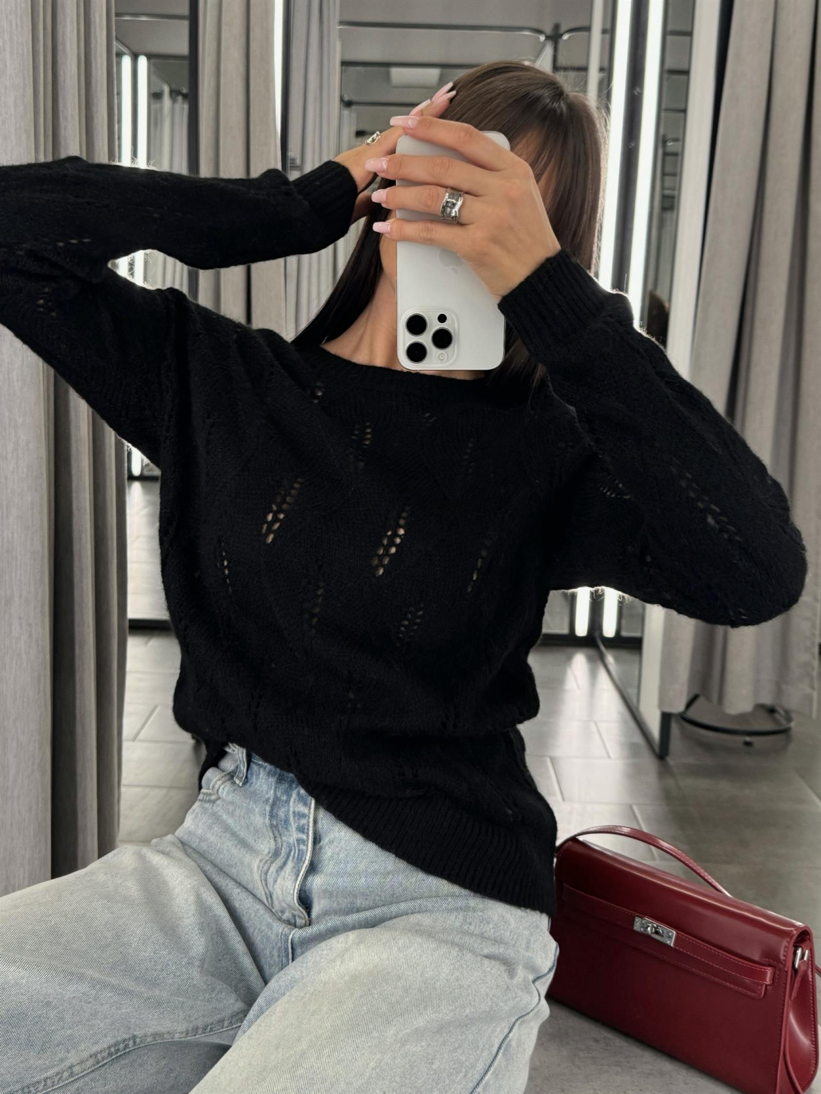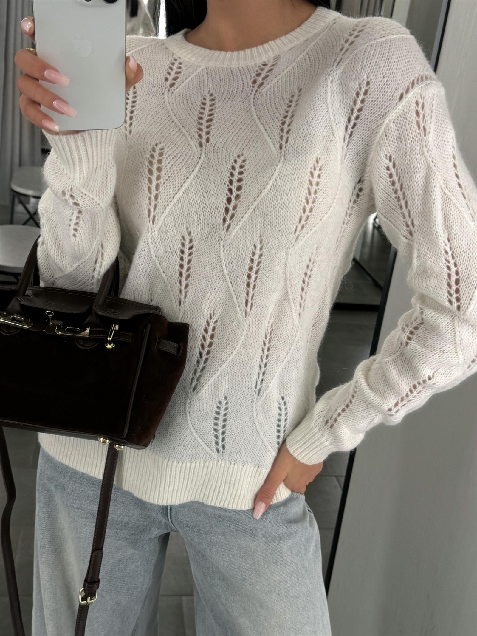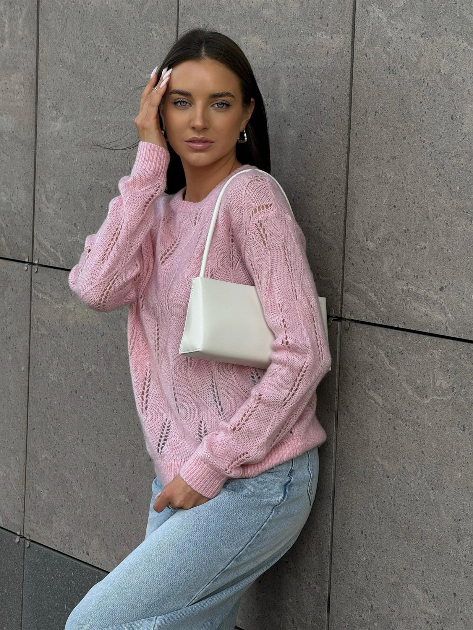 Джемпер акцентной вязки из трикотажа с шерстью и мохером 110-06