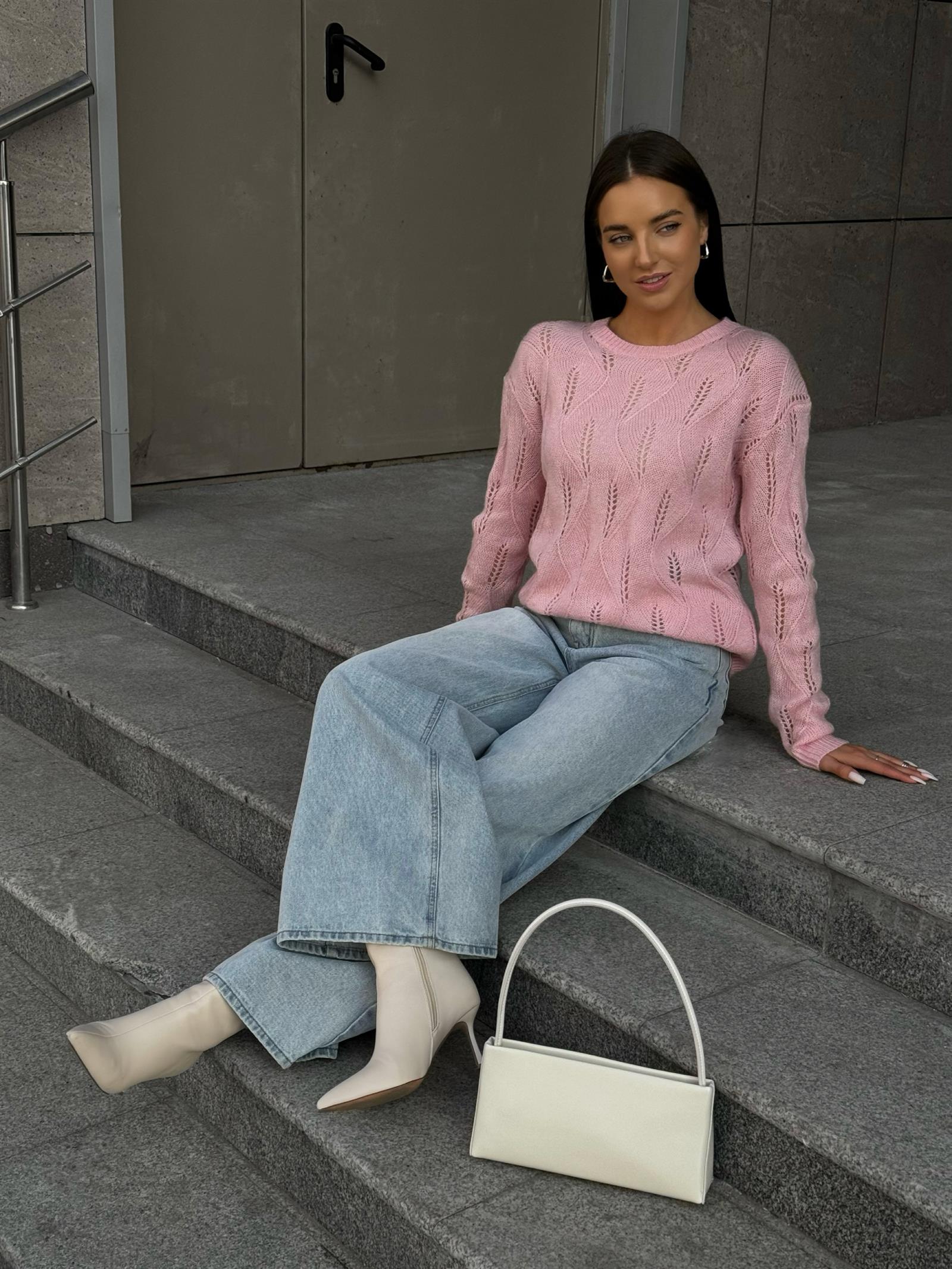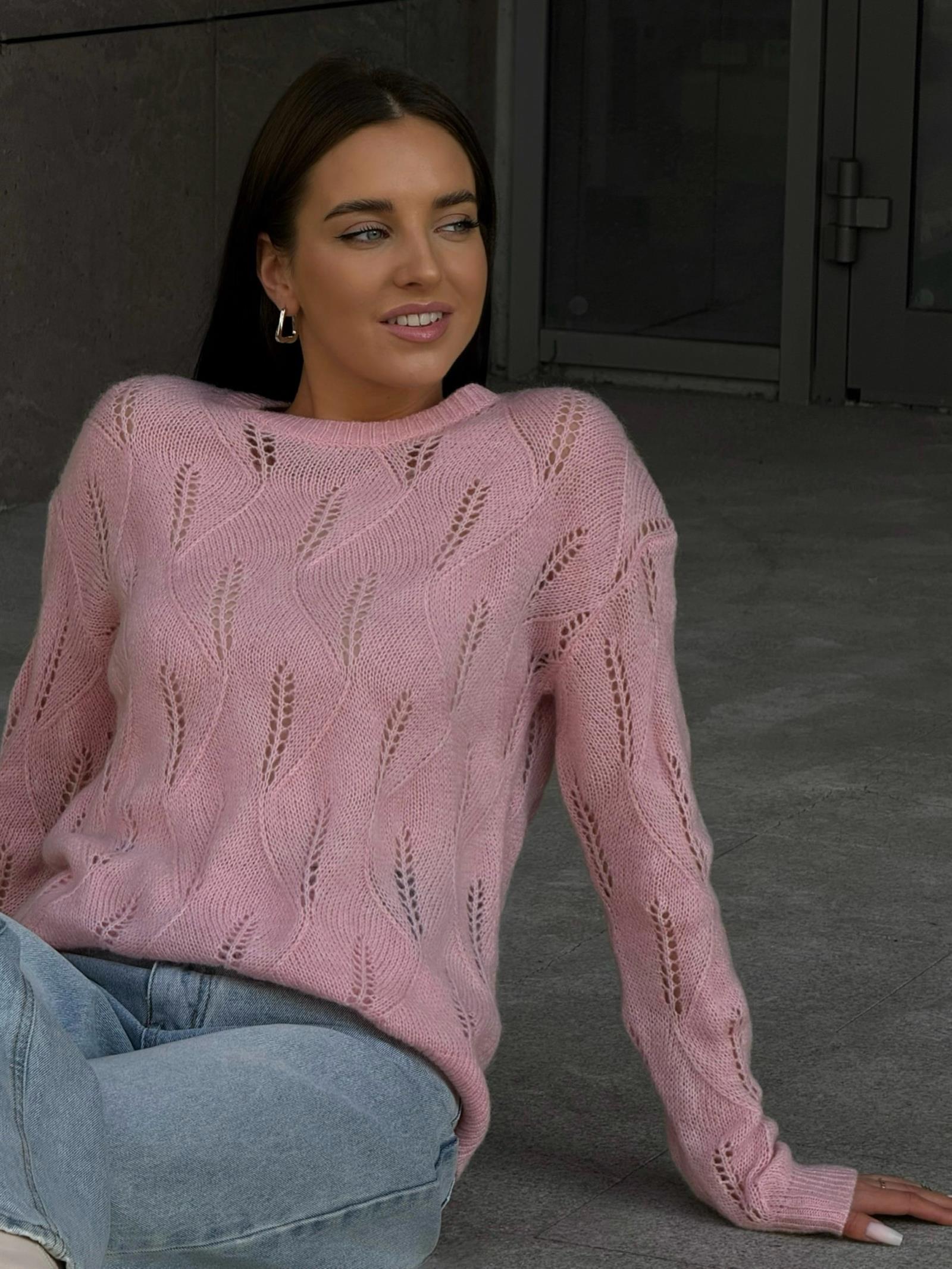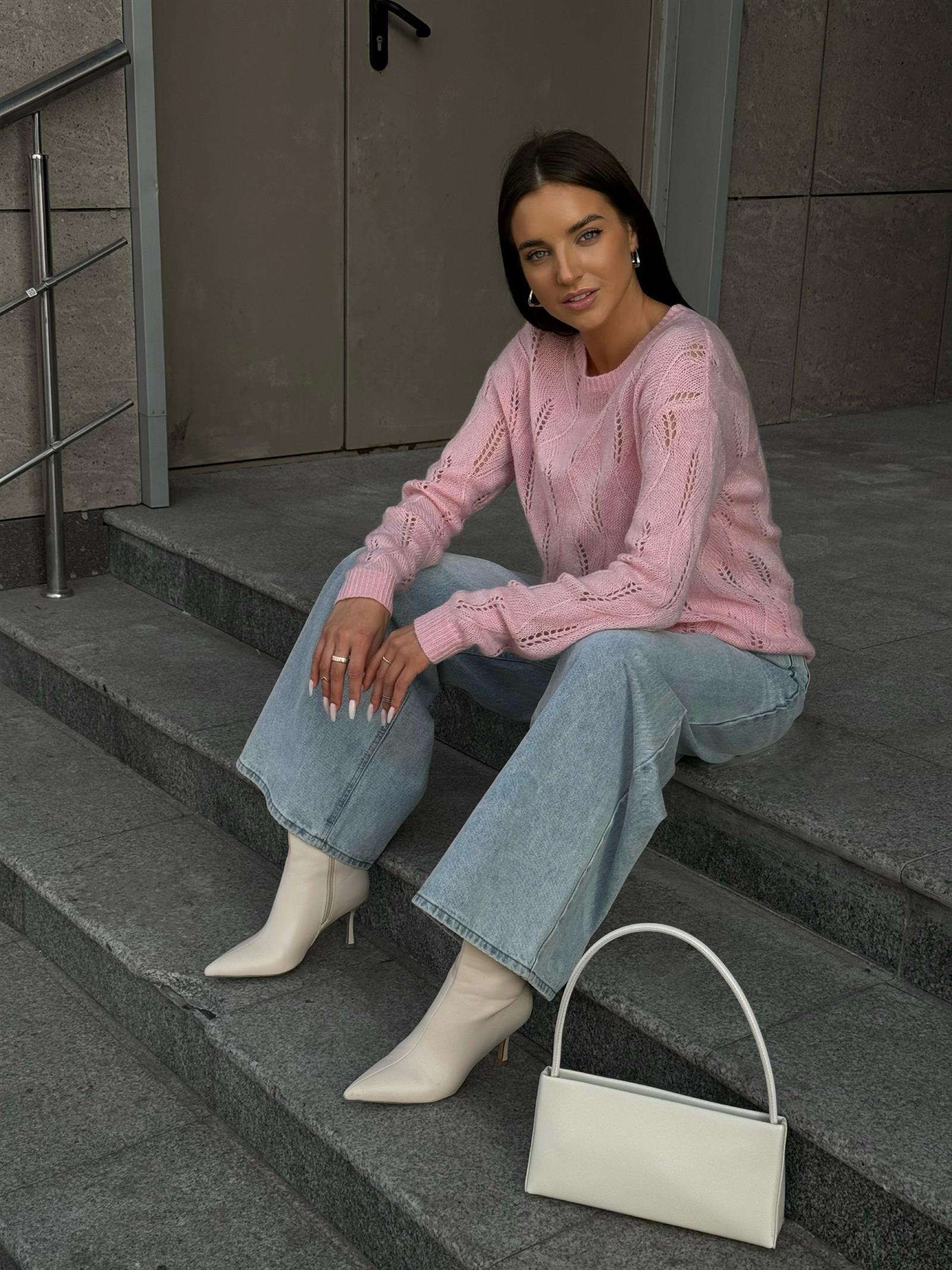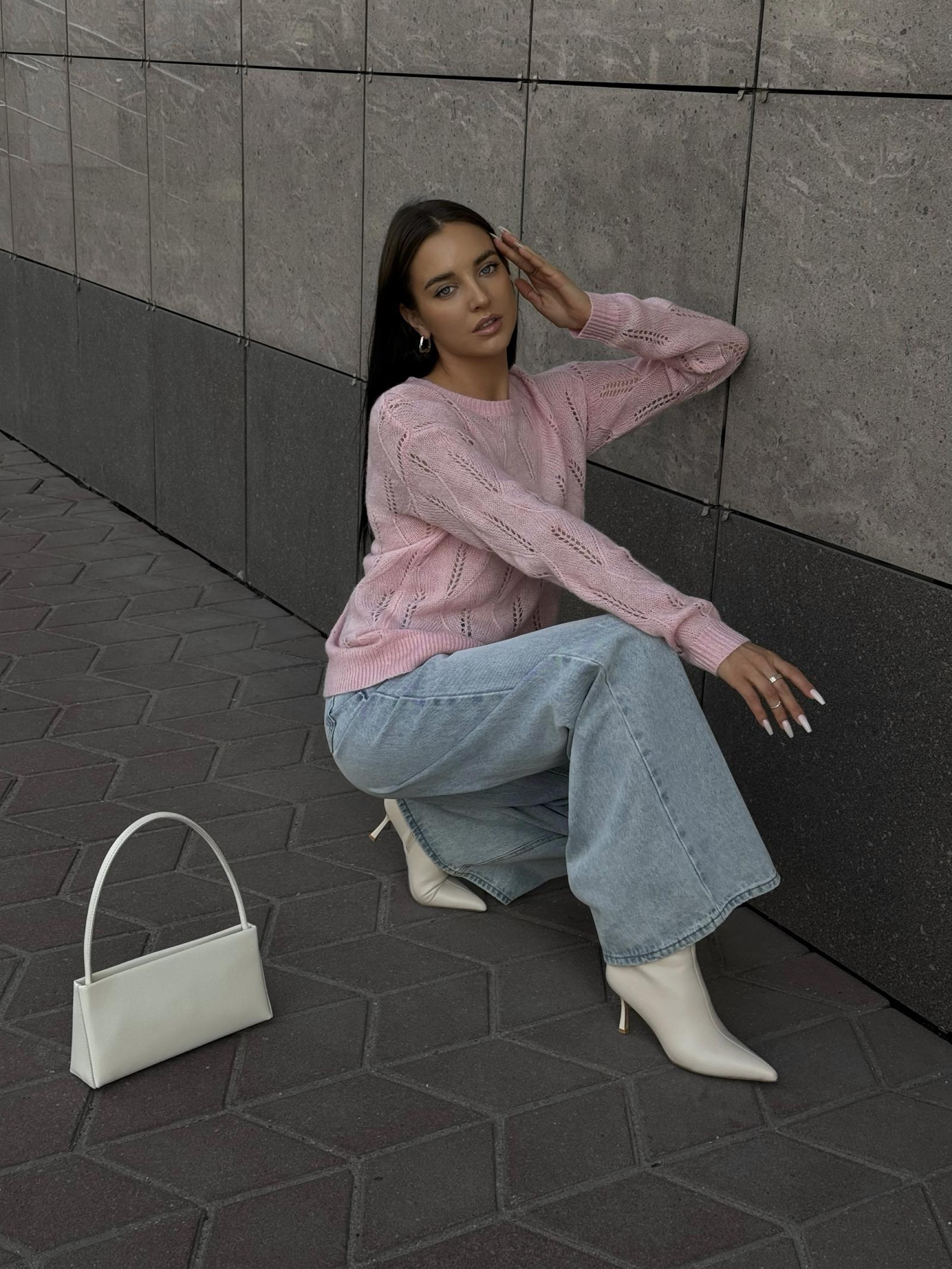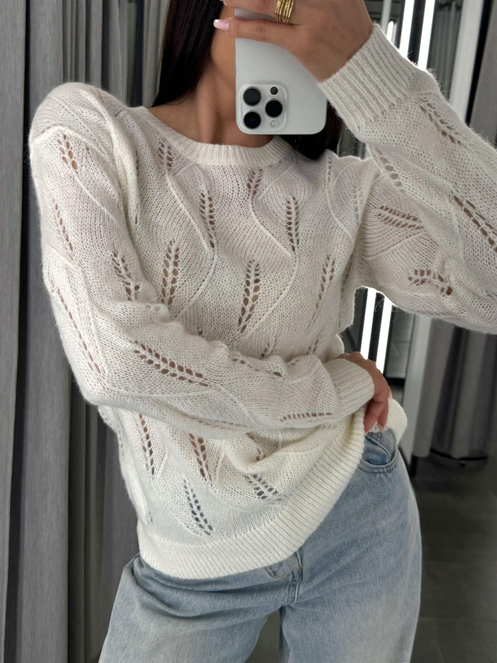 Джемпер акцентной вязки из трикотажа с шерстью и мохером 110-06