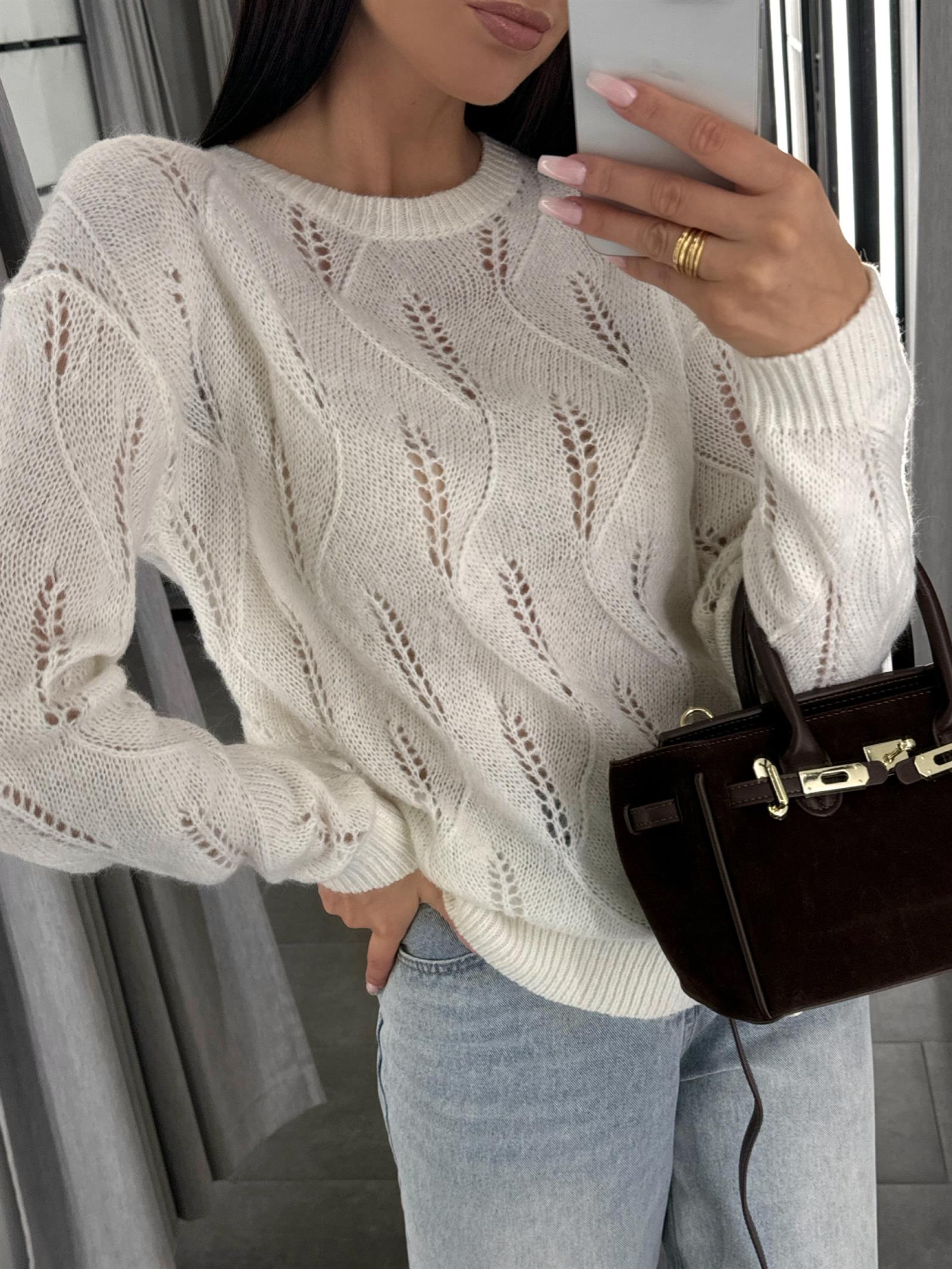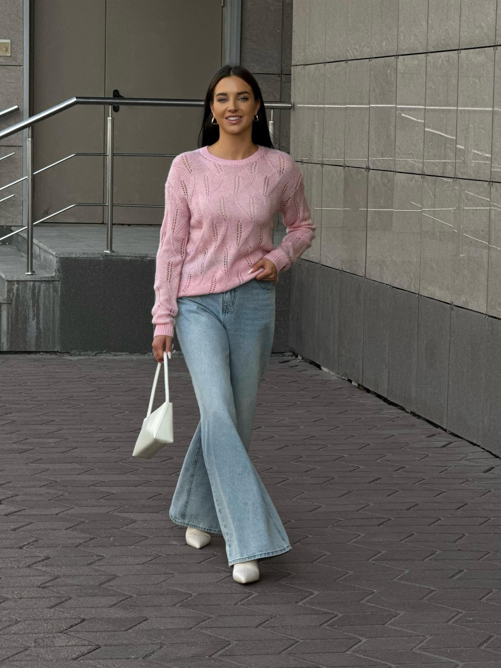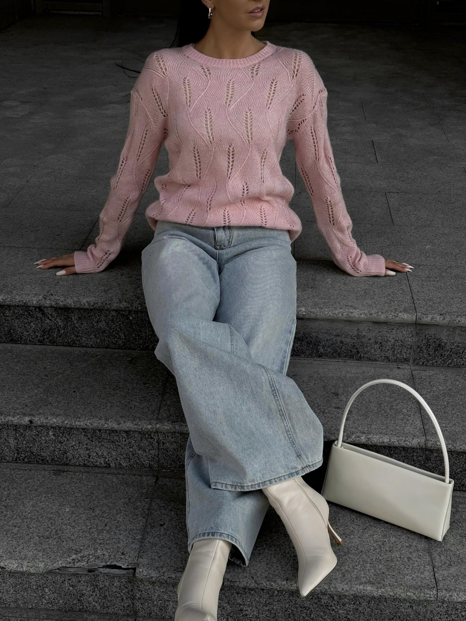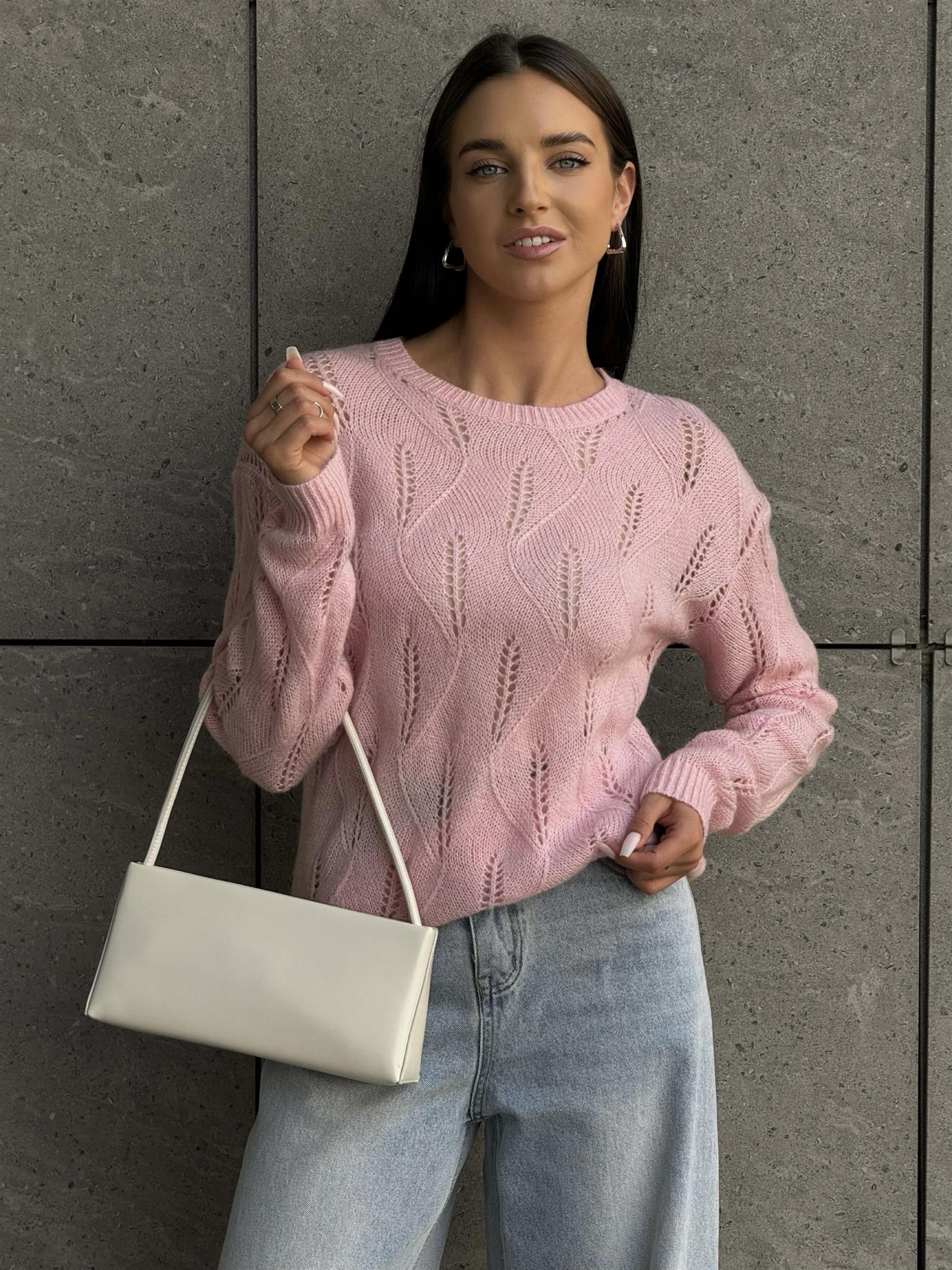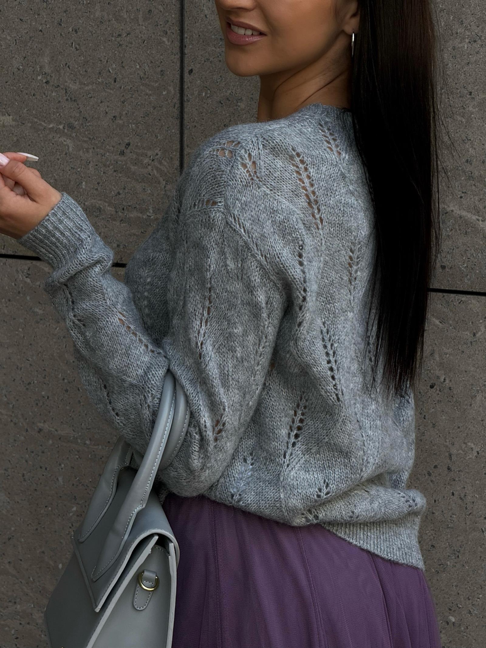 Джемпер акцентной вязки из трикотажа с шерстью и мохером 110-06