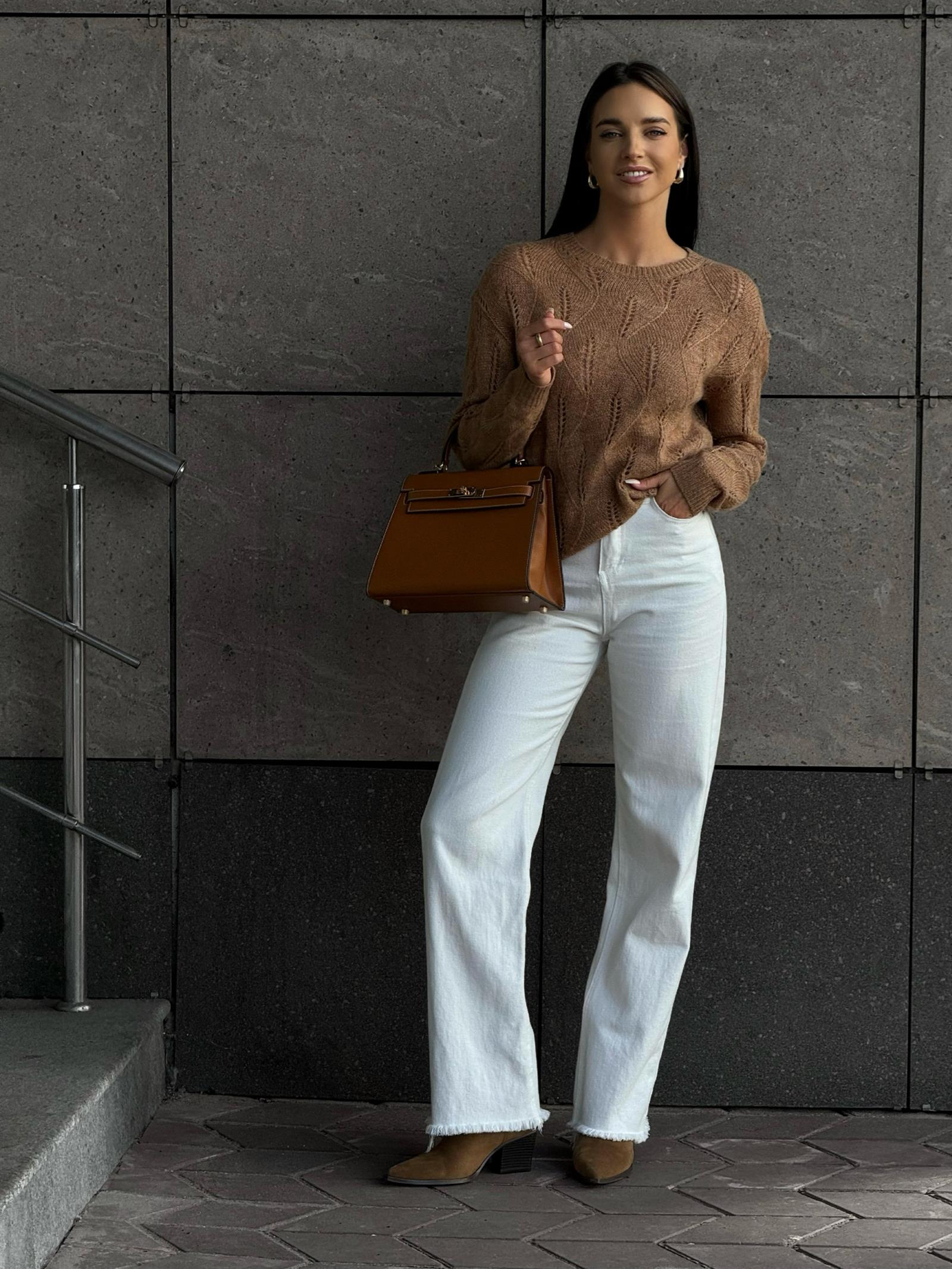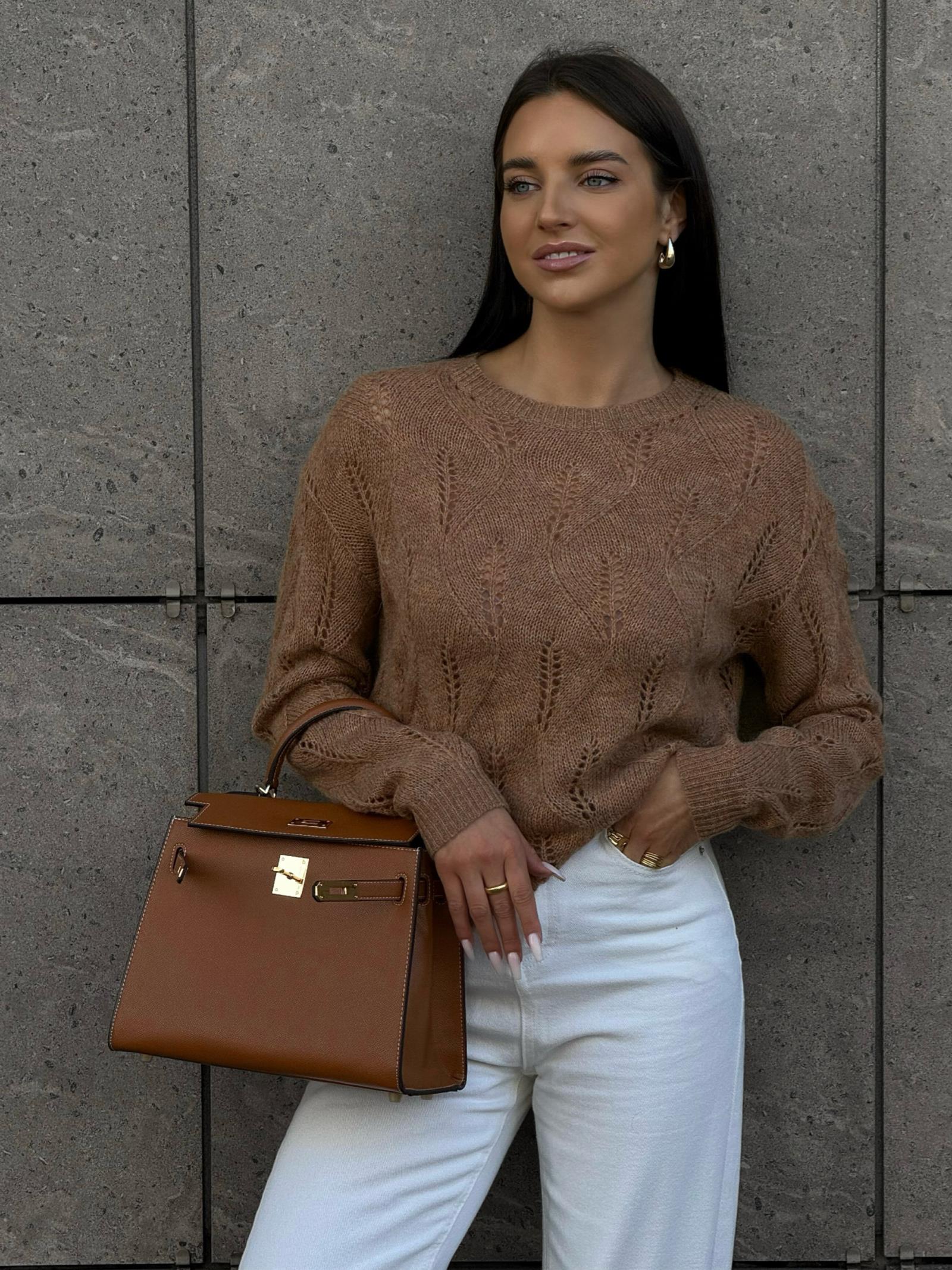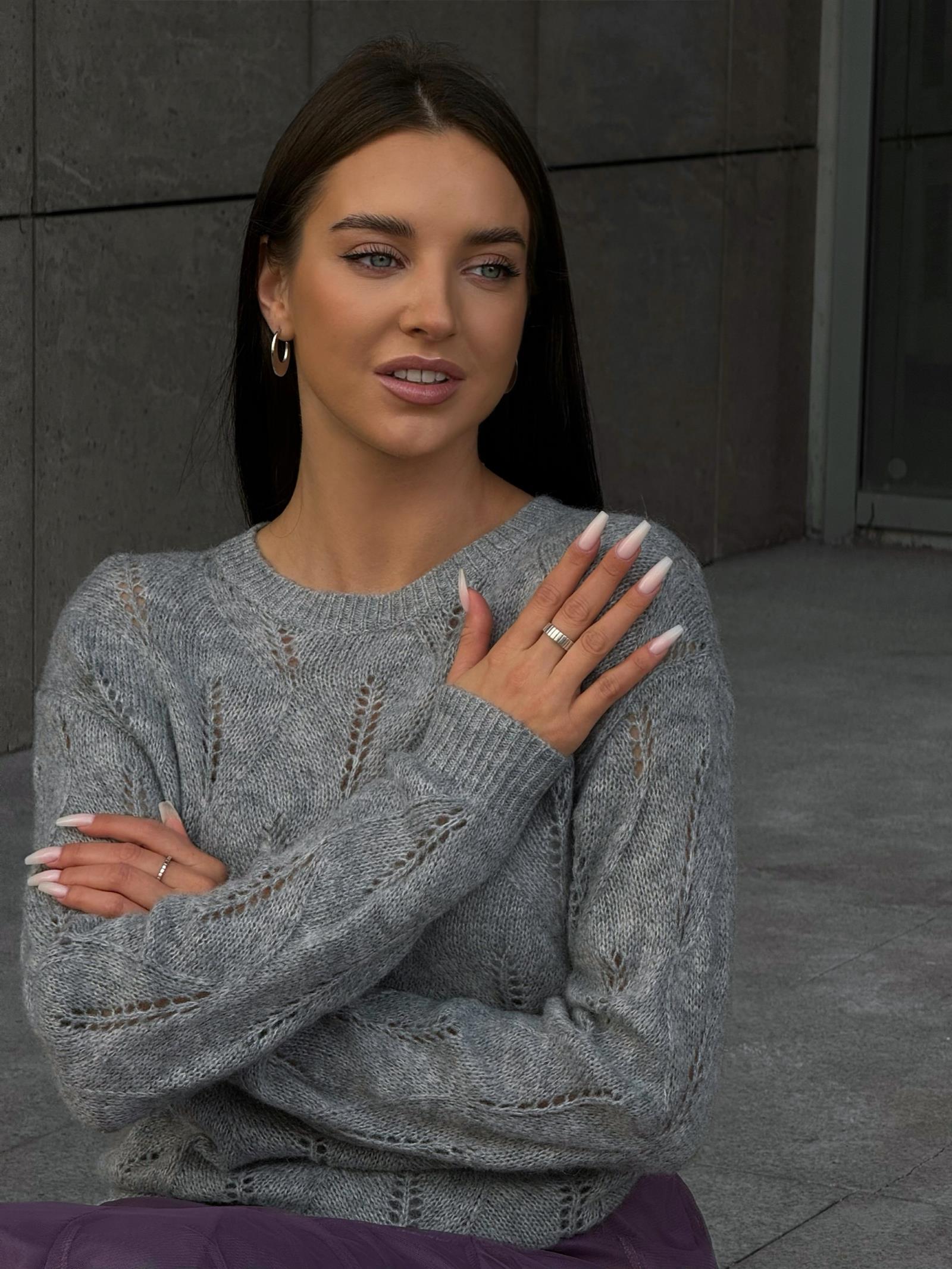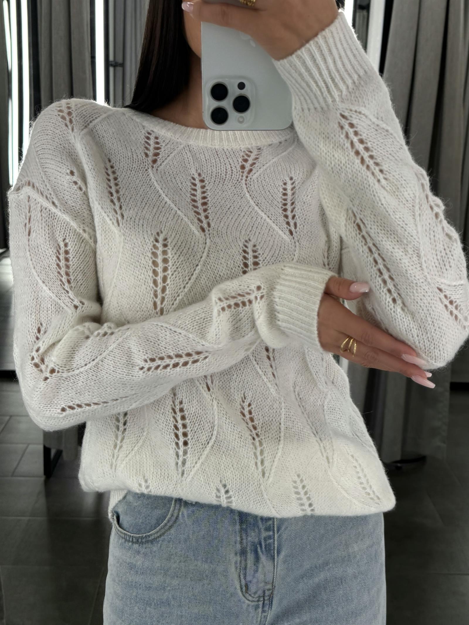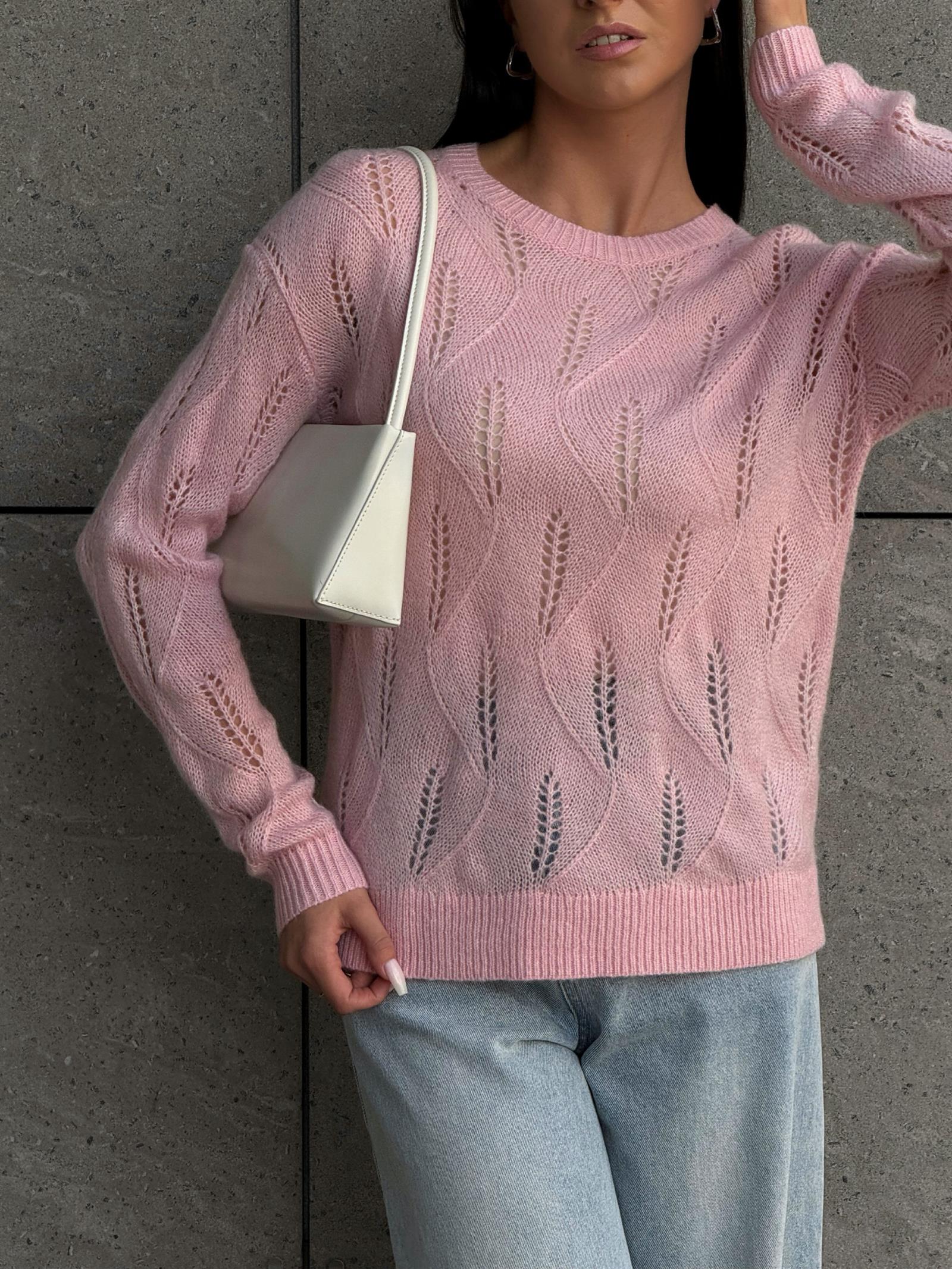 Джемпер акцентной вязки из трикотажа с шерстью и мохером 110-06