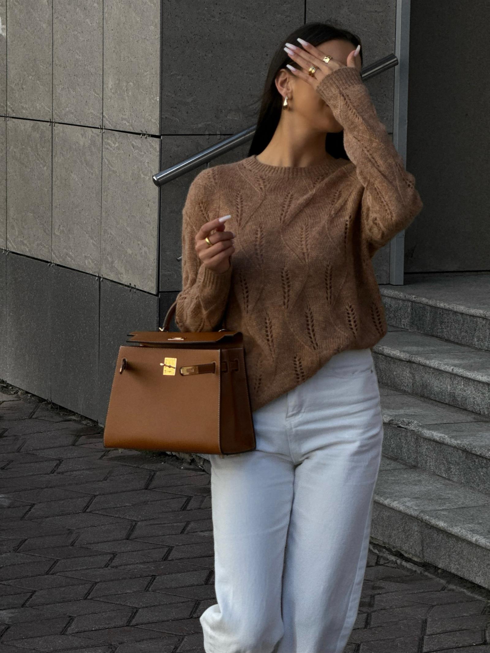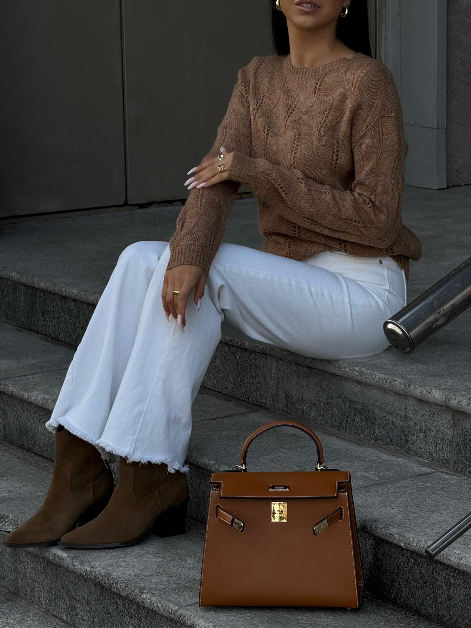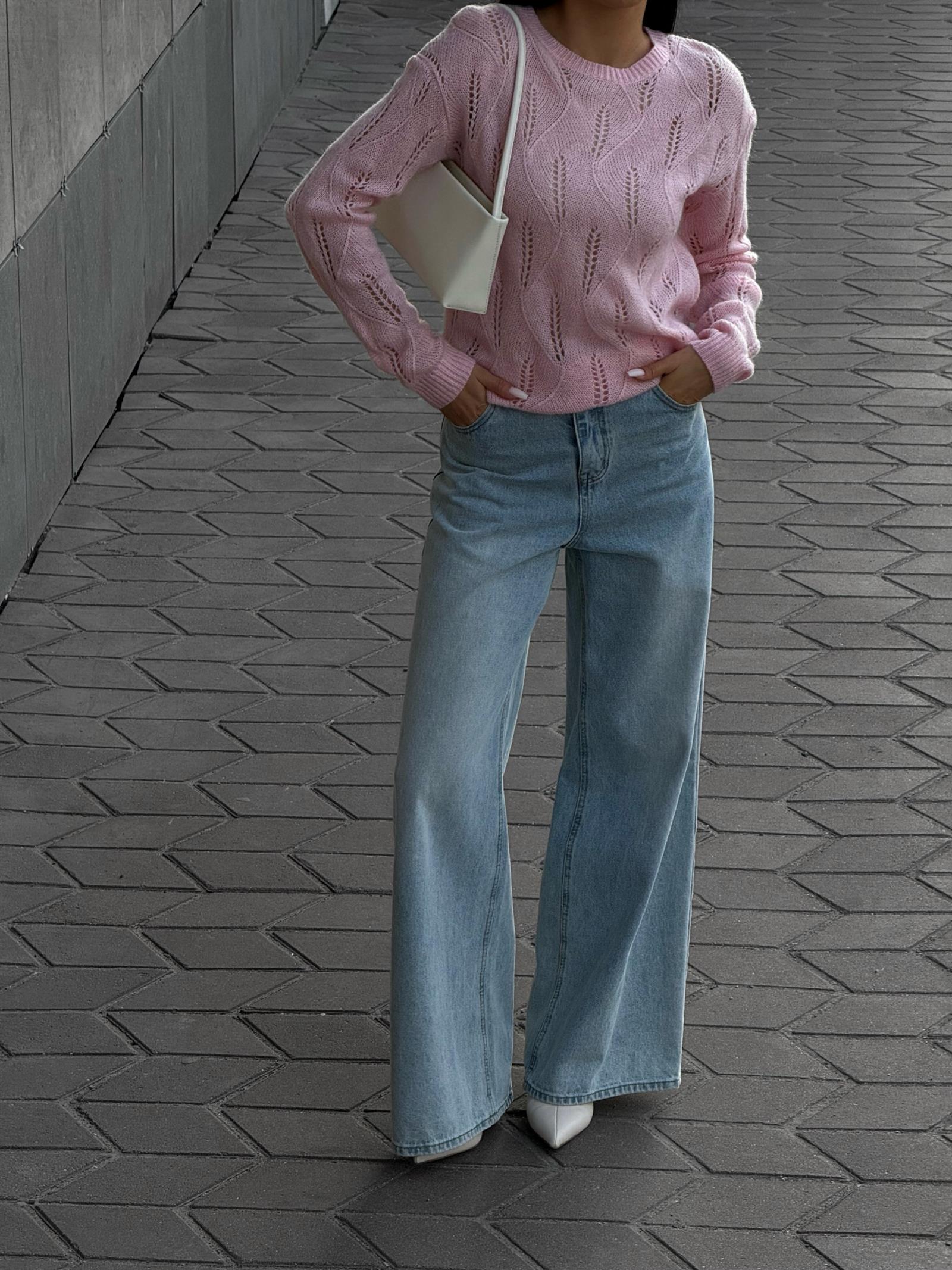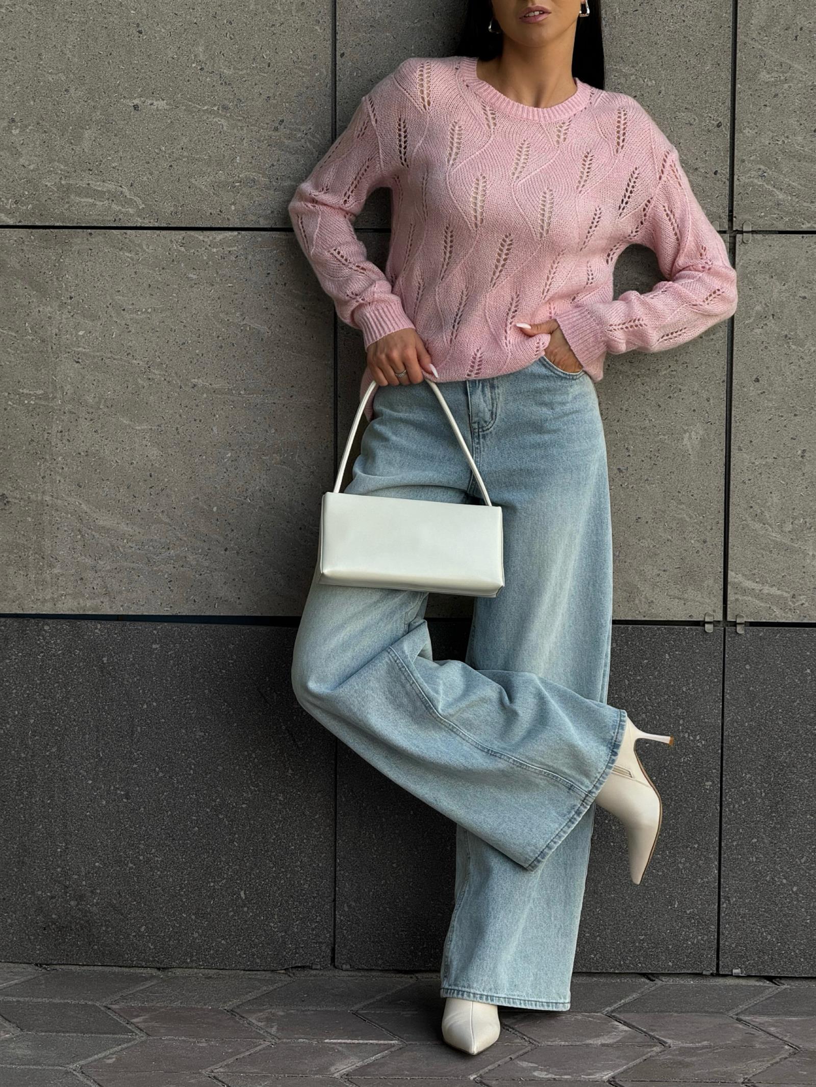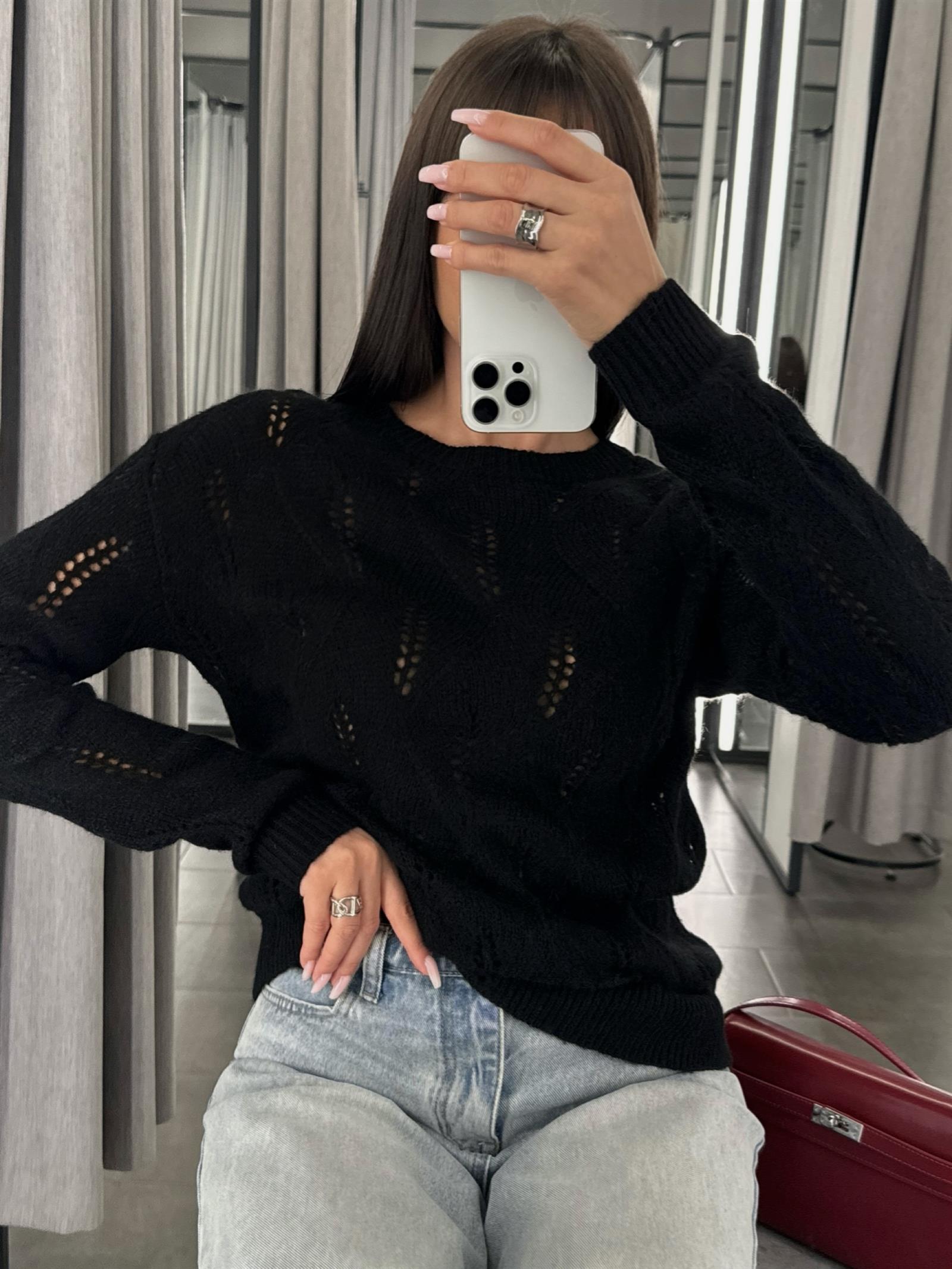 Джемпер акцентной вязки из трикотажа с шерстью и мохером 110-06