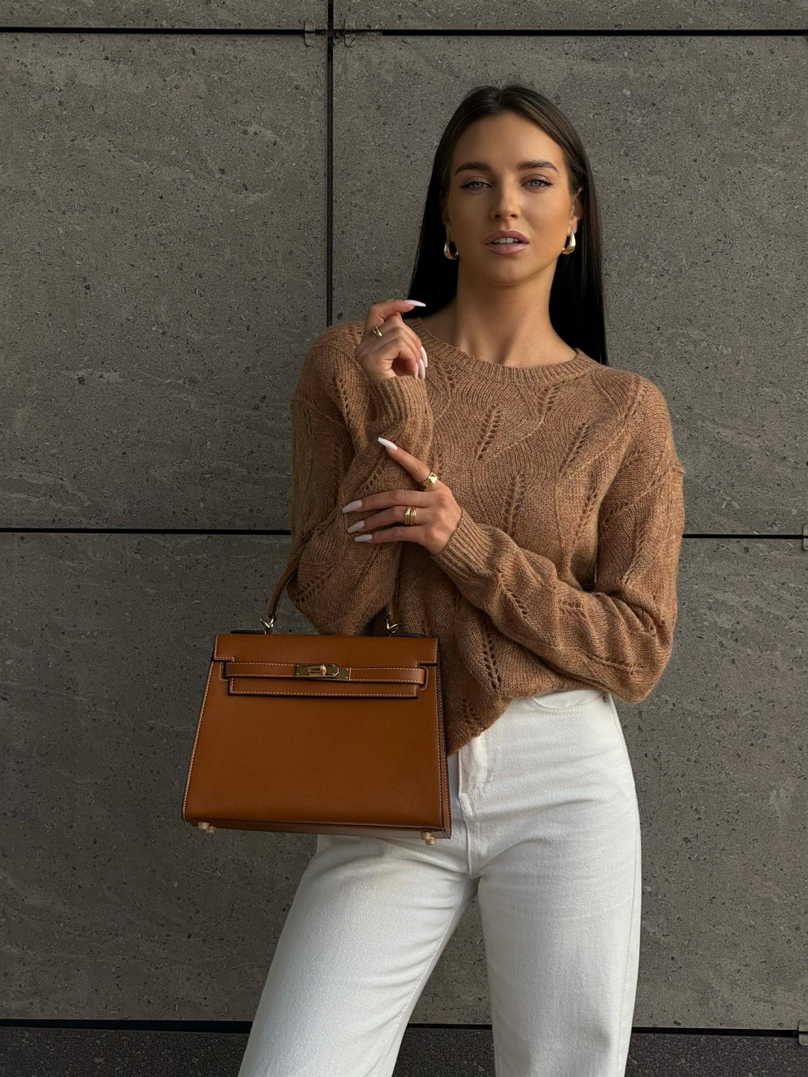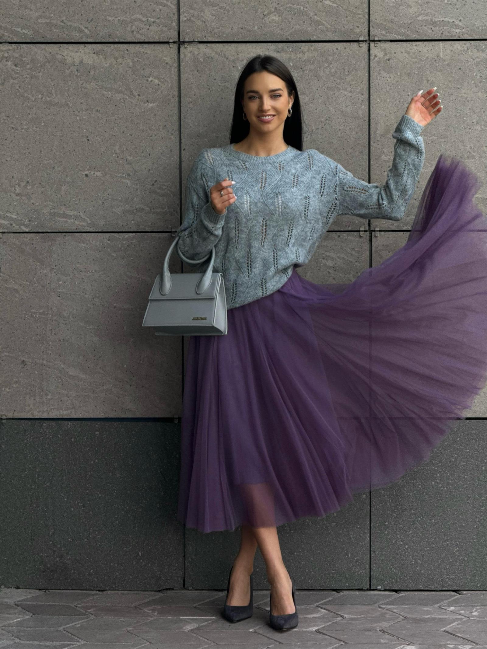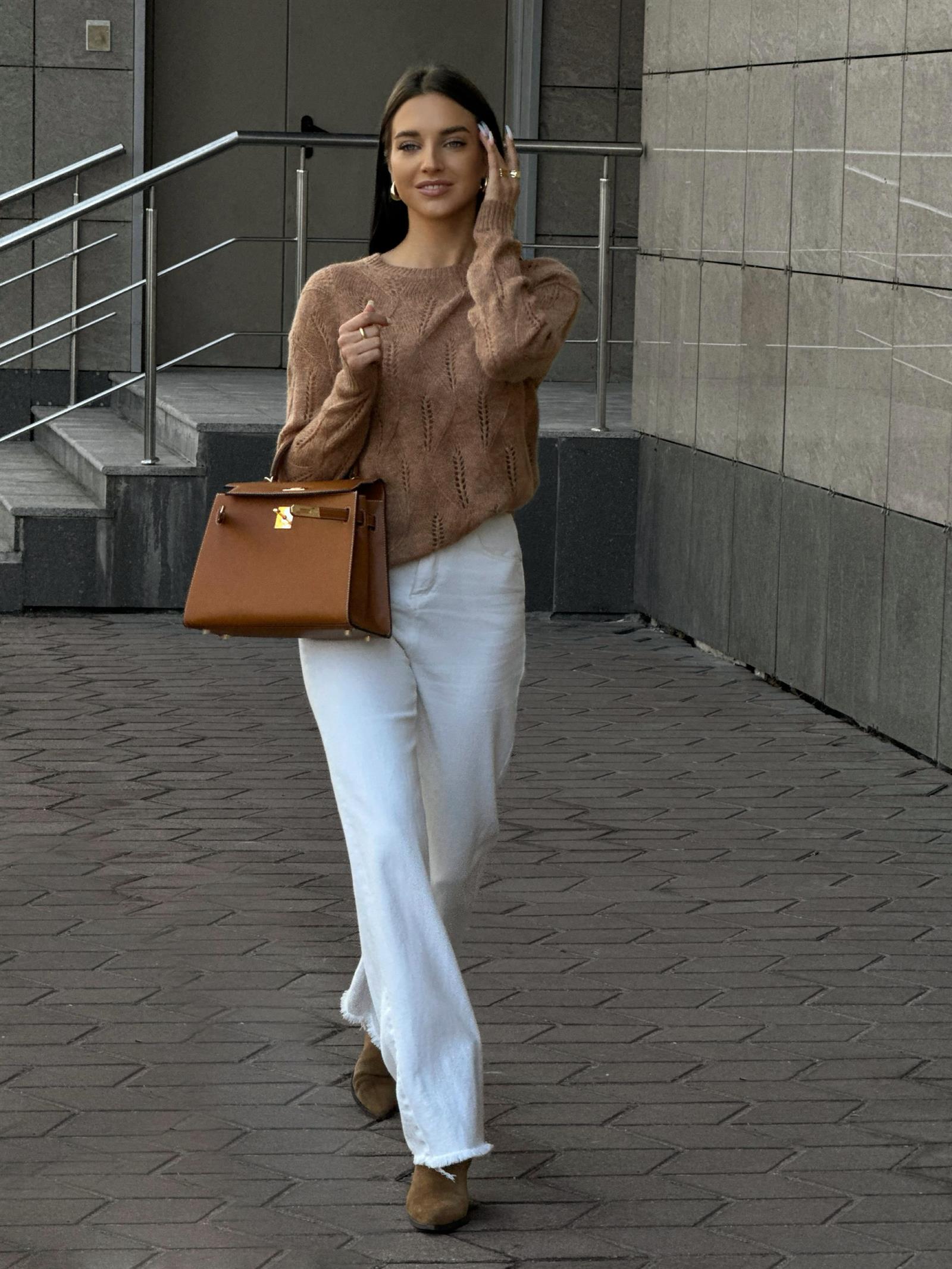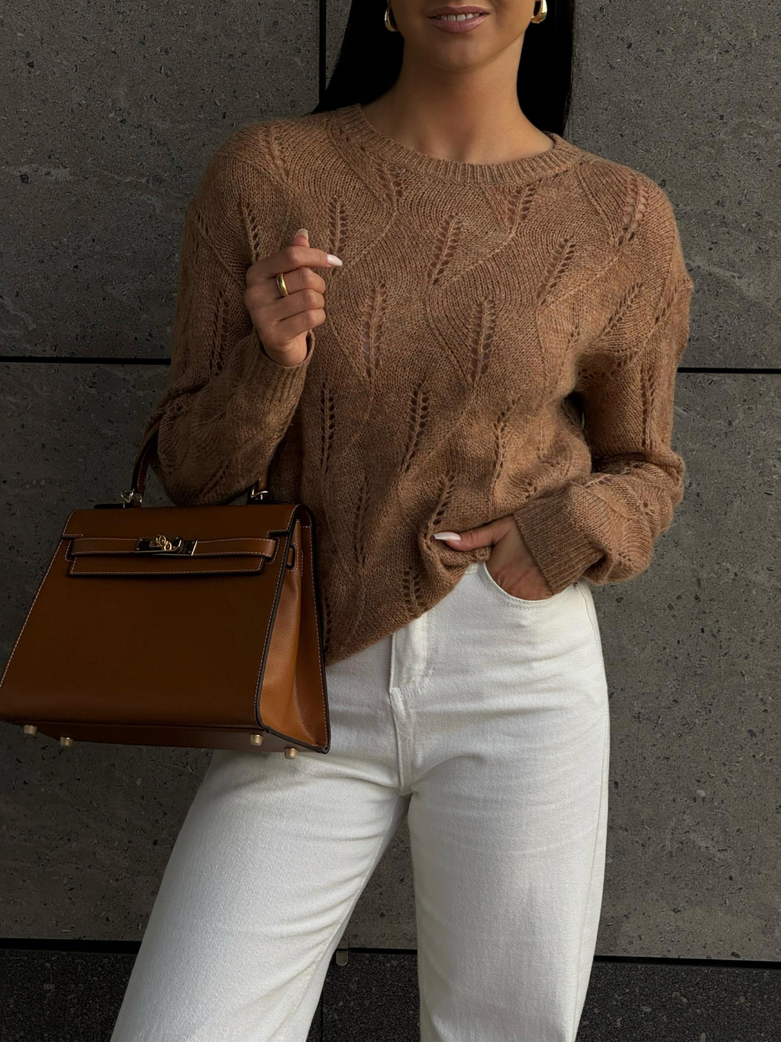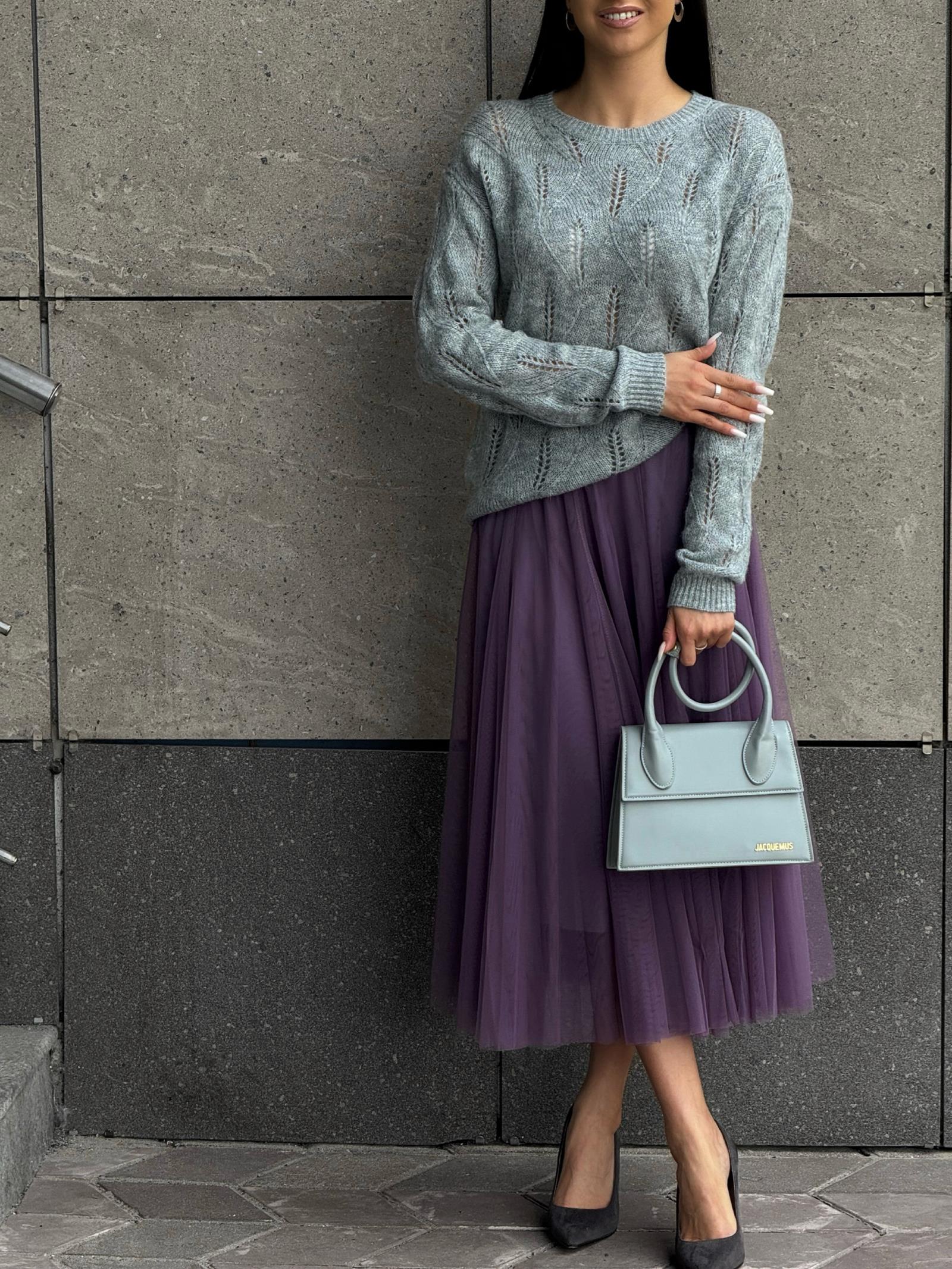 Джемпер акцентной вязки из трикотажа с шерстью и мохером 110-06