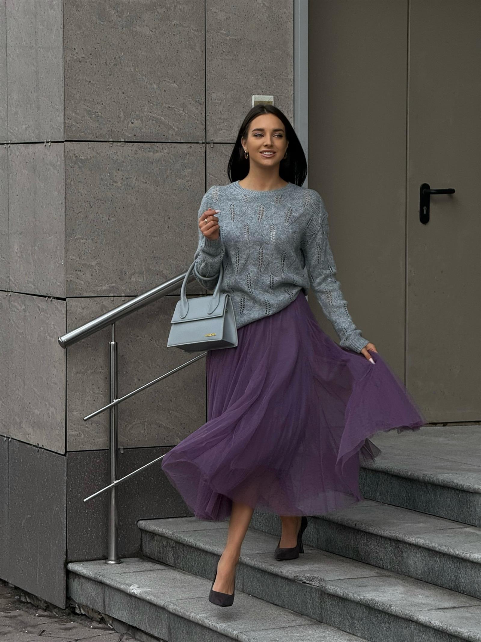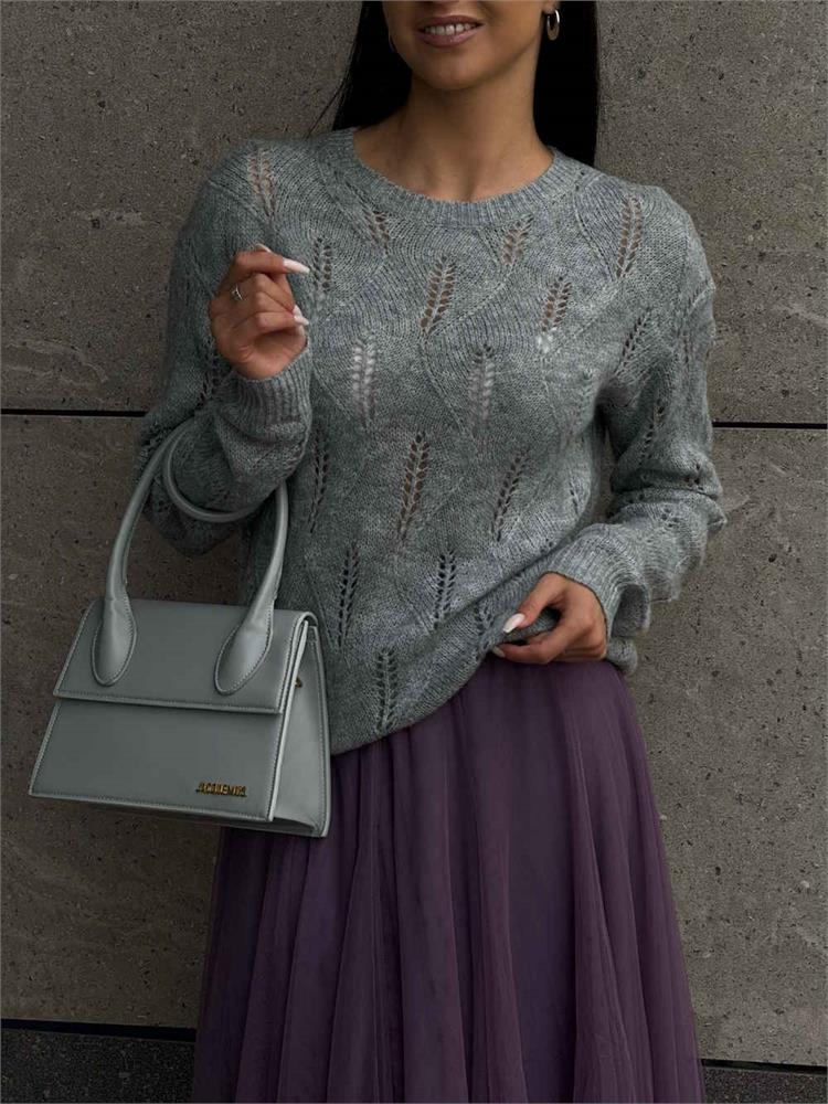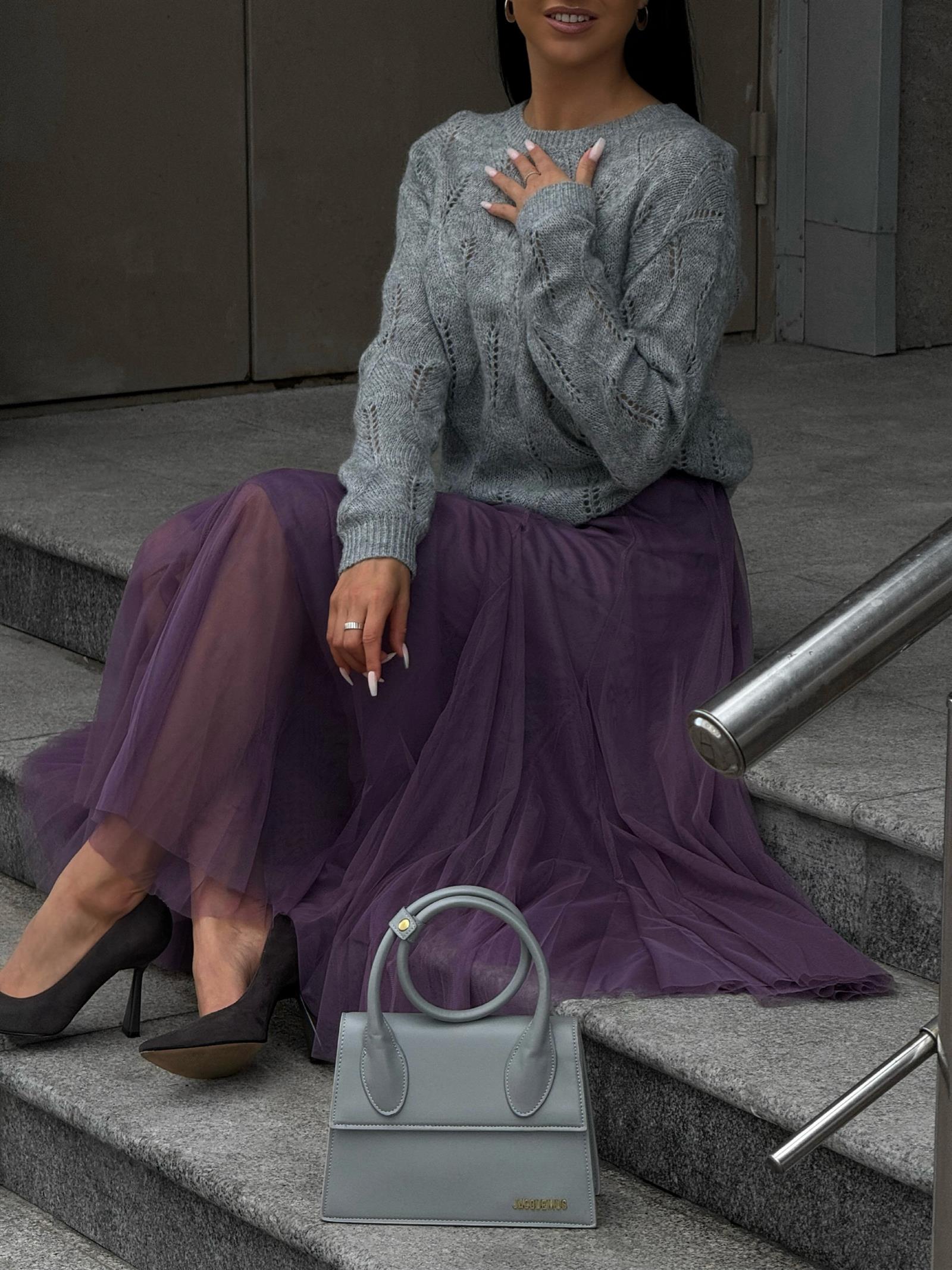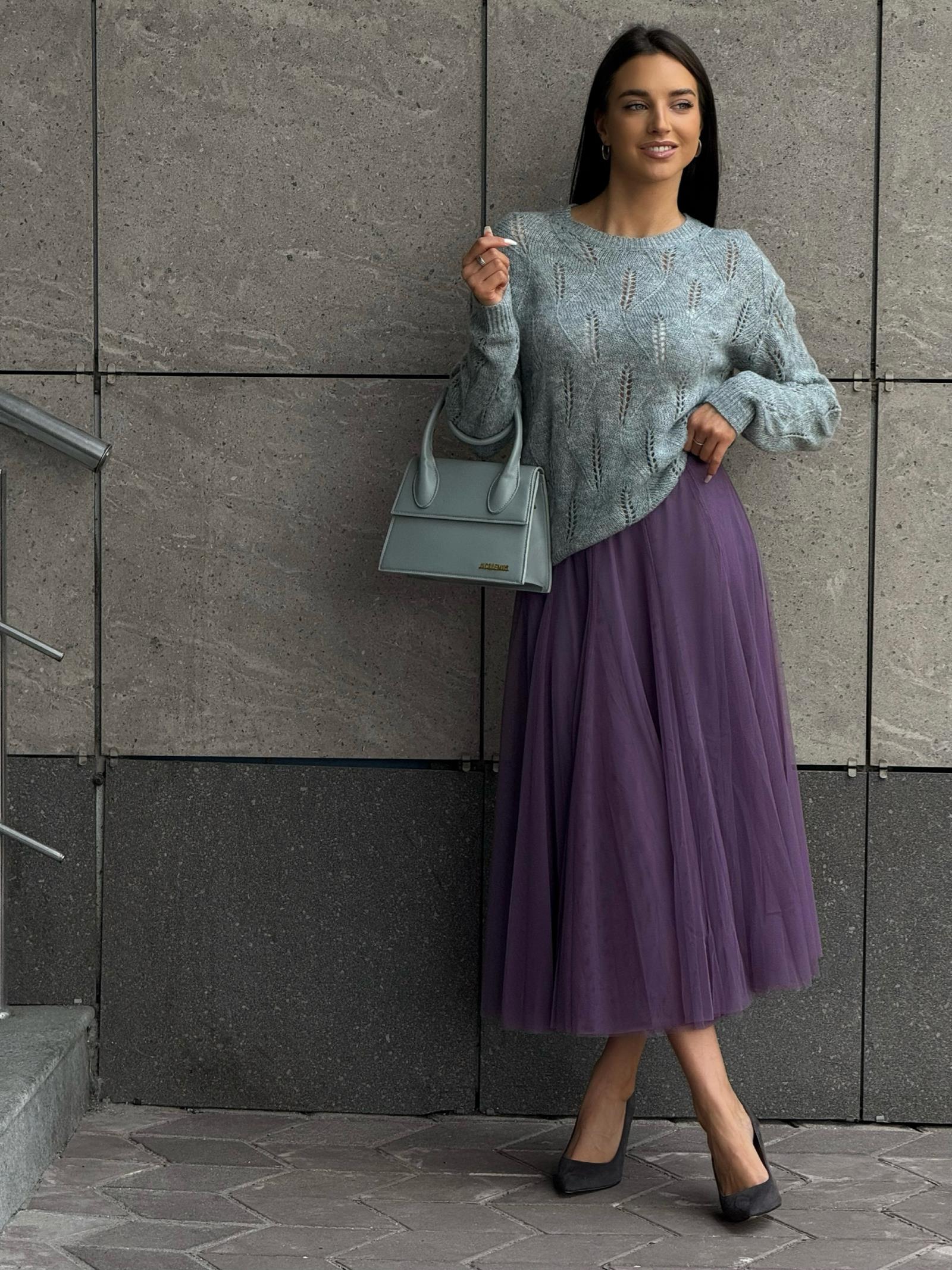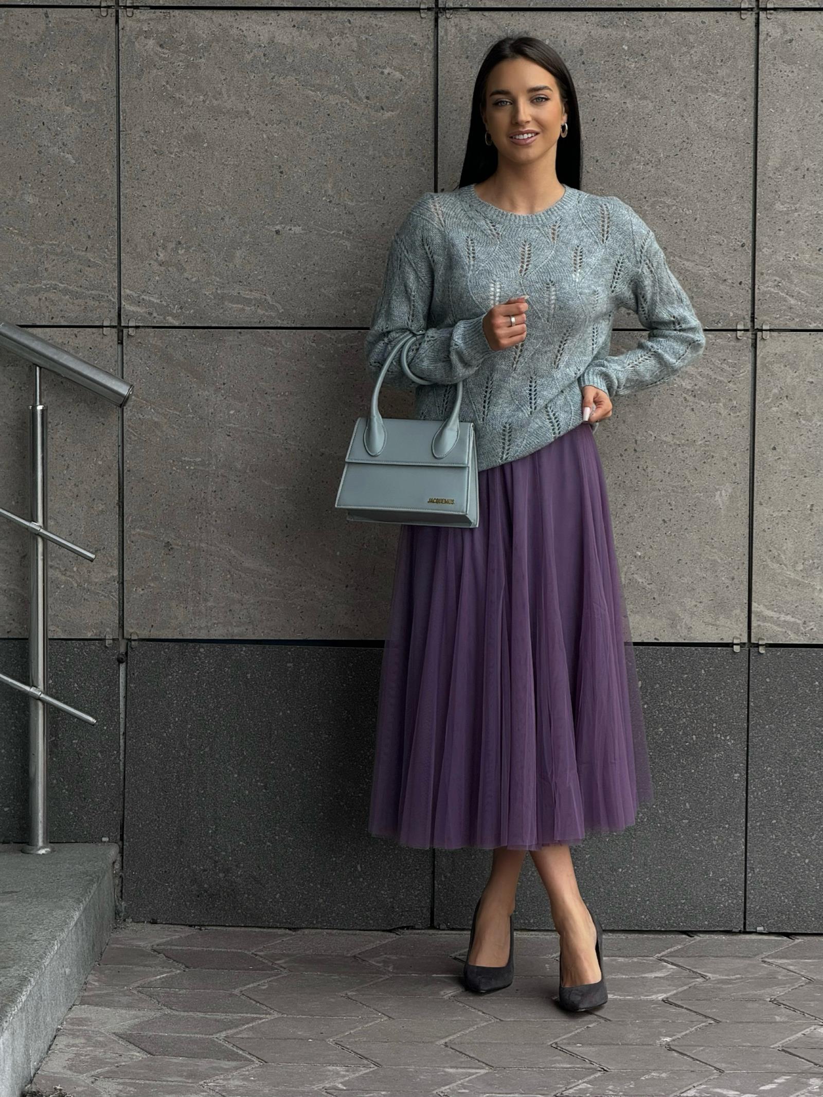 Джемпер акцентной вязки из трикотажа с шерстью и мохером 110-06