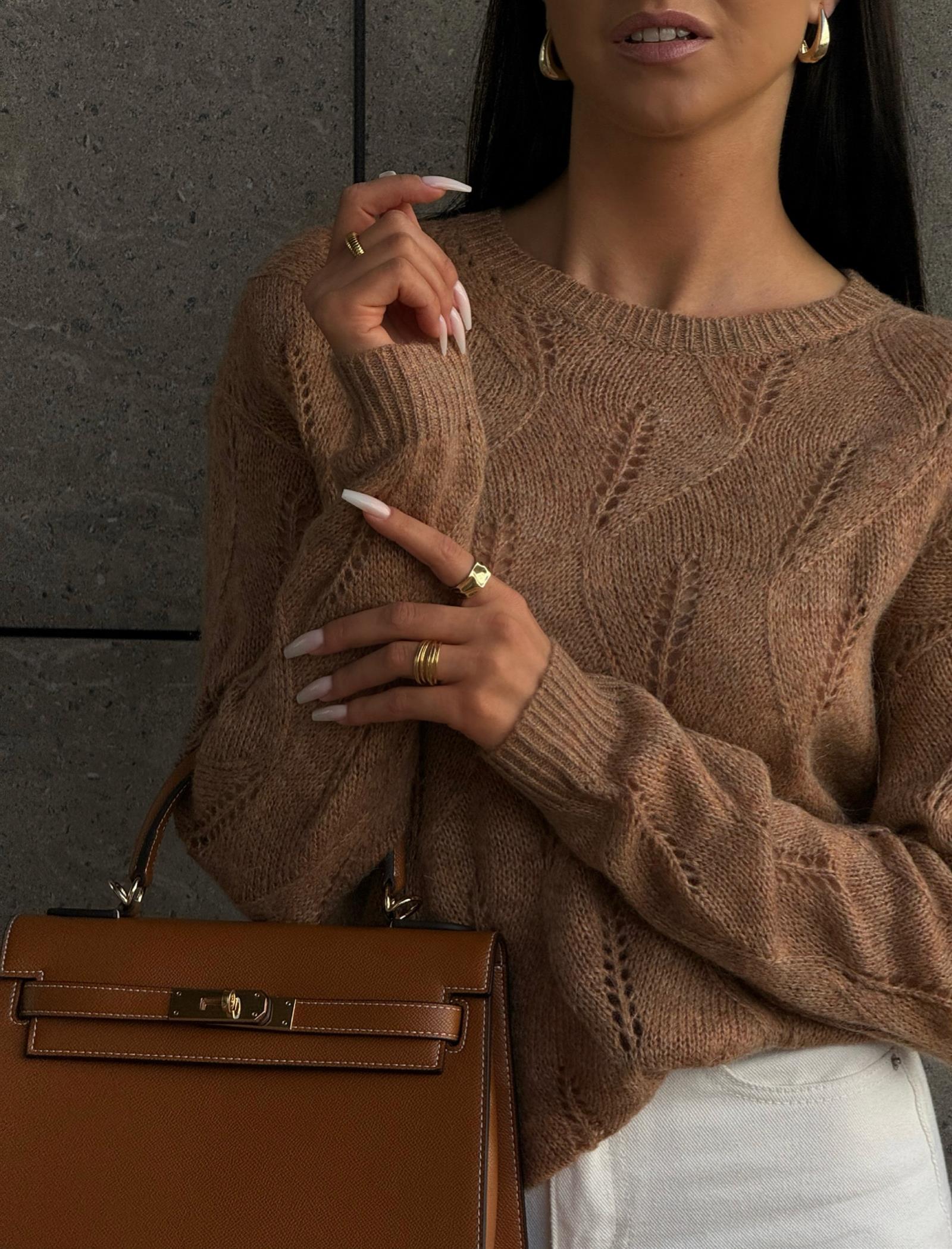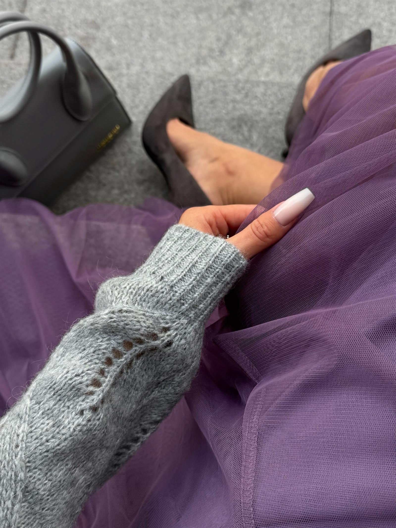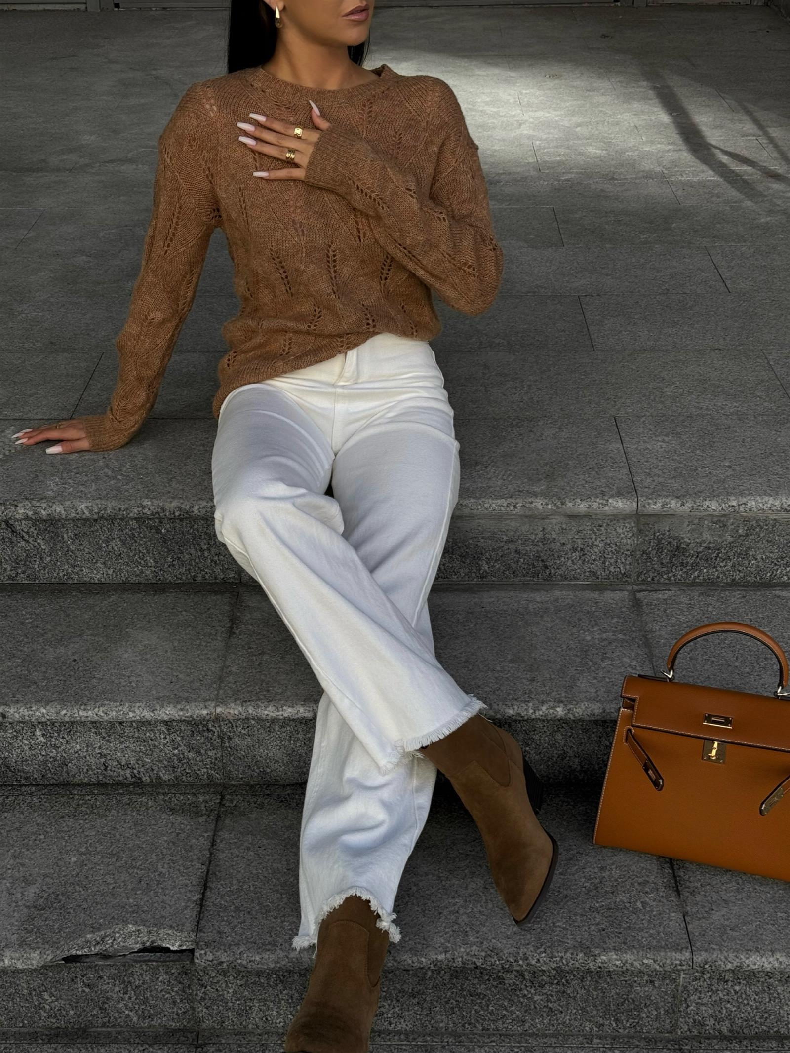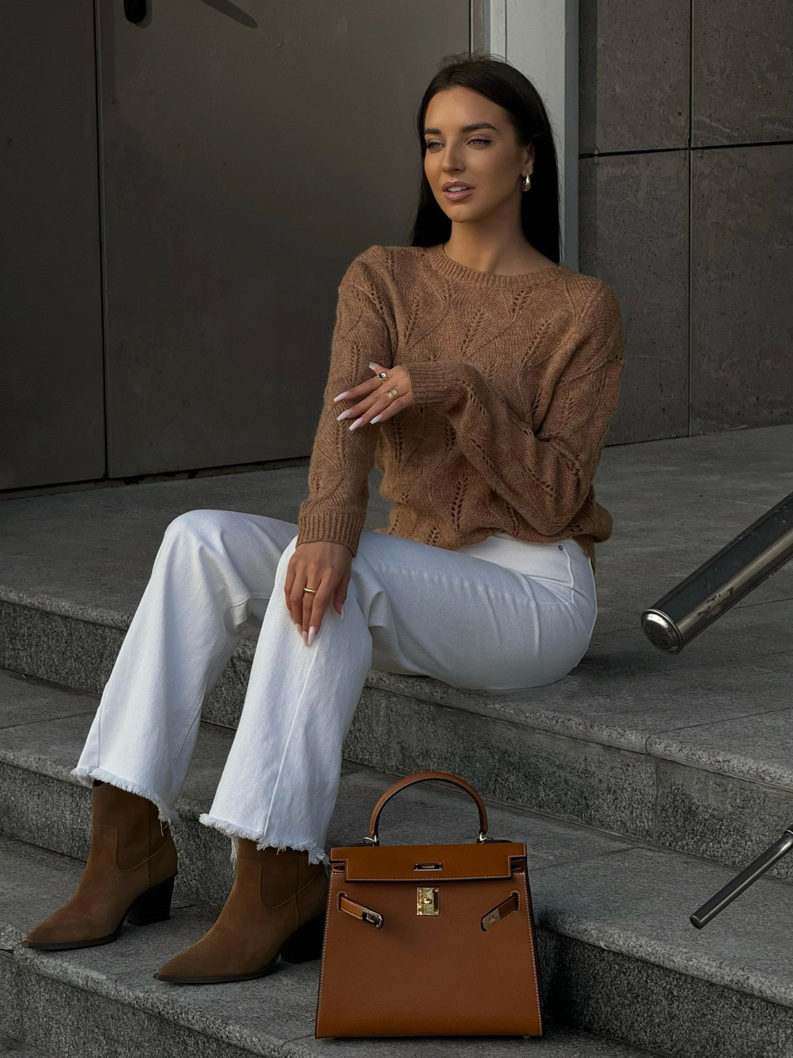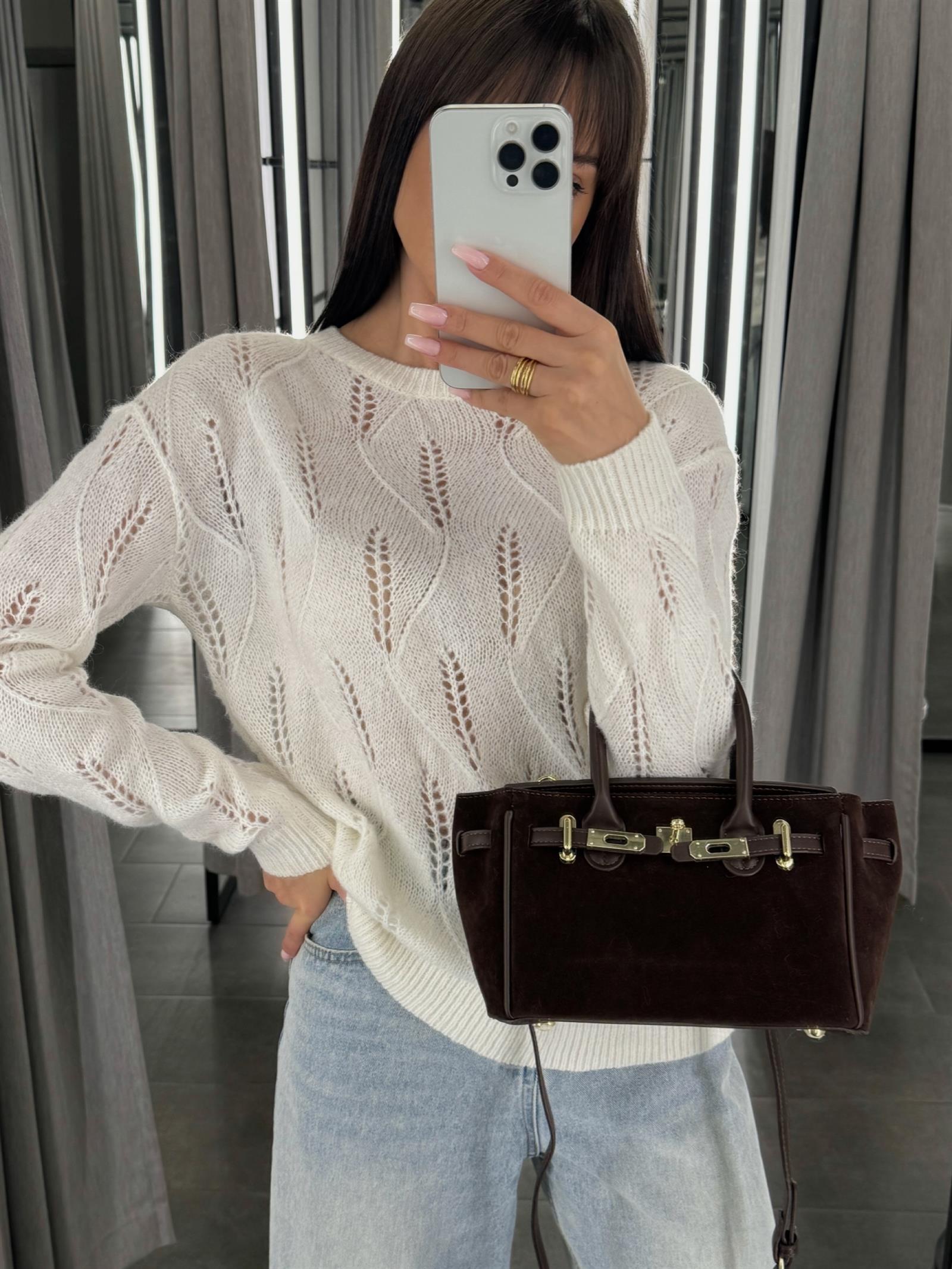 Джемпер акцентной вязки из трикотажа с шерстью и мохером 110-06