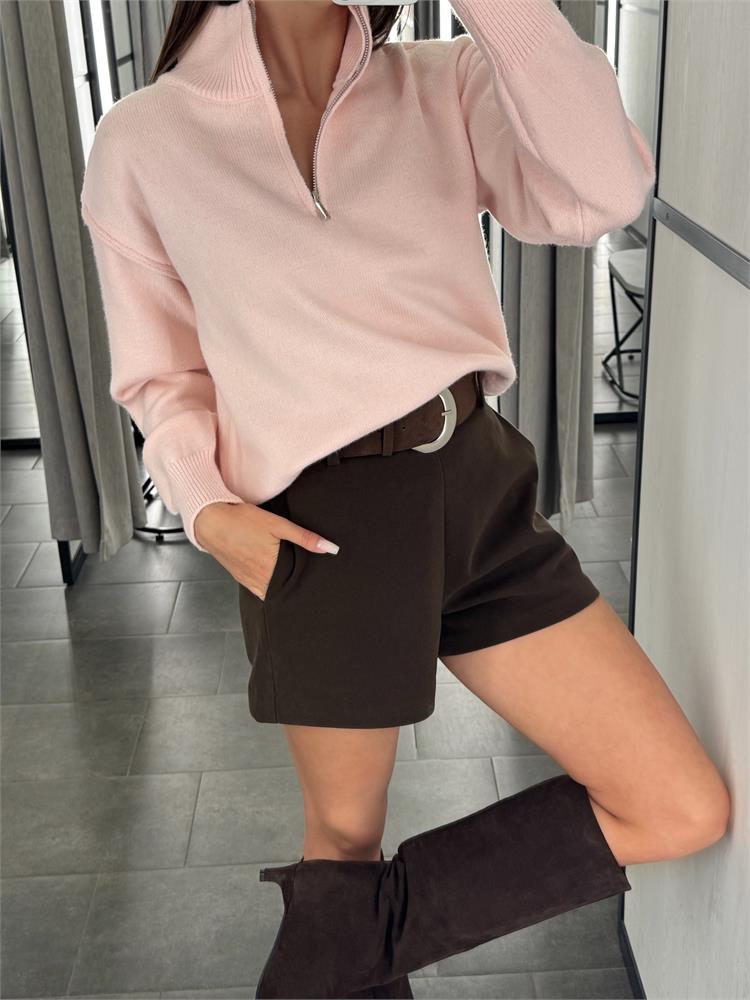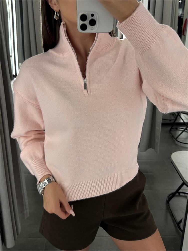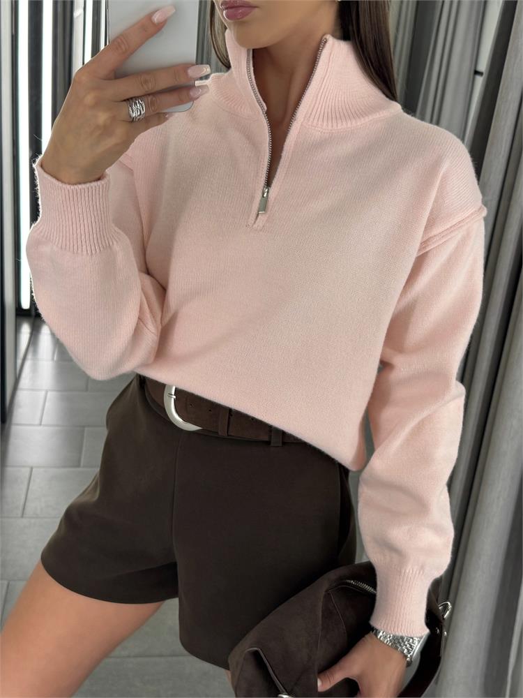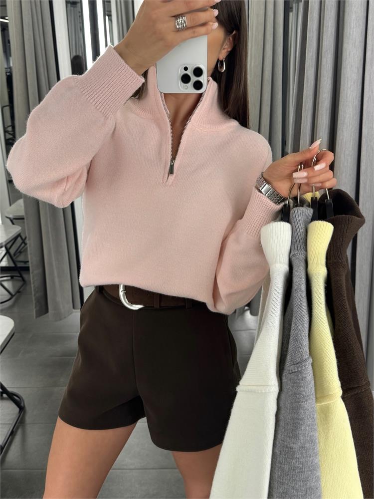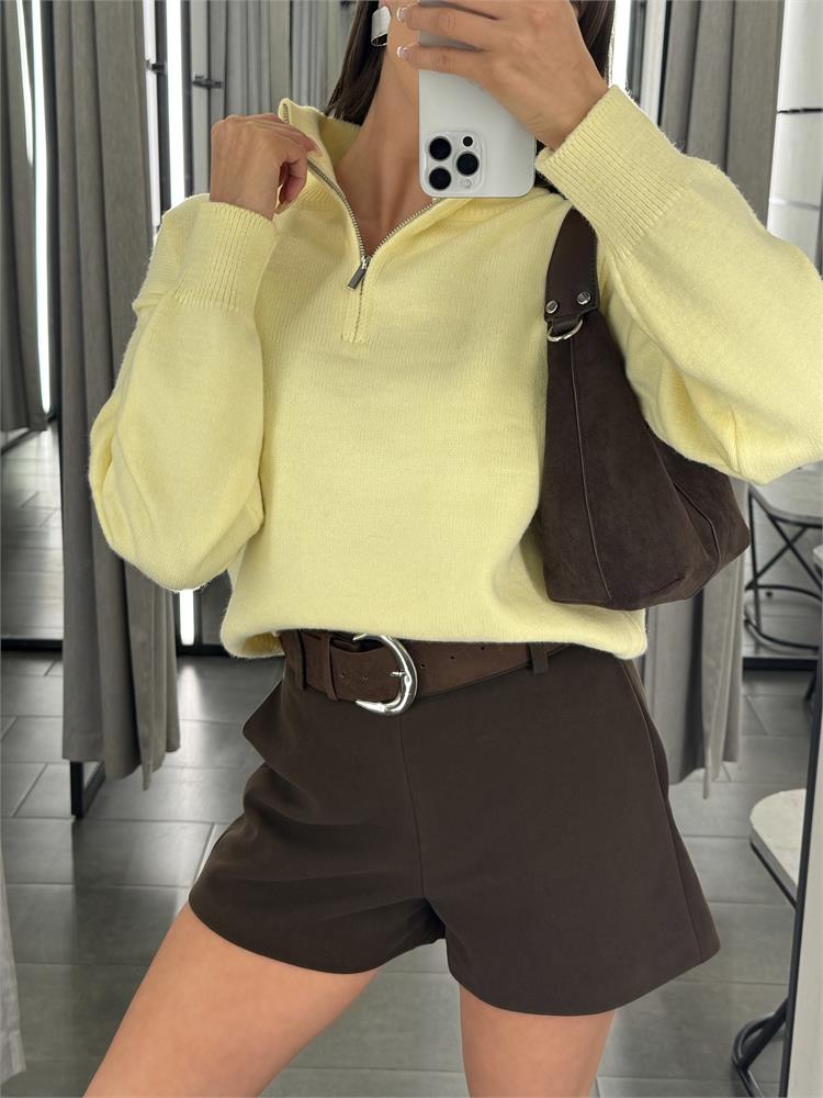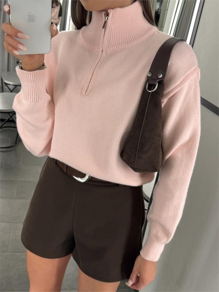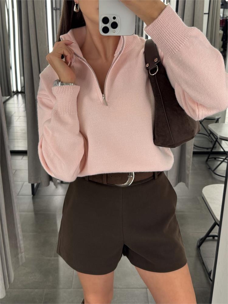 Джемпер-поло на молнии+акцентные плечевые швы 7006