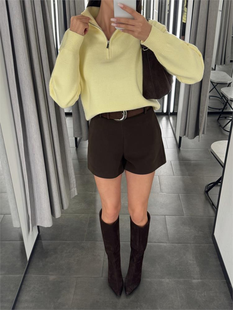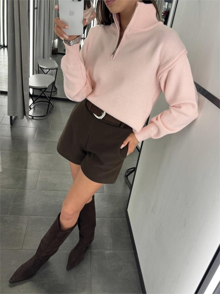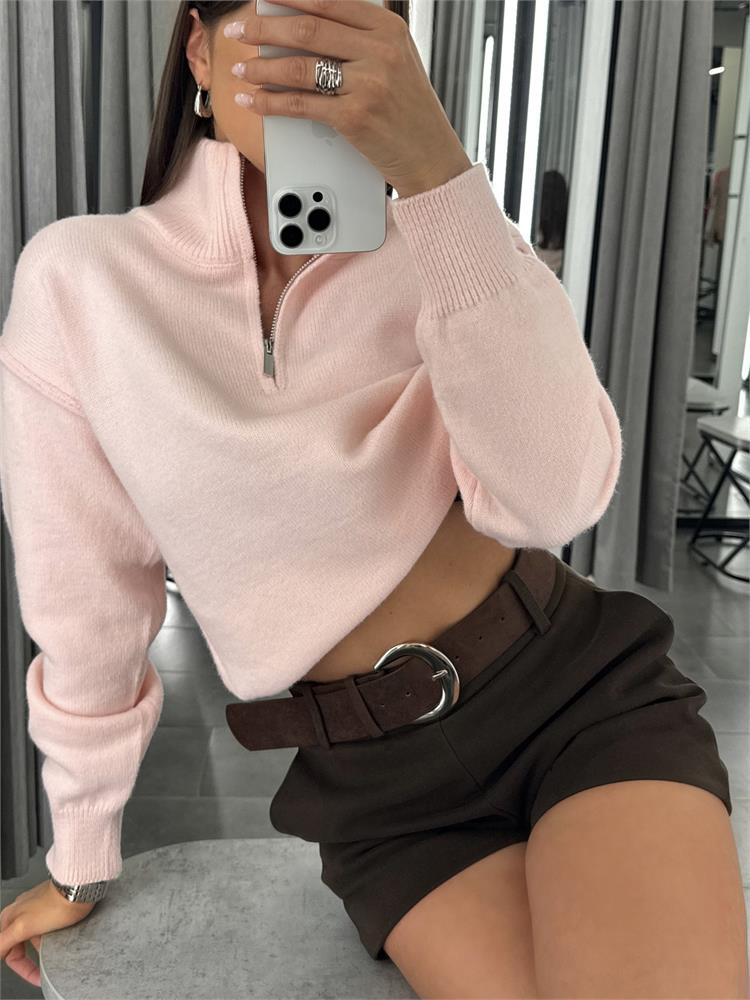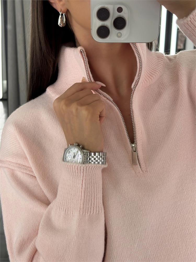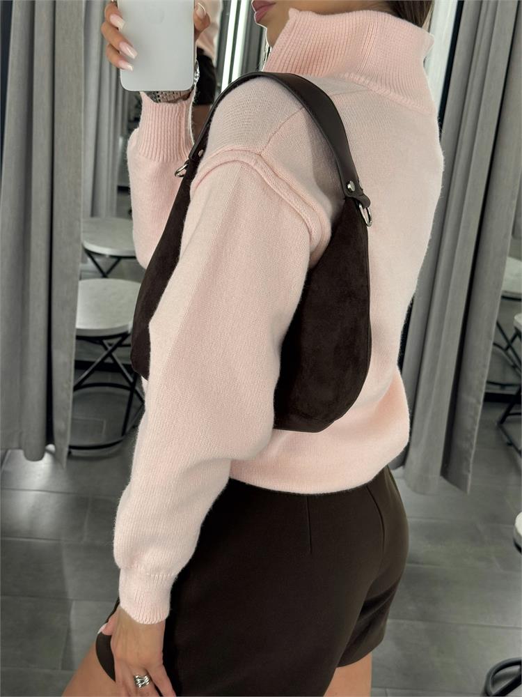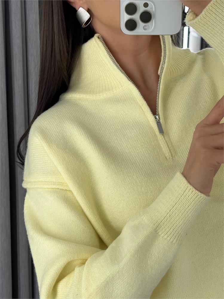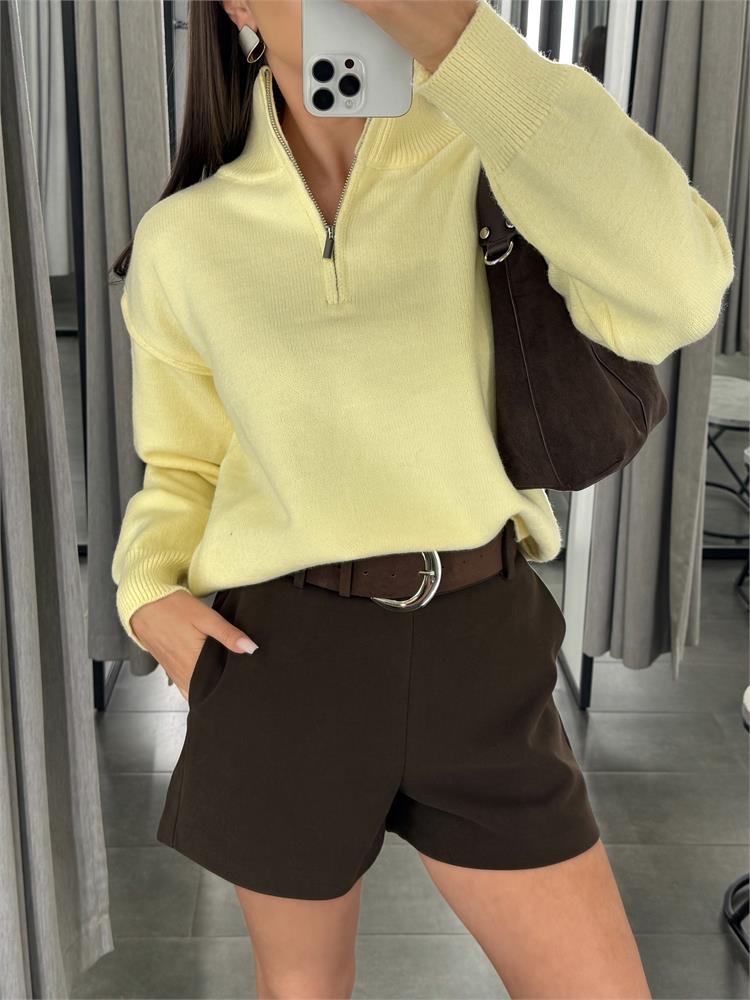 Джемпер-поло на молнии+акцентные плечевые швы 7006