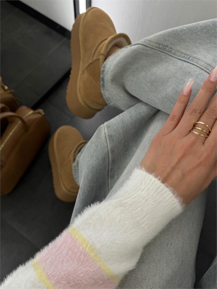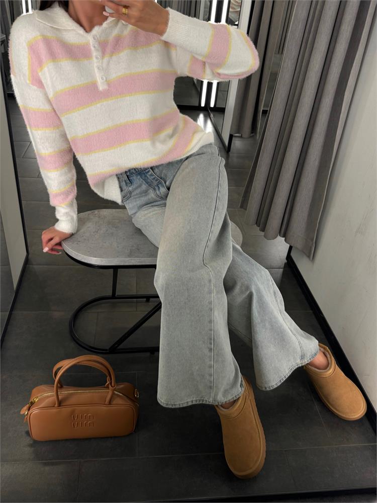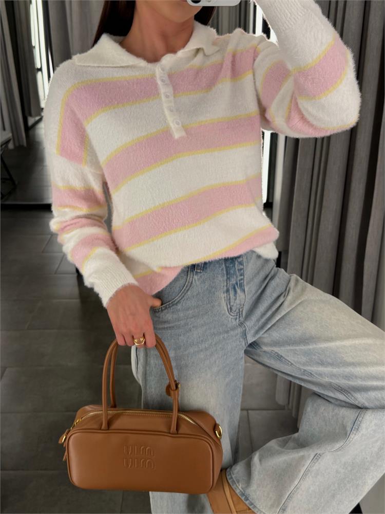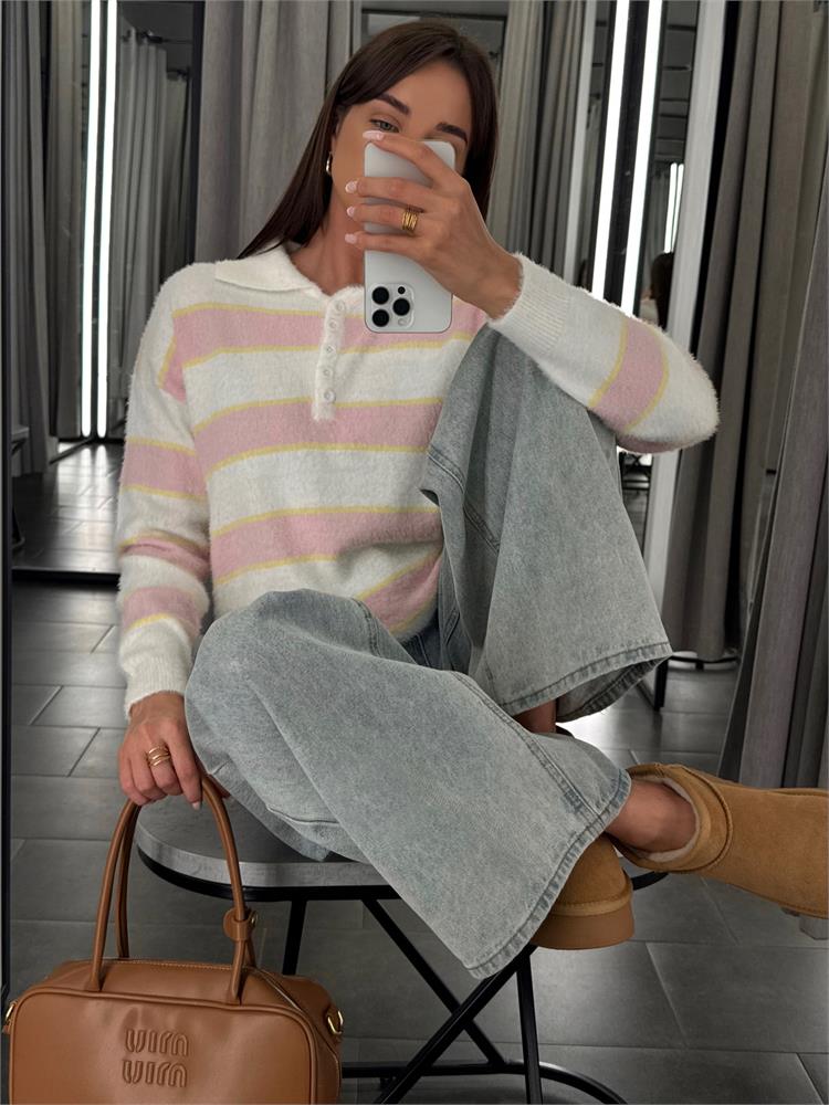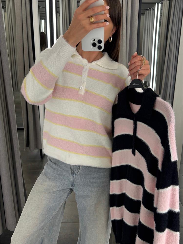 Джемпер-поло пушистый на пуговицах, в полоску 61109