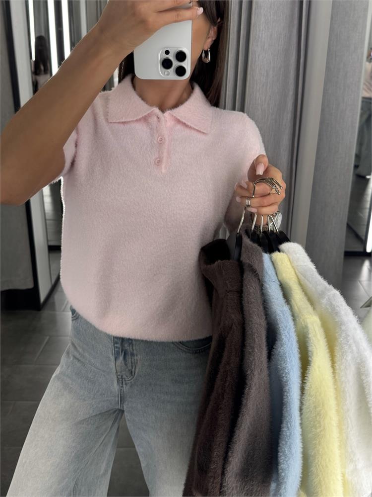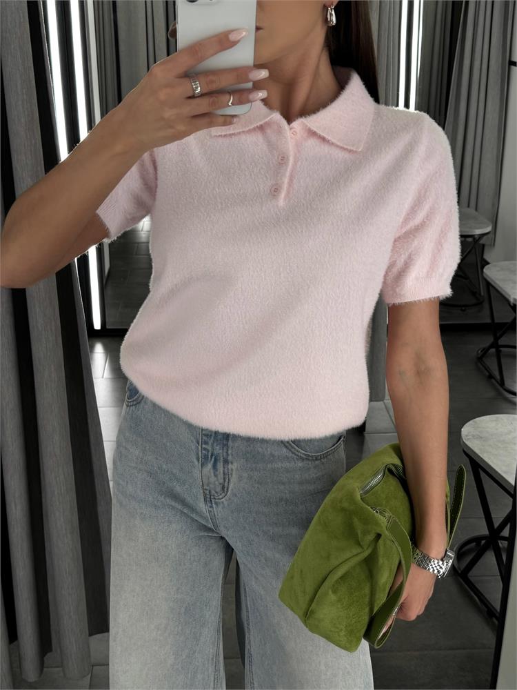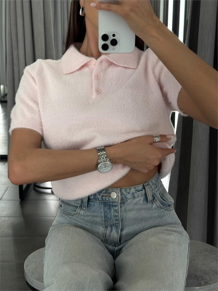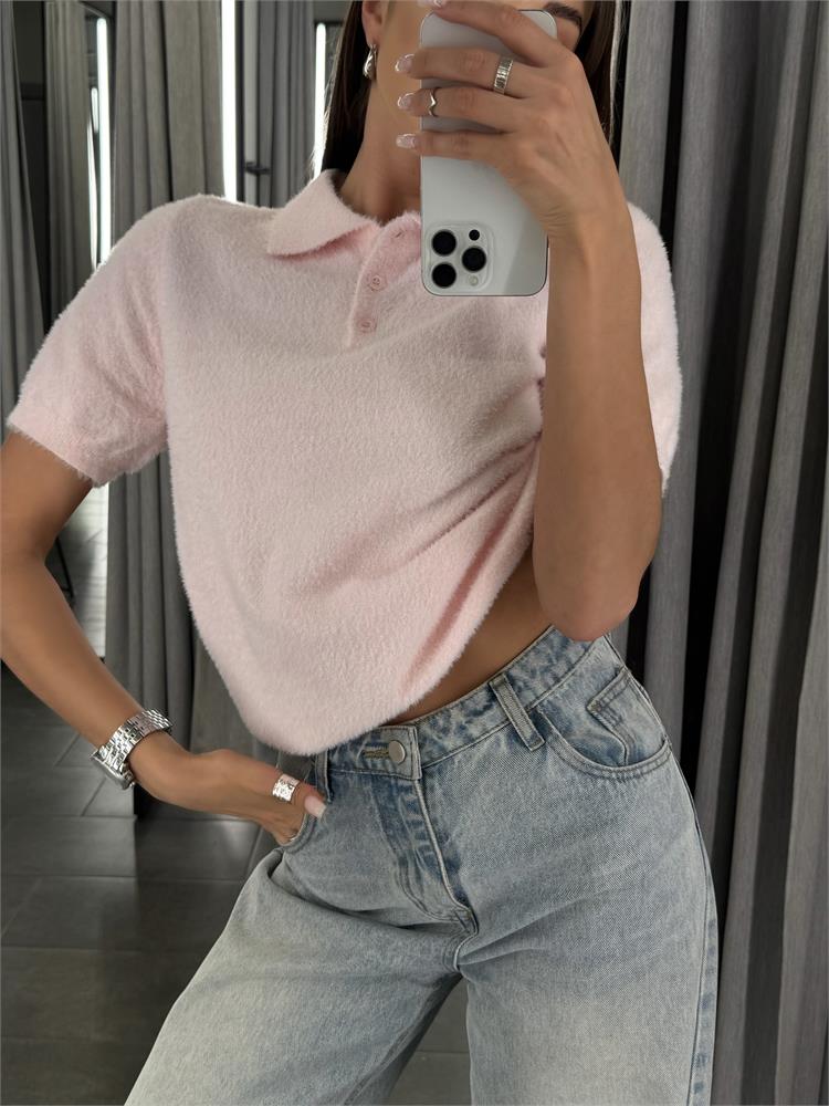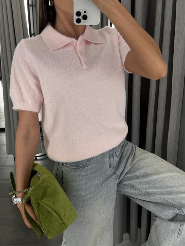 Джемпер-поло пушистый, с воротничком, на пуговицах, рукав 1/3 461