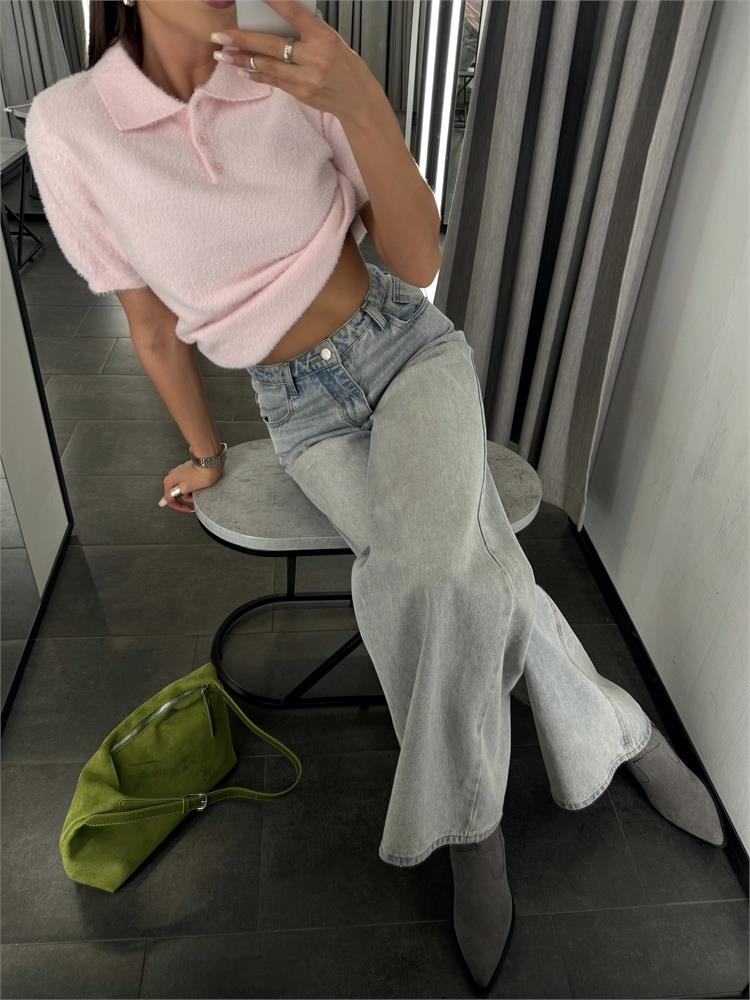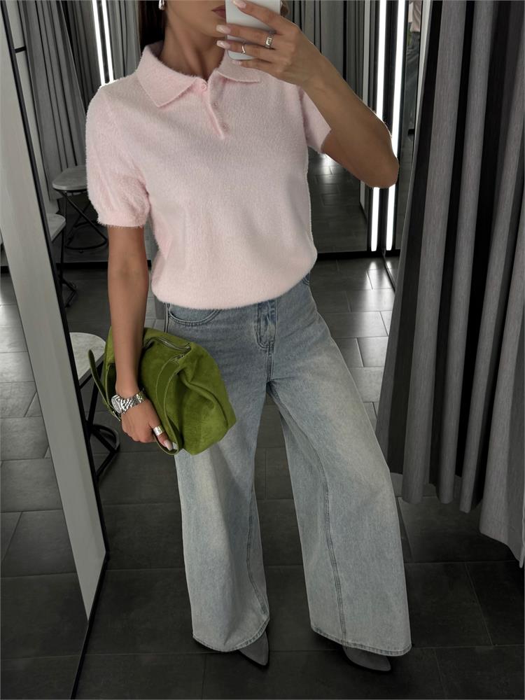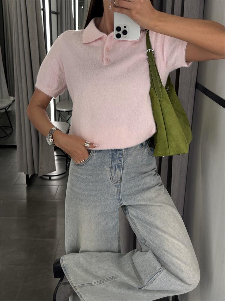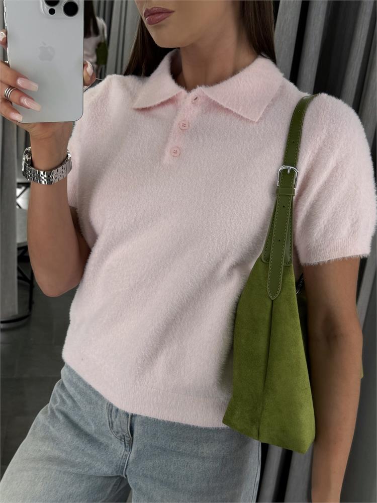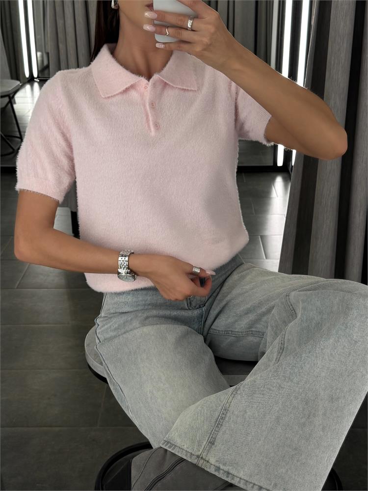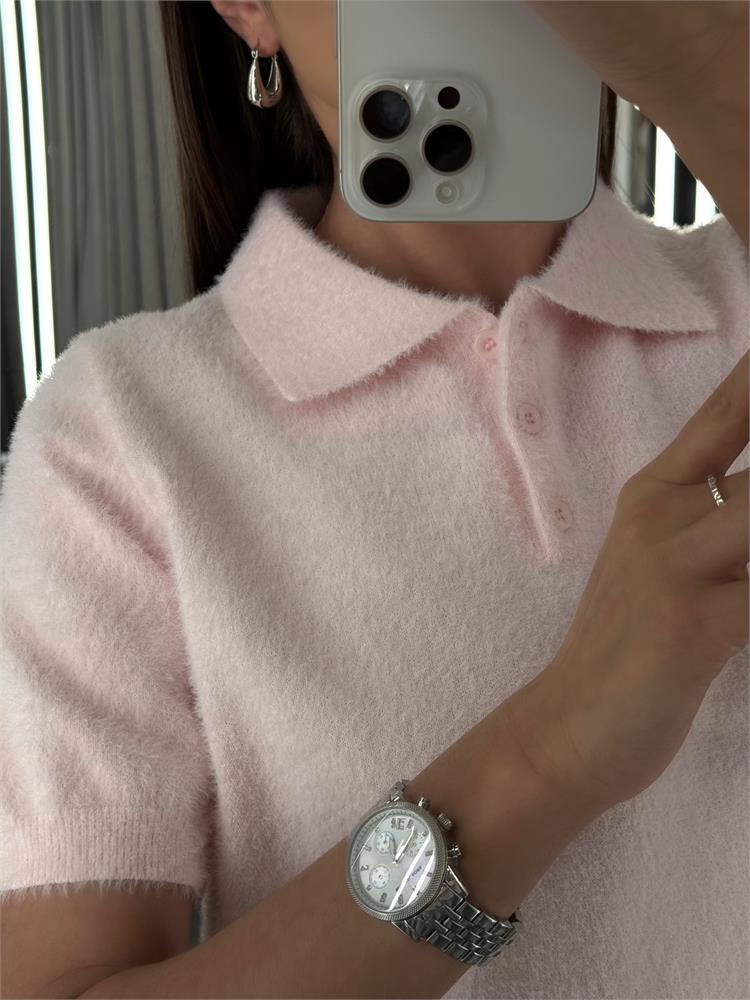 Джемпер-поло пушистый, с воротничком, на пуговицах, рукав 1/3 461
