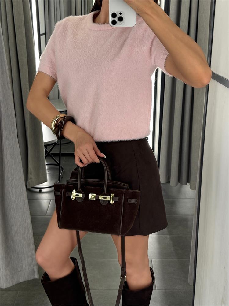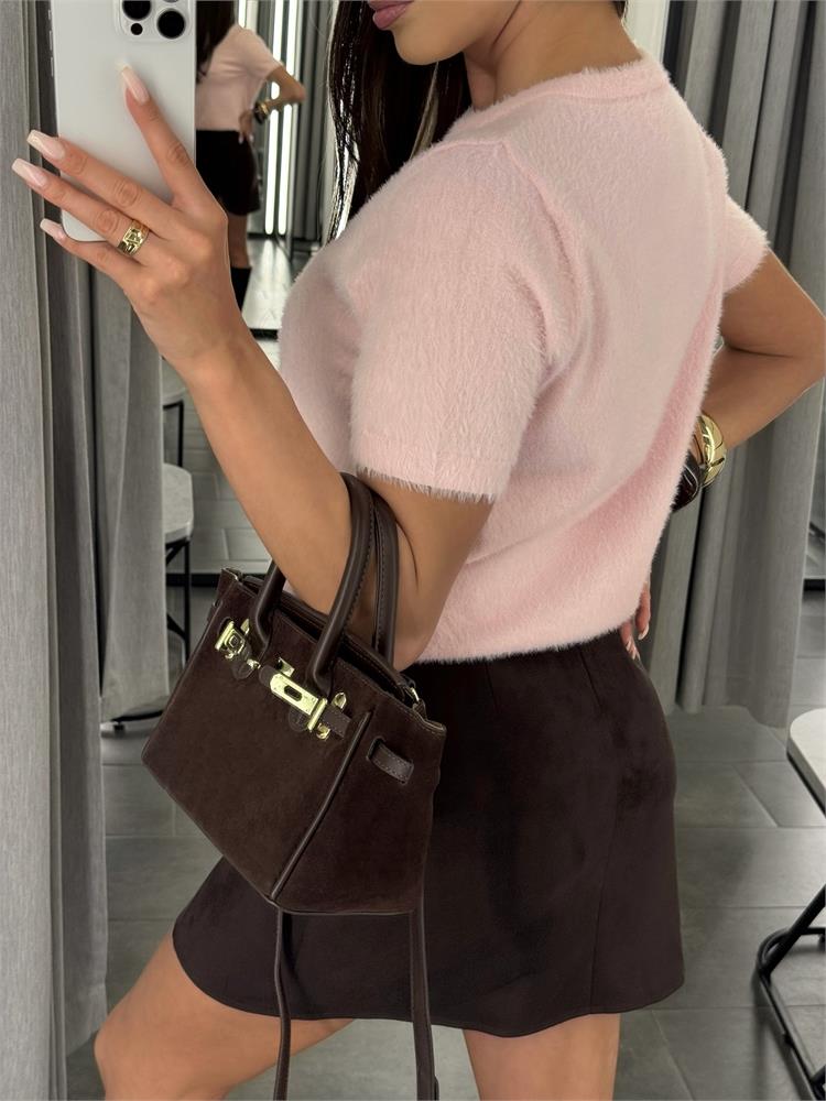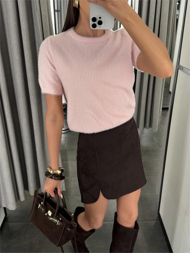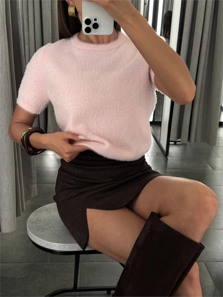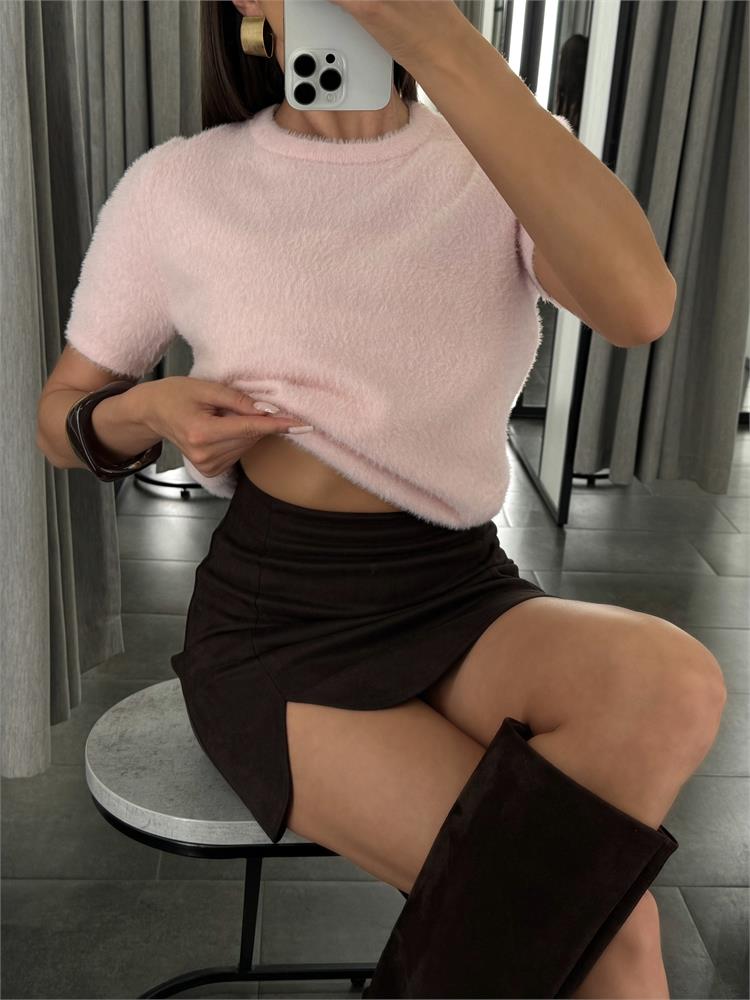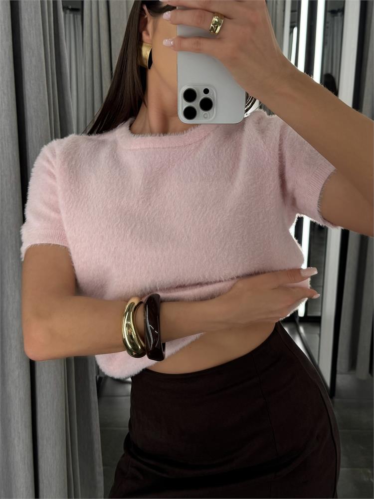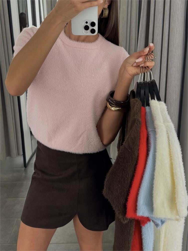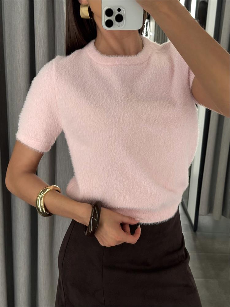 Джемпер пушистый с круглым воротом, рукав 1/3 7411