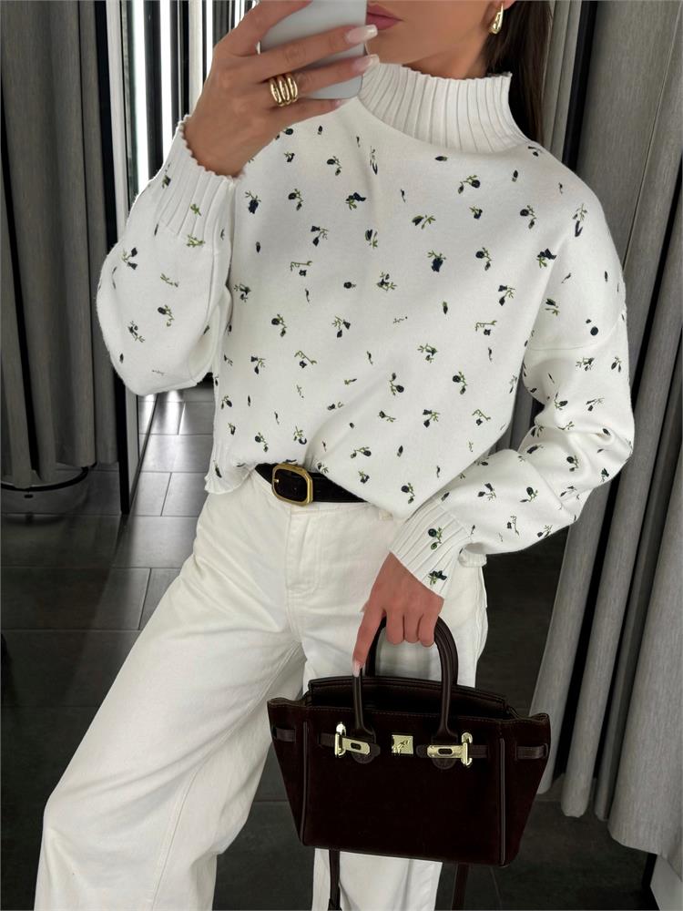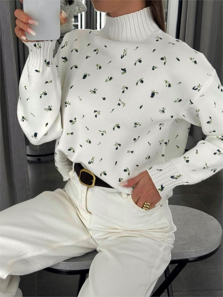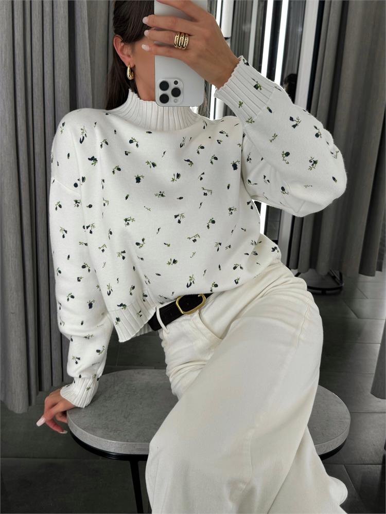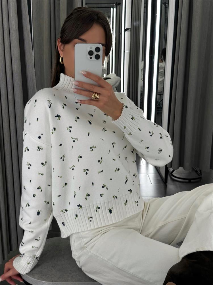 Джемпер с воротом-стойкой «FLOWERS» 5509-1