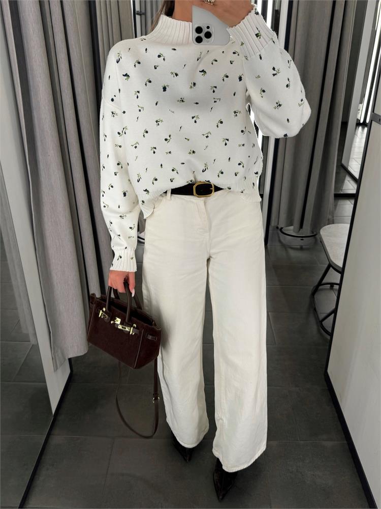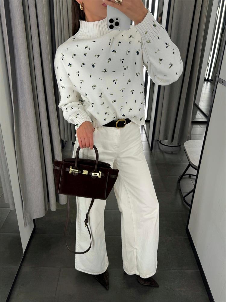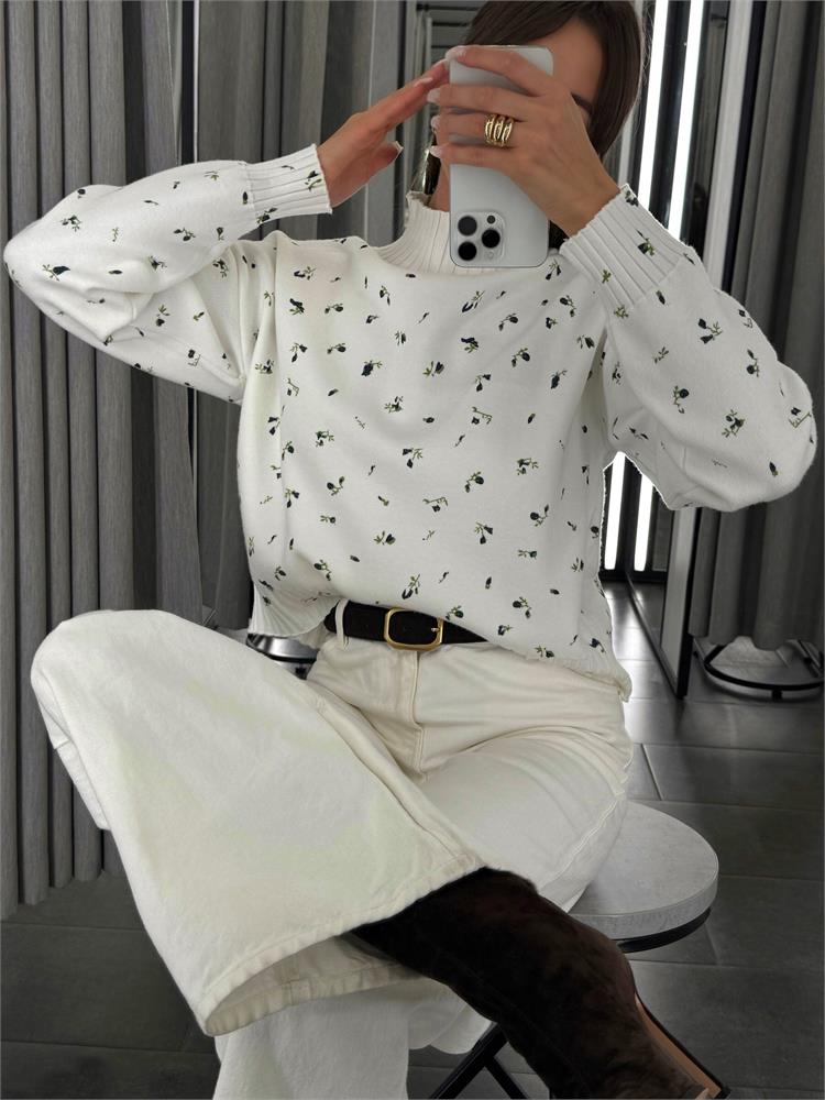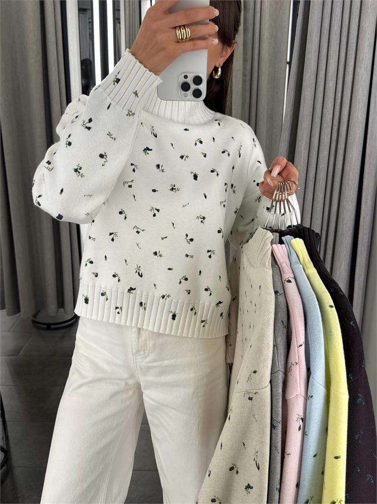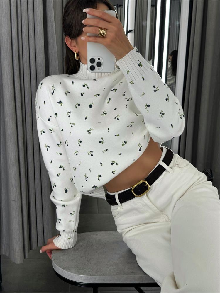 Джемпер с воротом-стойкой «FLOWERS» 5509-1