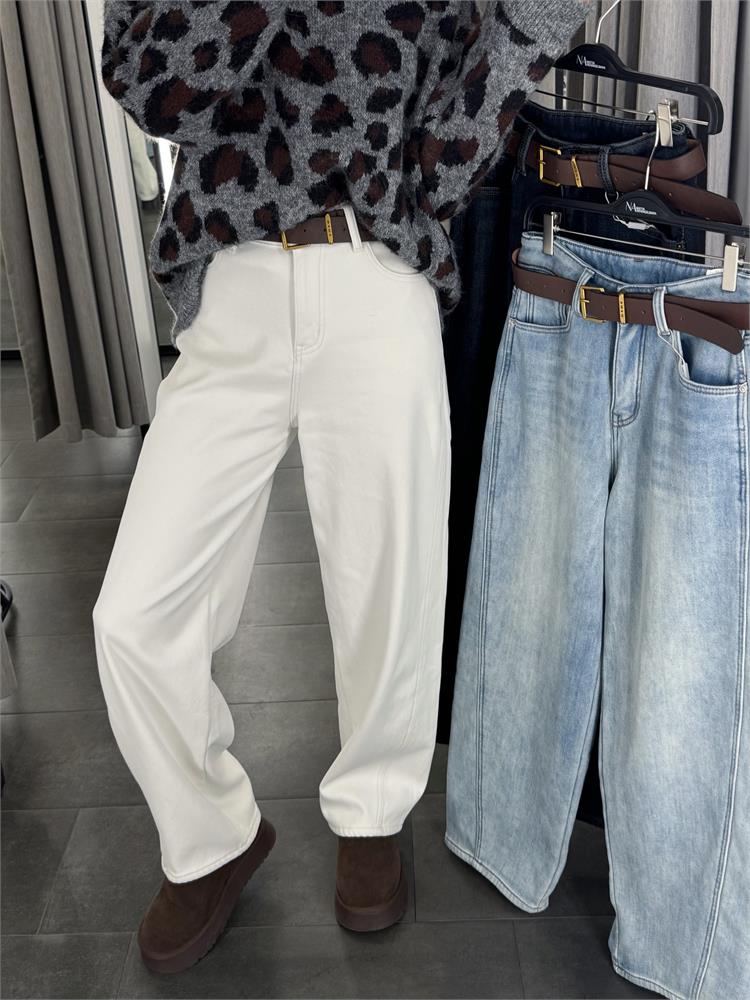 Джинсы mom утеплённые с ремнём в комплекте 9836
