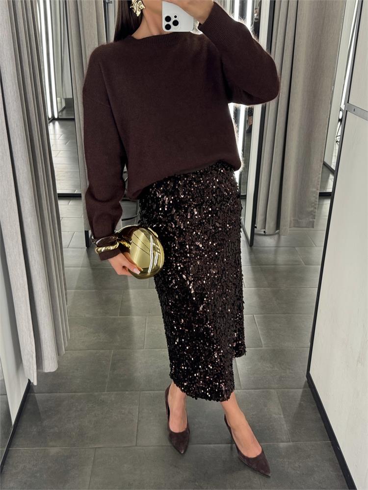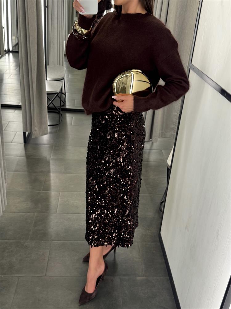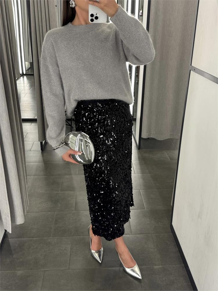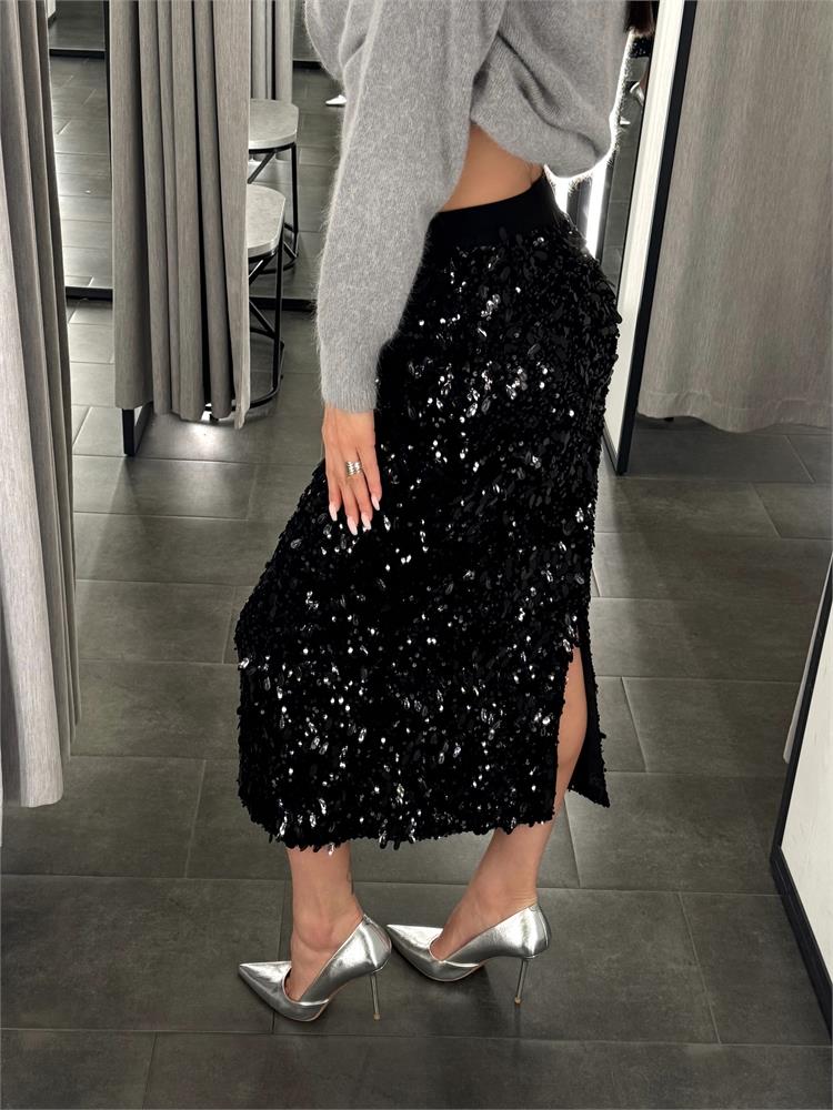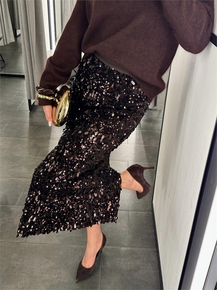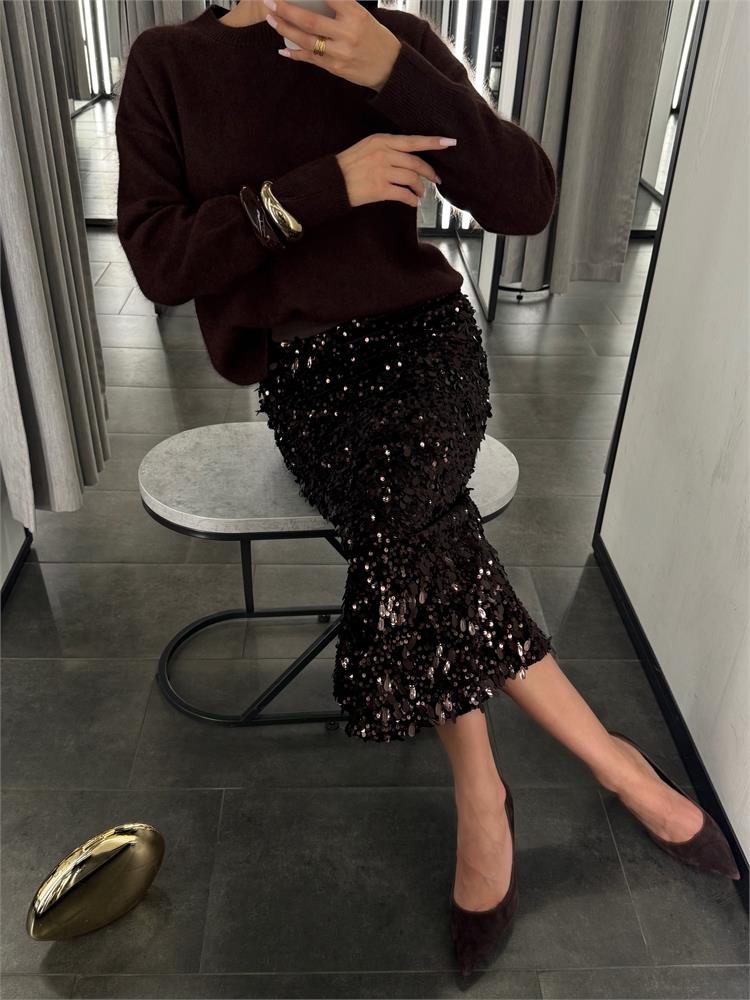 Юбка миди из пайеточной ткани на полном подкладе 7676