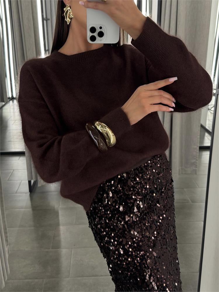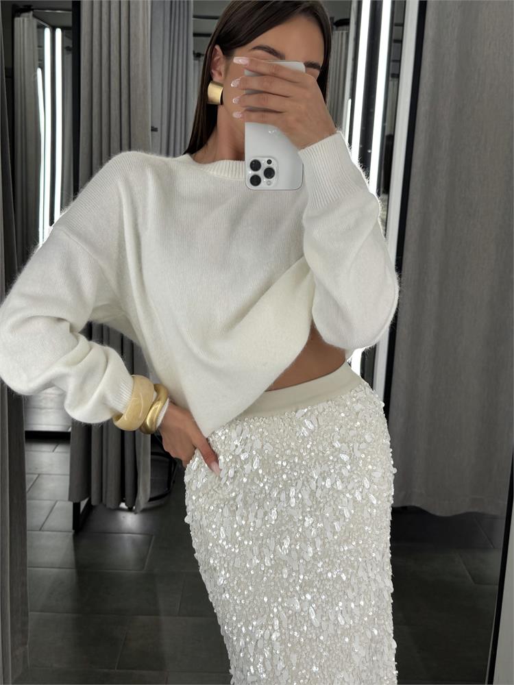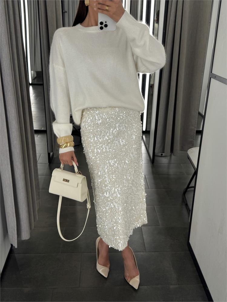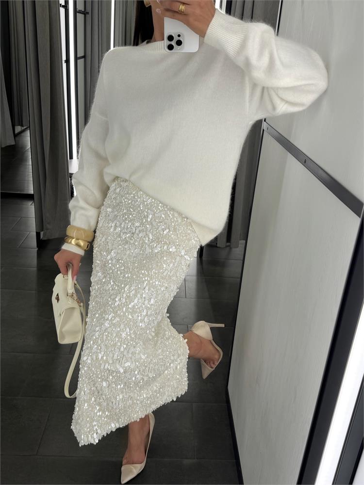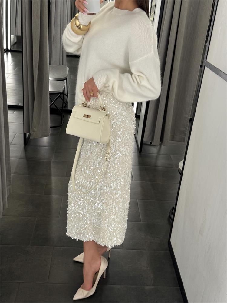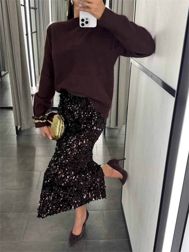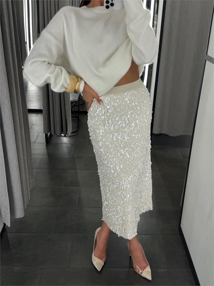 Юбка миди из пайеточной ткани на полном подкладе 7676