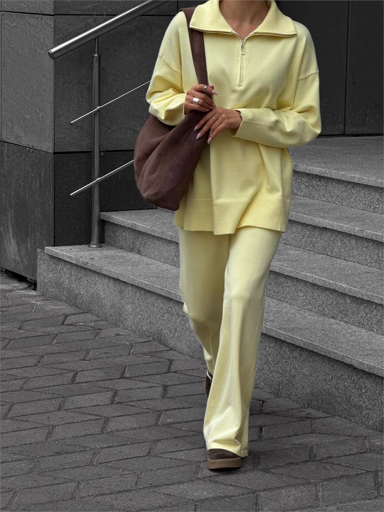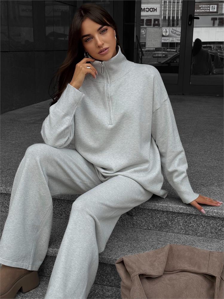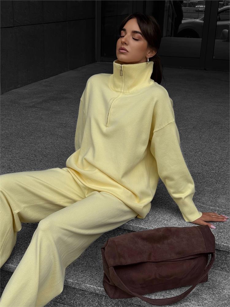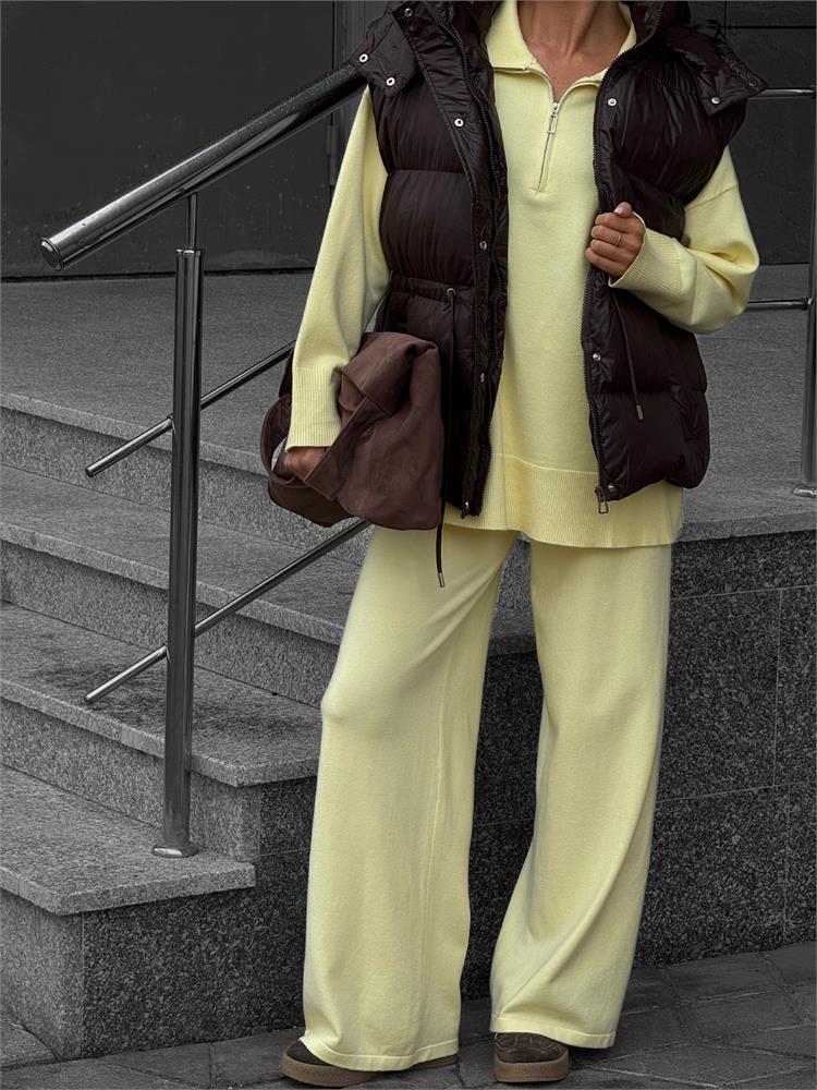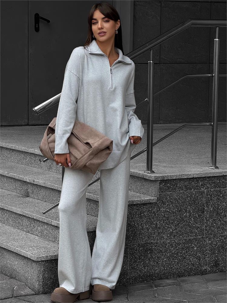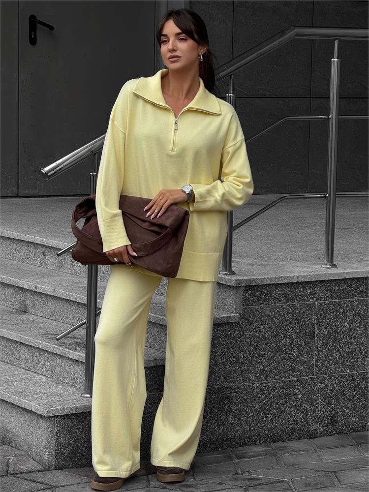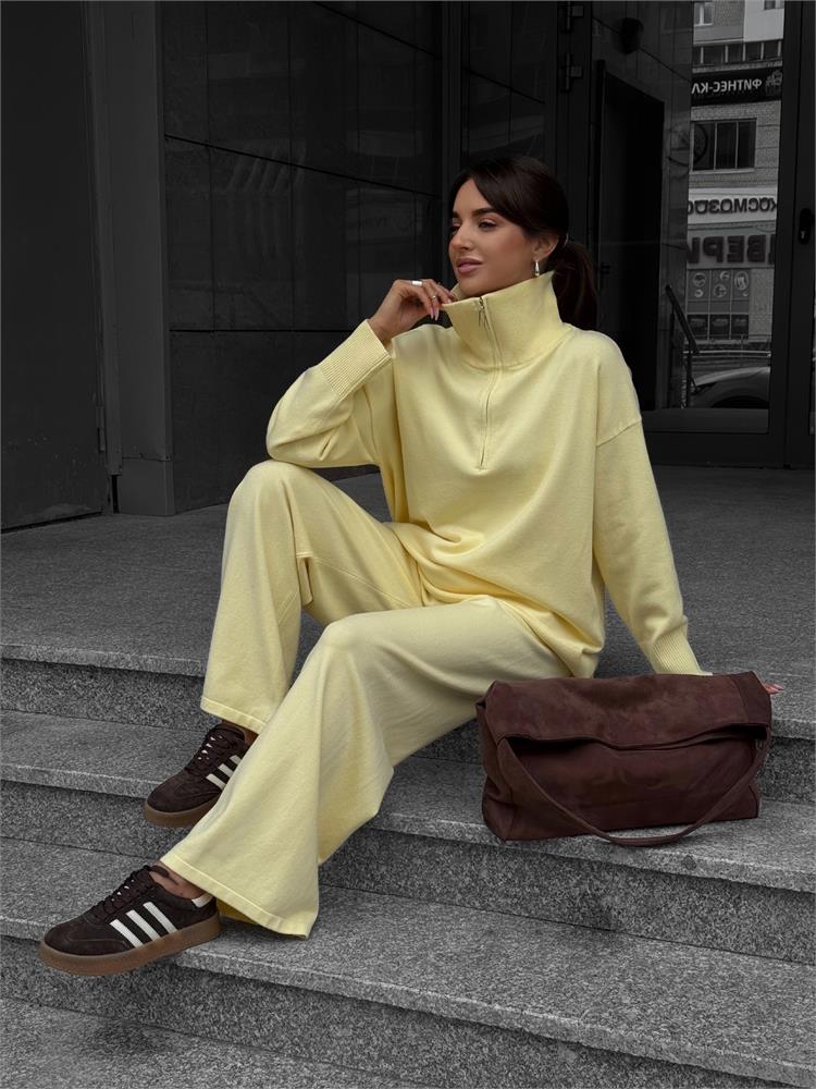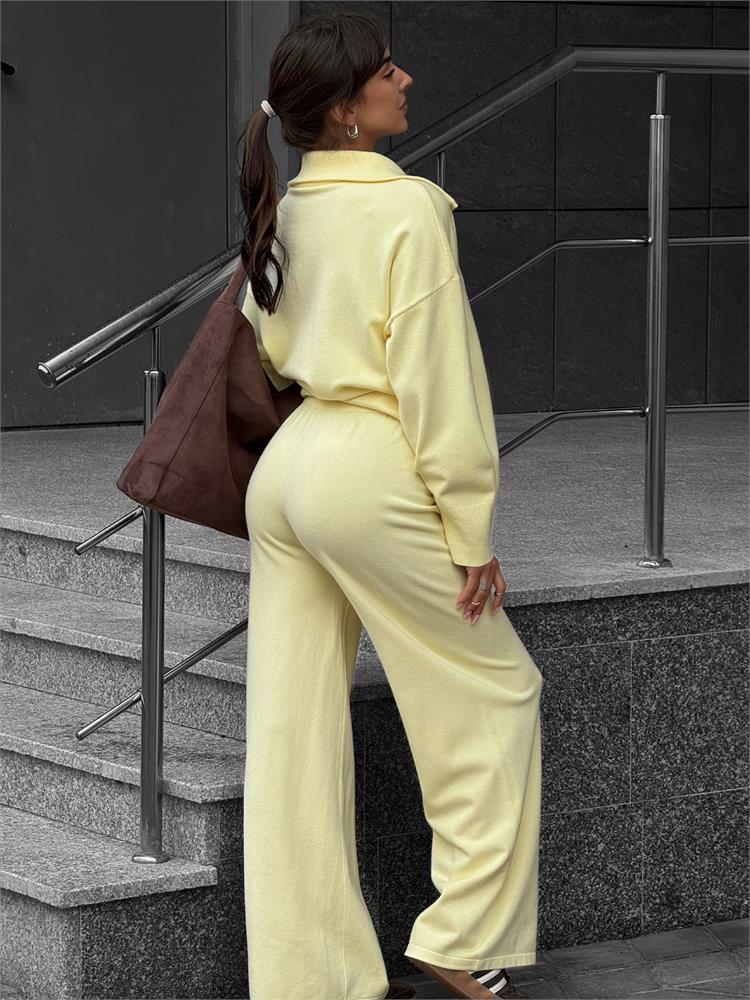 Костюм из трикотажа: джемпер-поло+брюки-палаццо 378