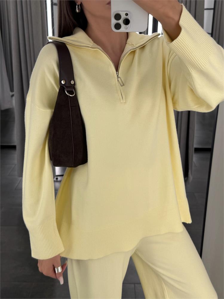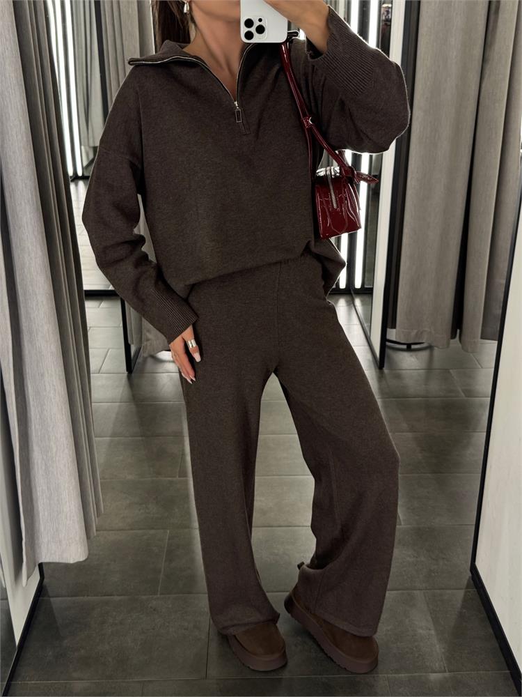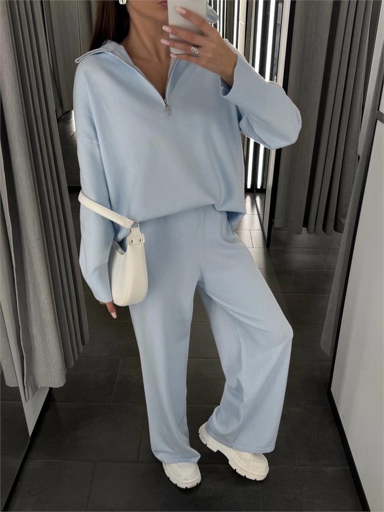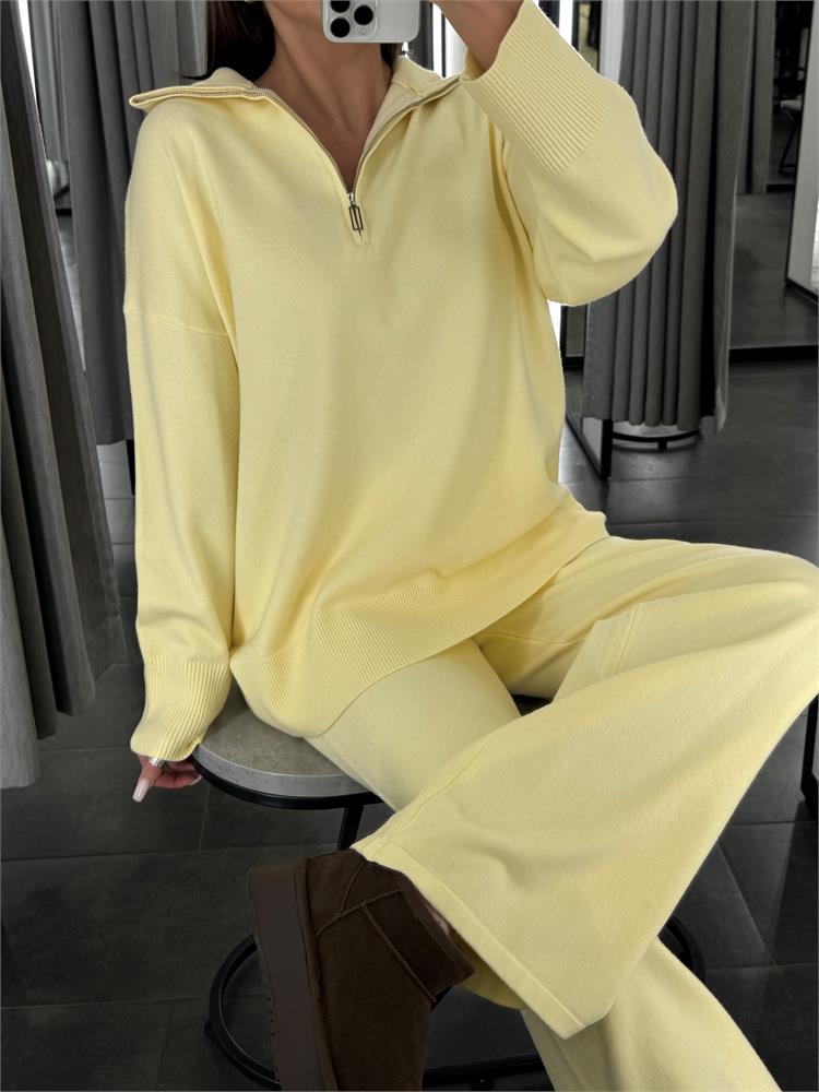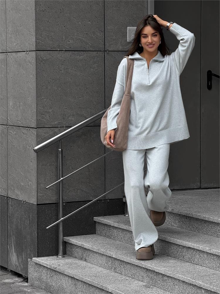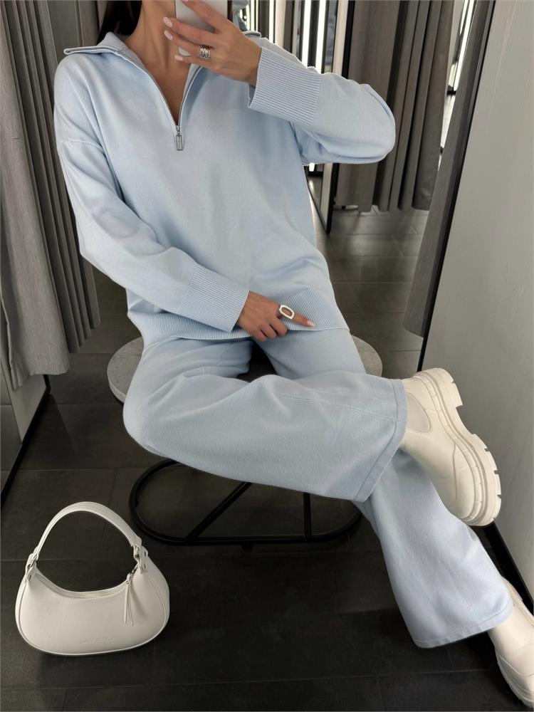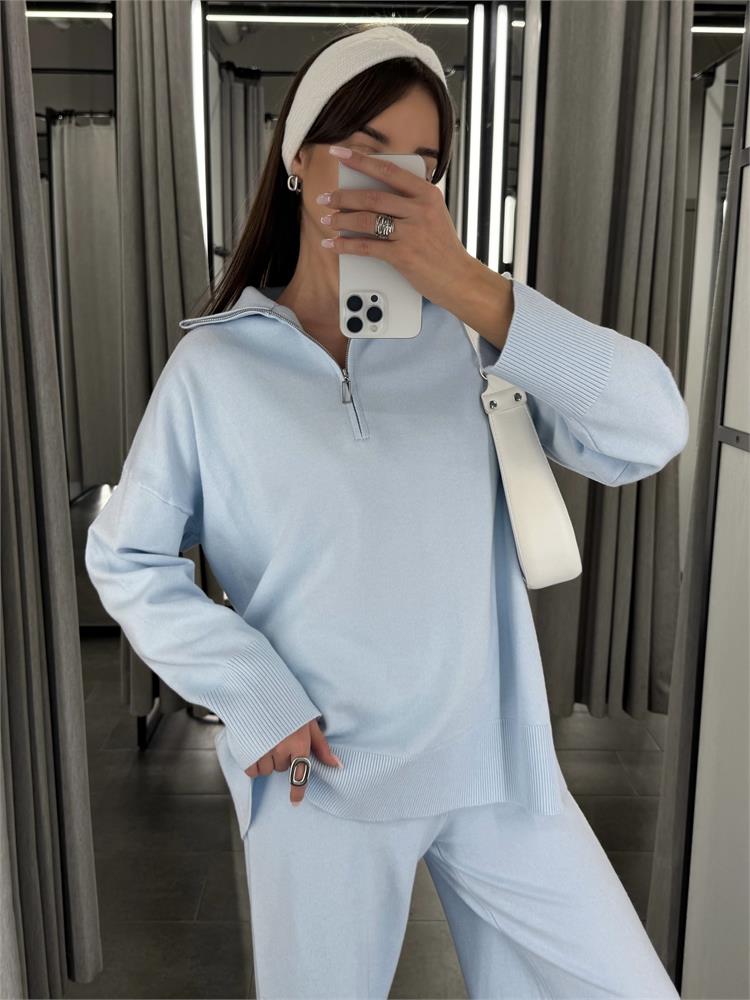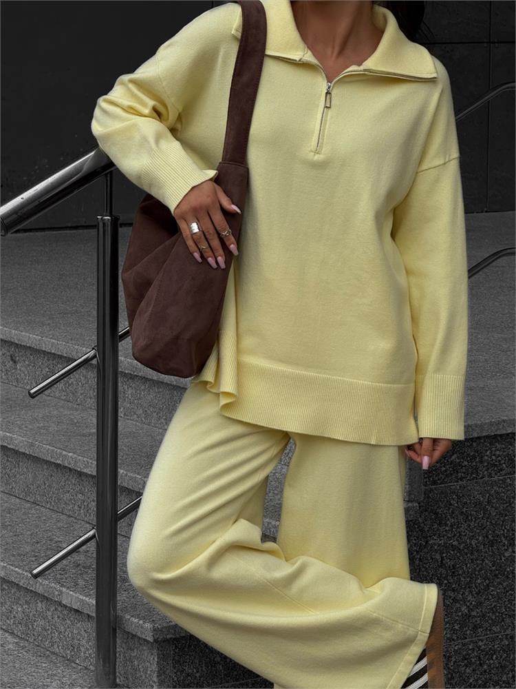 Костюм из трикотажа: джемпер-поло+брюки-палаццо 378