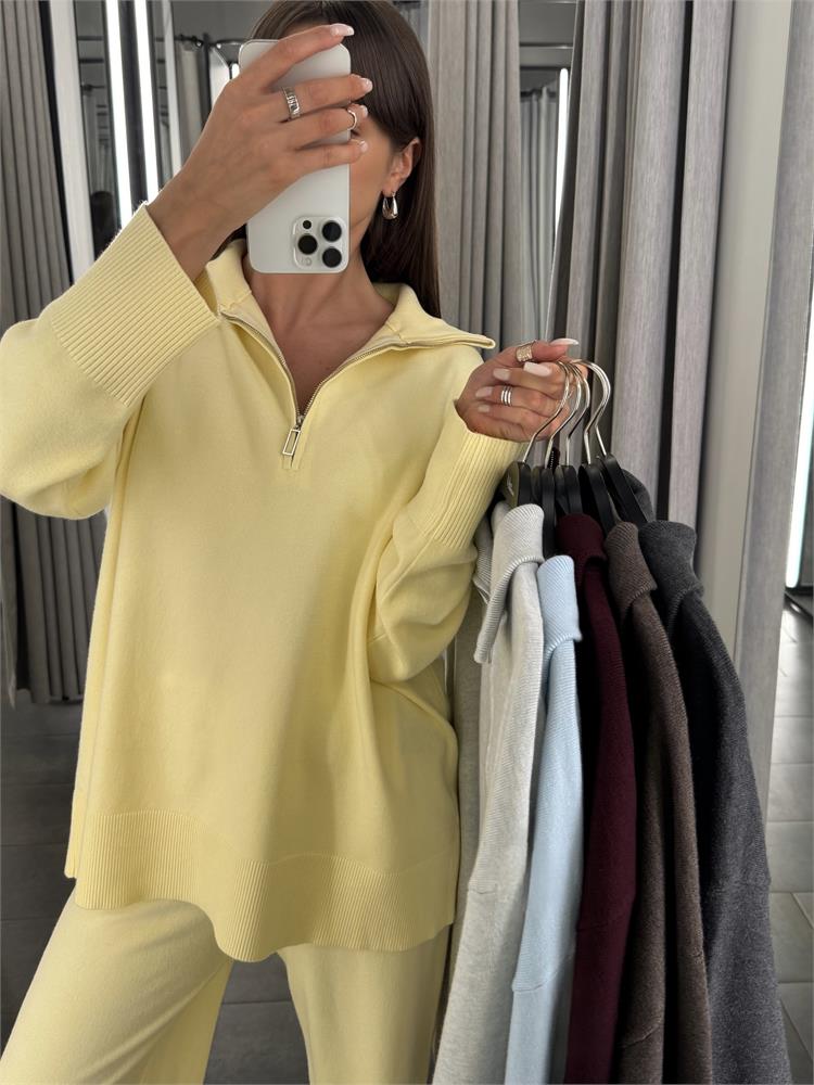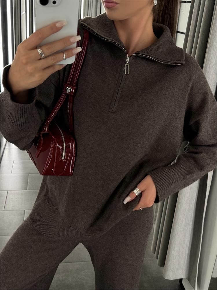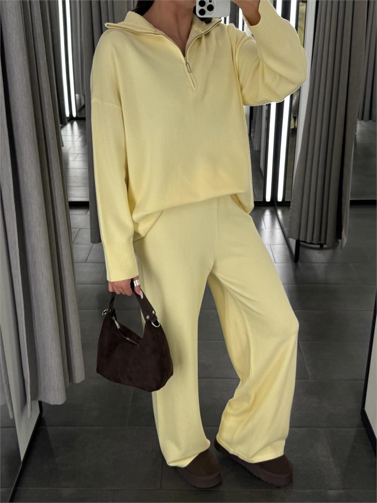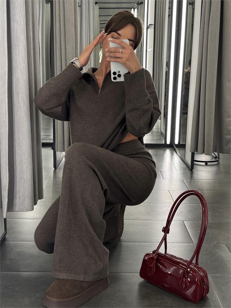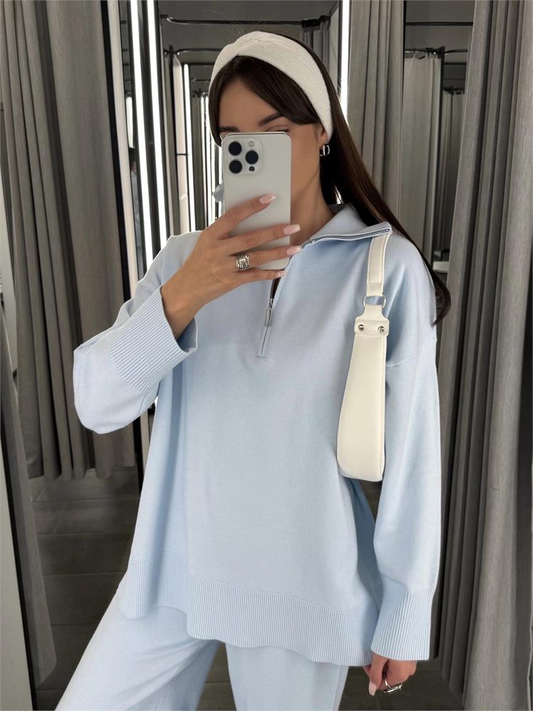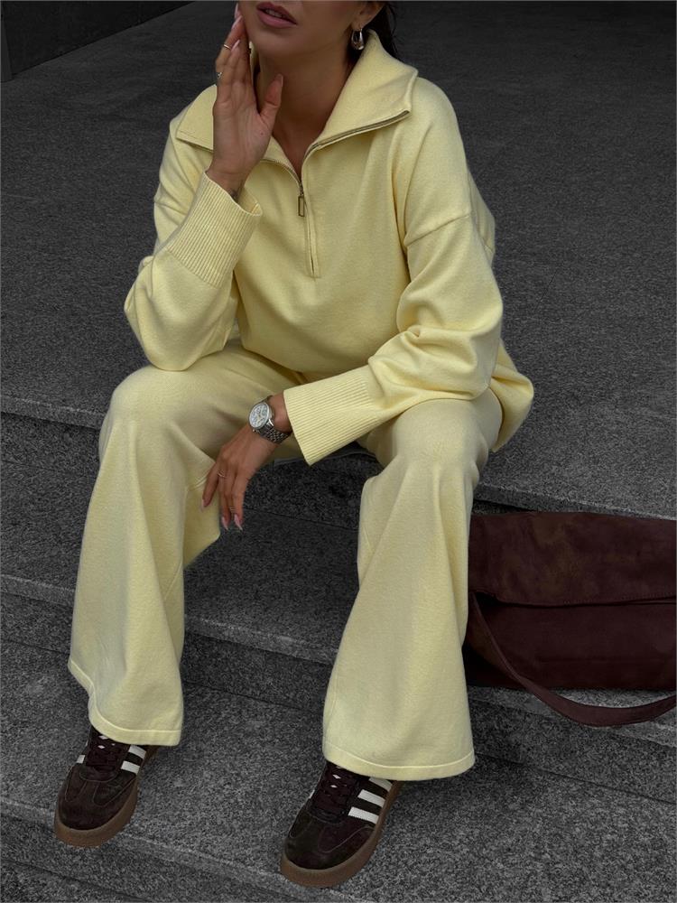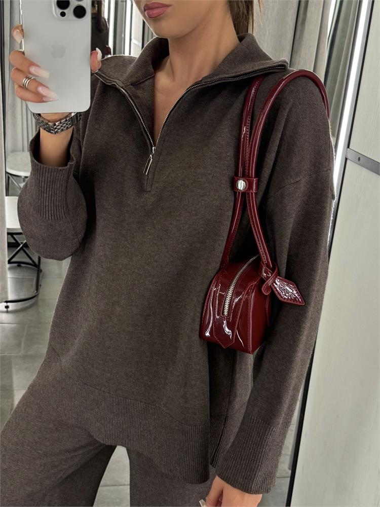Костюм из трикотажа: джемпер-поло+брюки-палаццо 378