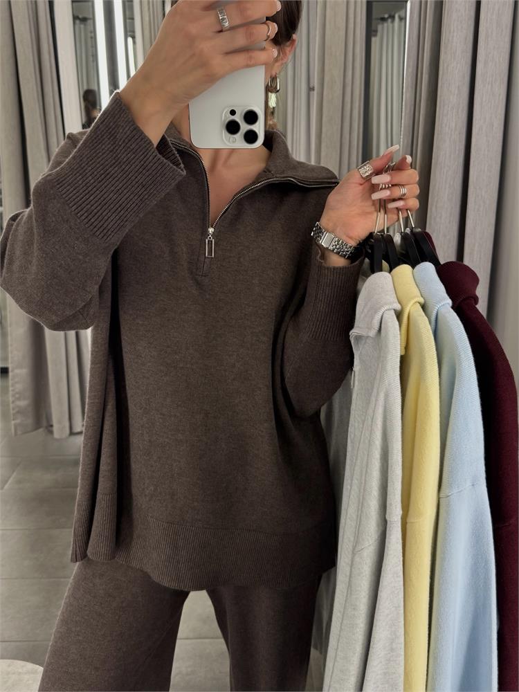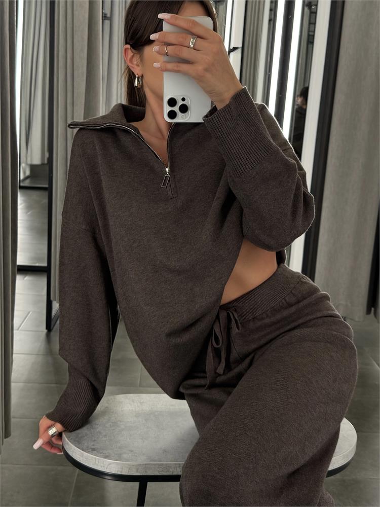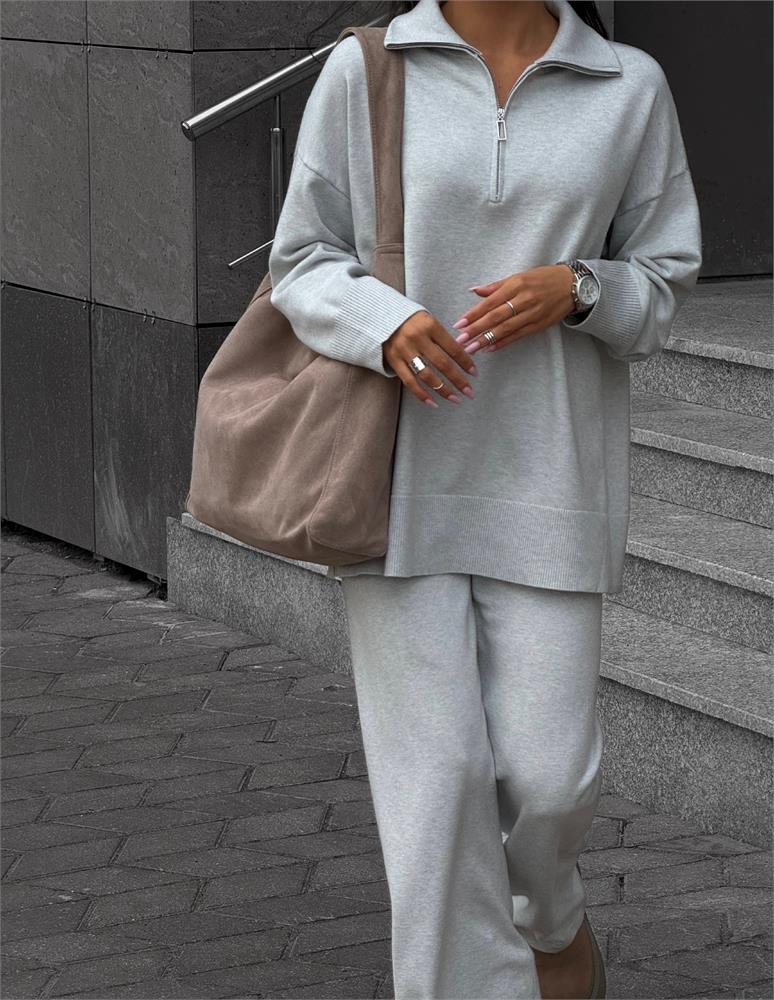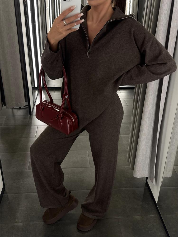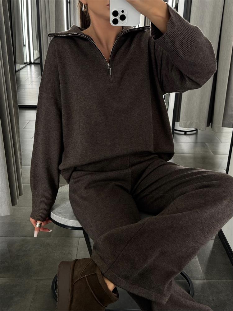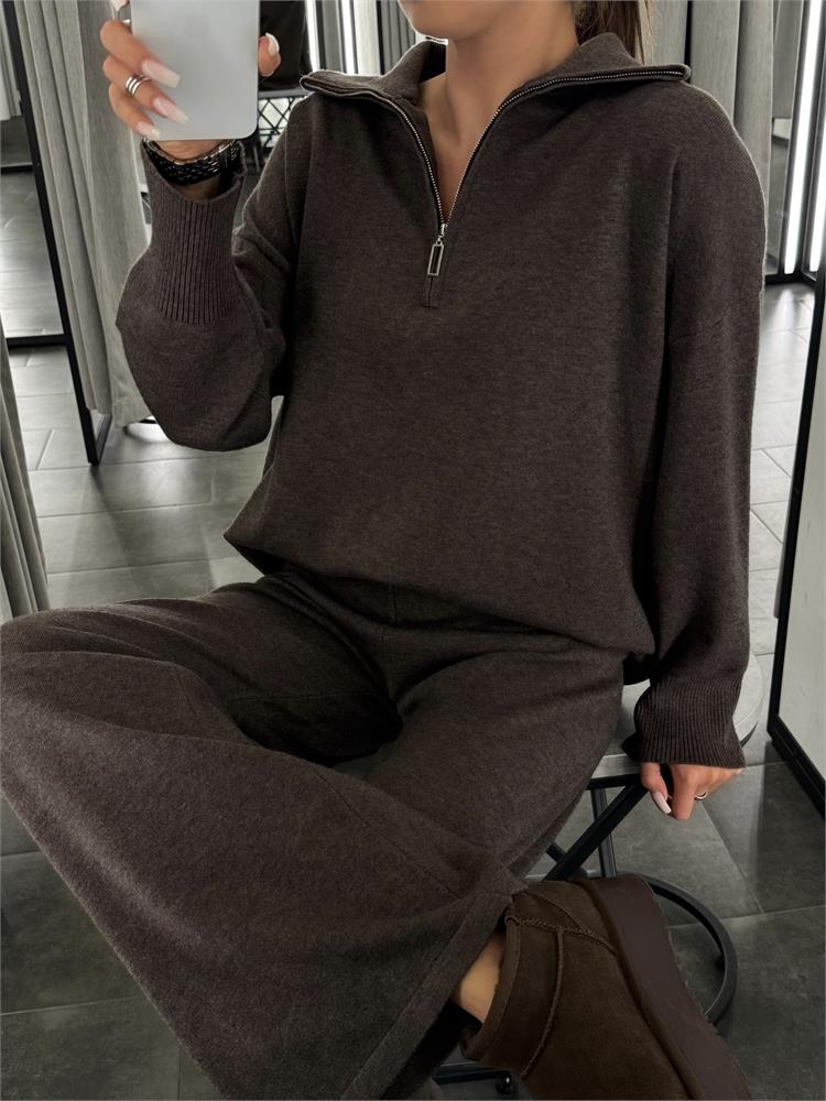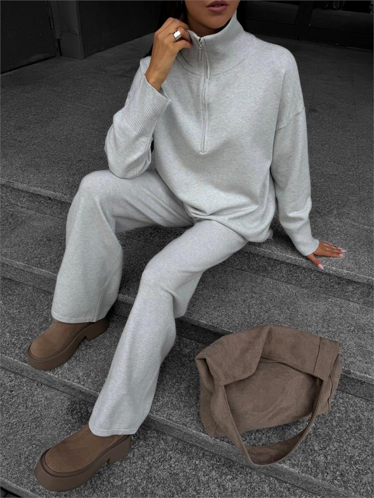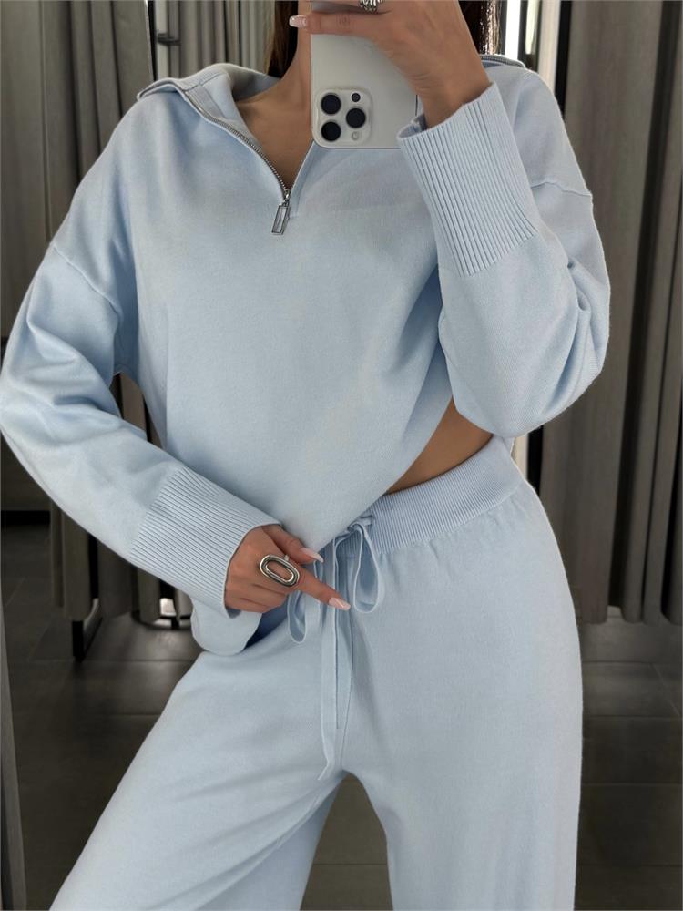 Костюм из трикотажа: джемпер-поло+брюки-палаццо 378