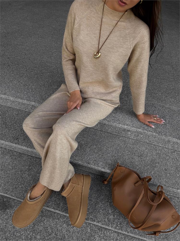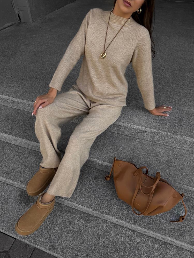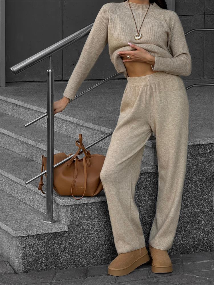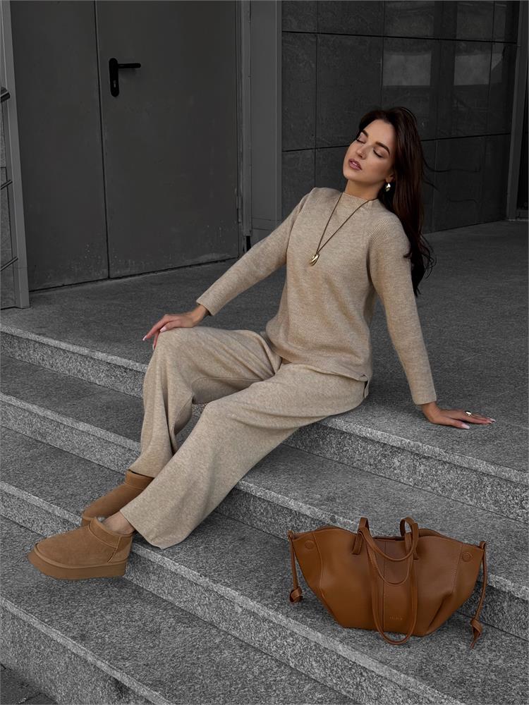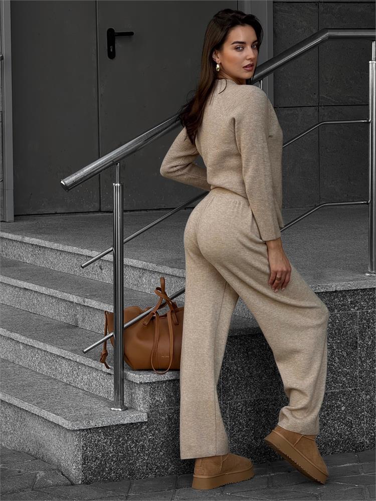 Костюм из трикотажа с шерстью: джемпер свободного кроя+брюки-палаццо 4135