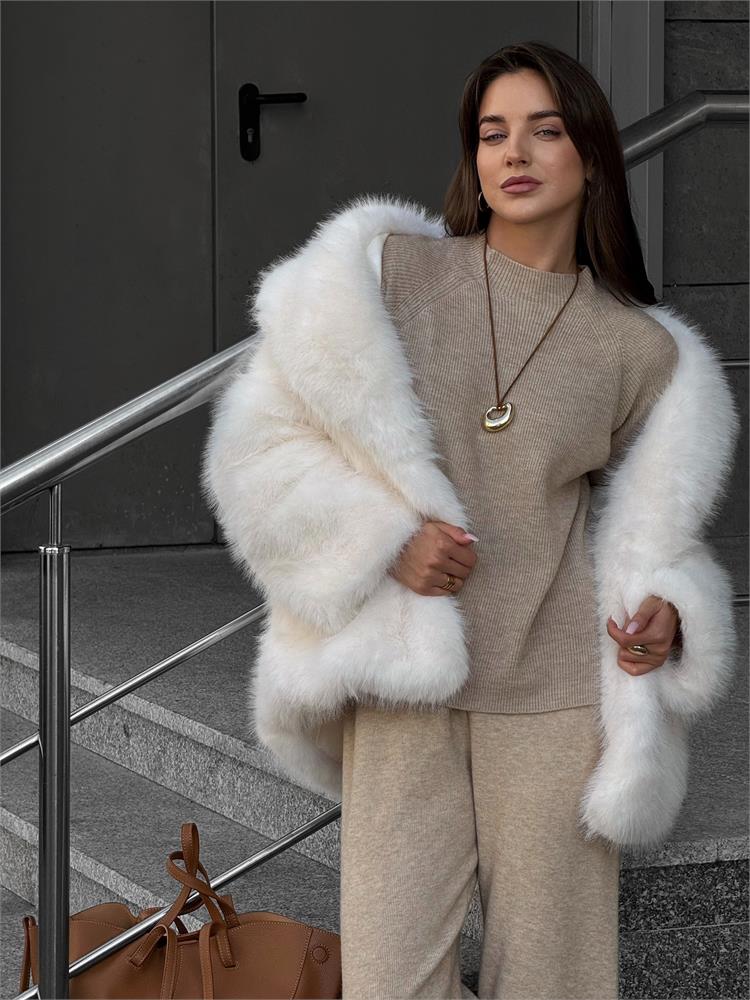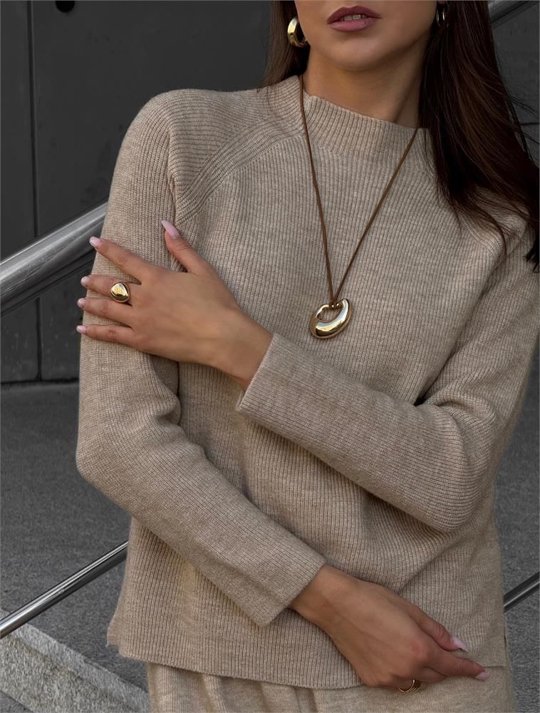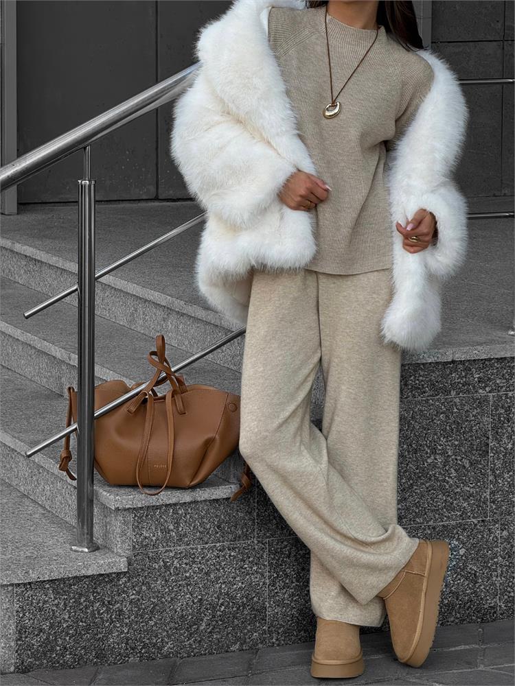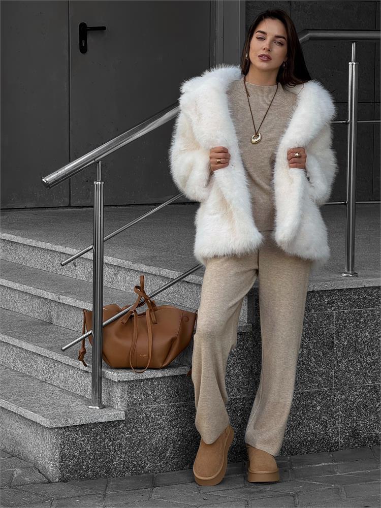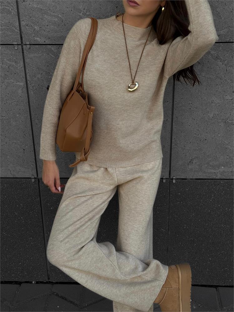 Костюм из трикотажа с шерстью: джемпер свободного кроя+брюки-палаццо 4135