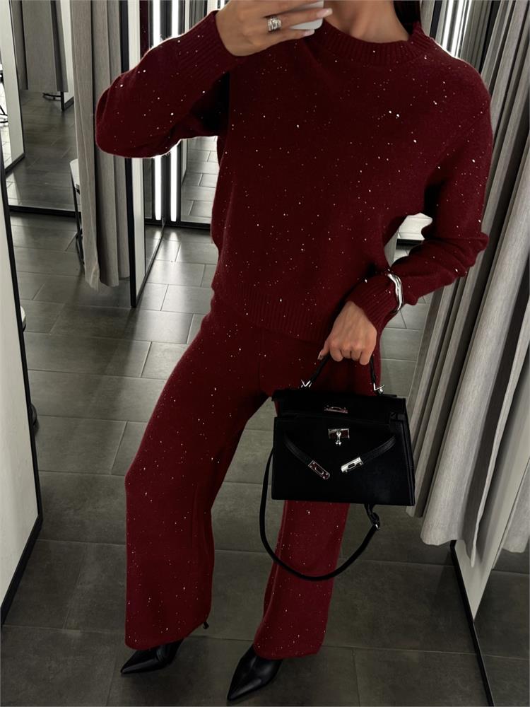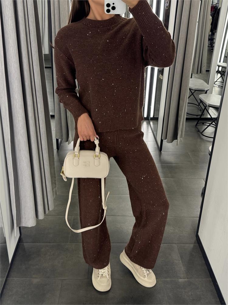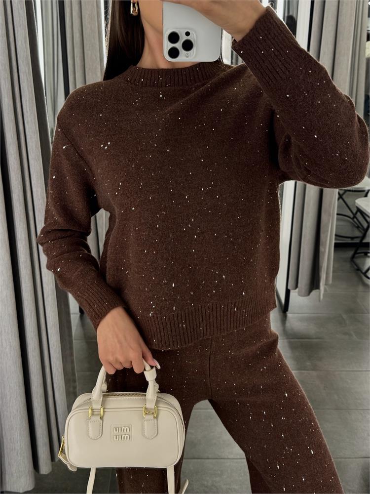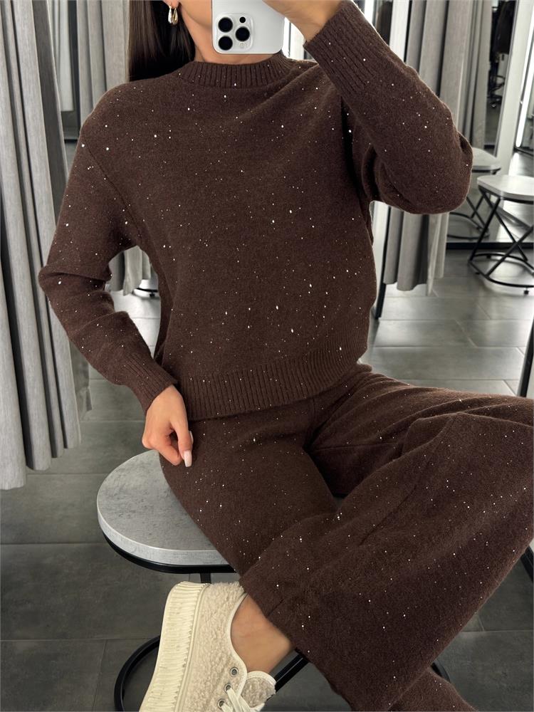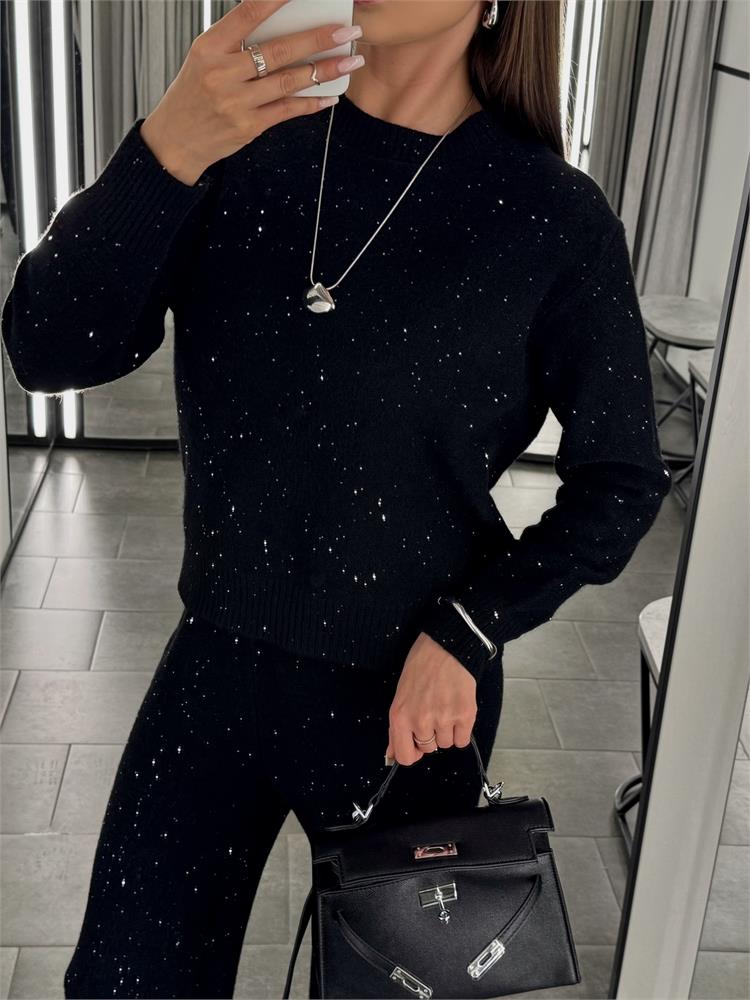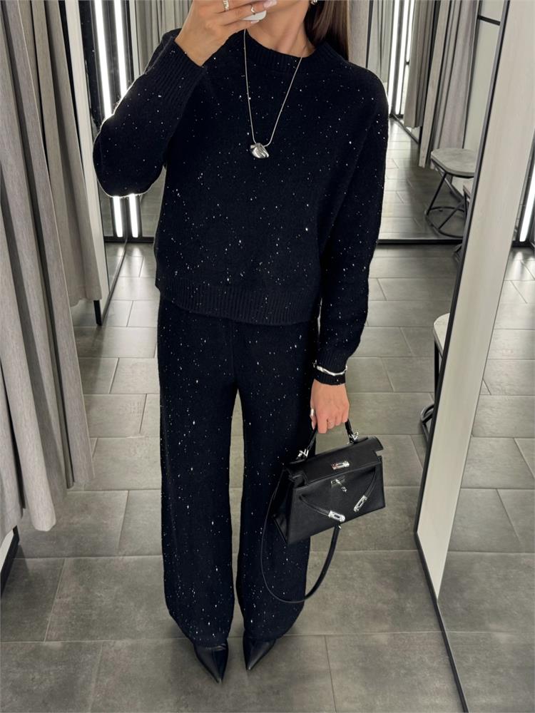 Костюм трикотажный «ПАЙЕТКИ»: джемпер+брюки-палаццо T202