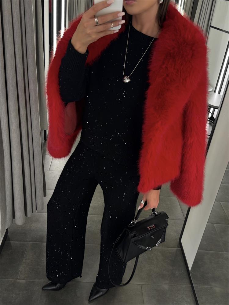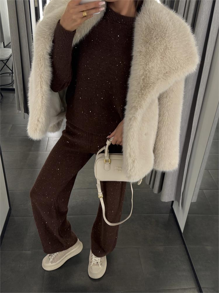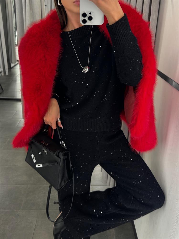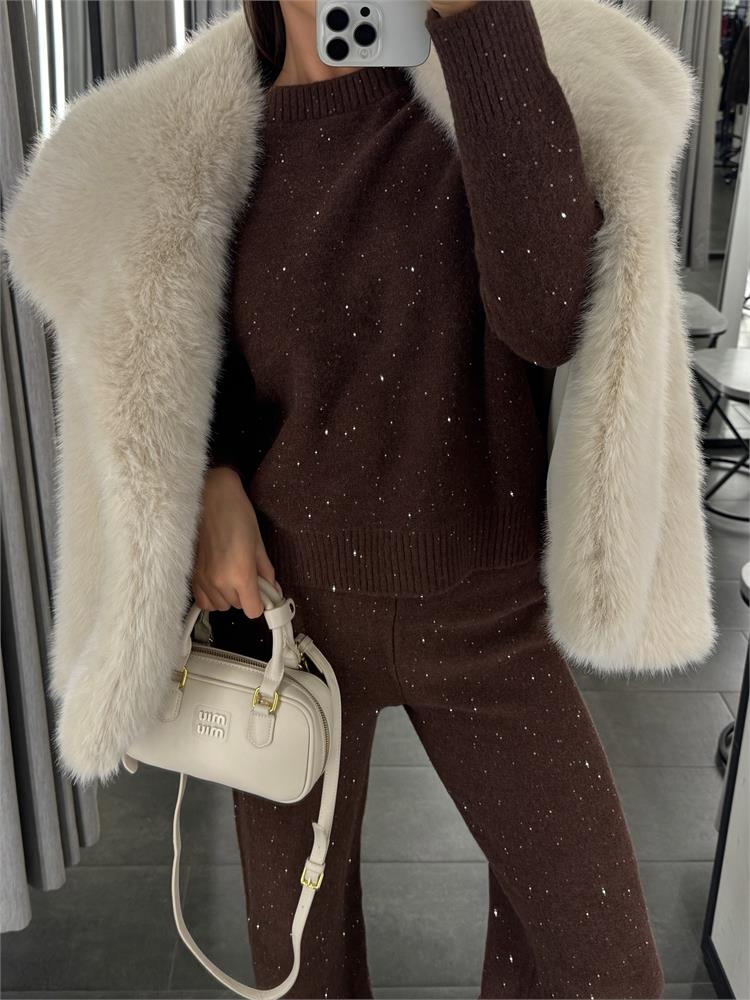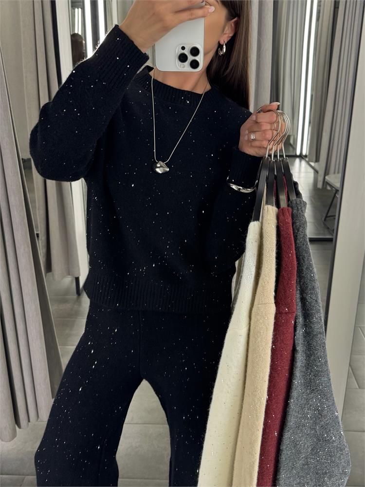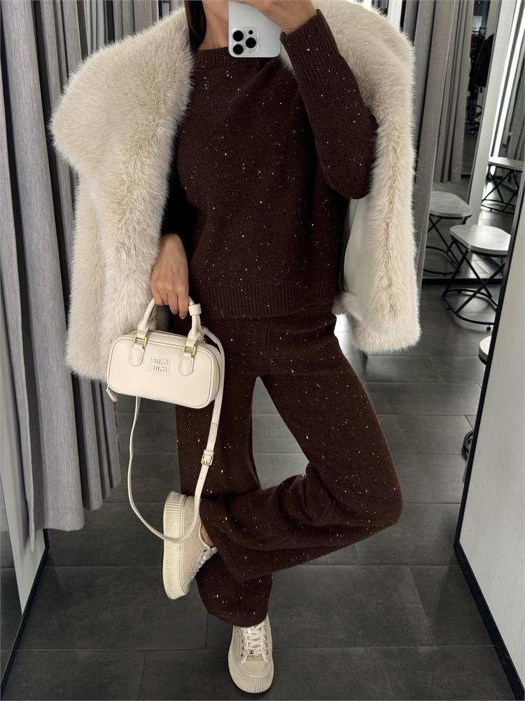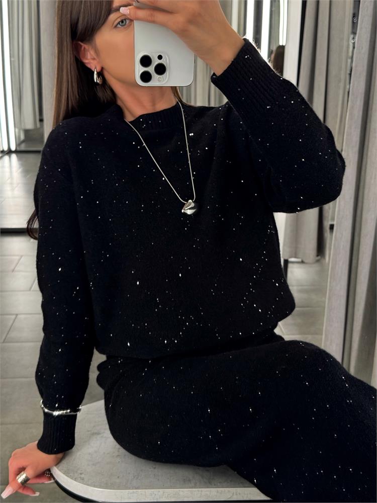 Костюм трикотажный «ПАЙЕТКИ»: джемпер+брюки-палаццо T202