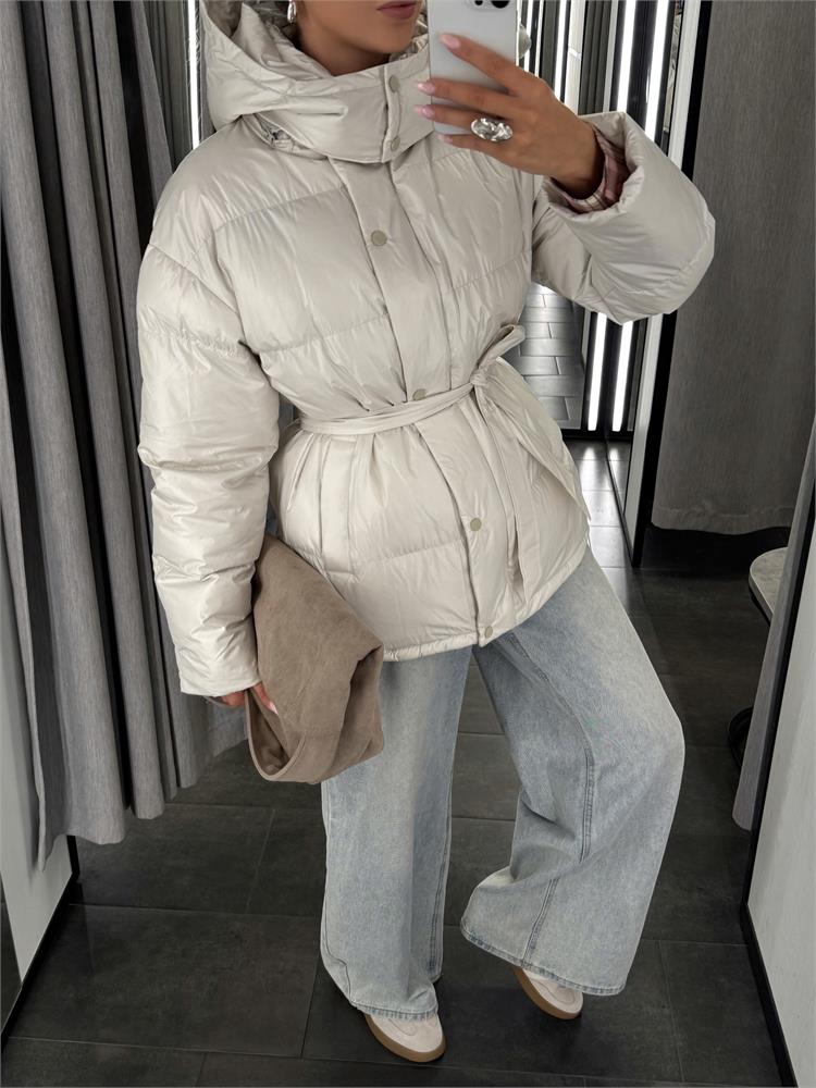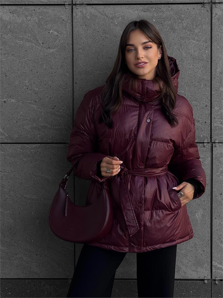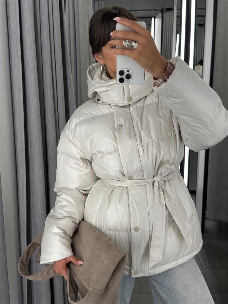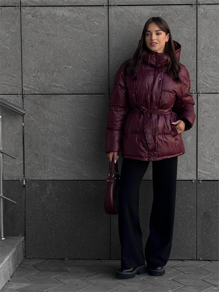 Куртка демисезонная на утеплителе, с капюшоном, пояс в комплекте 5782