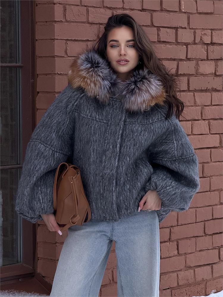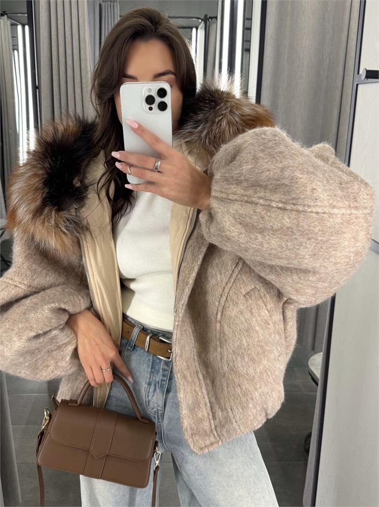 Куртка-парка PREMIUM из шерсти, с мехом лисы, наполнитель-100% гусиный пух 8833
