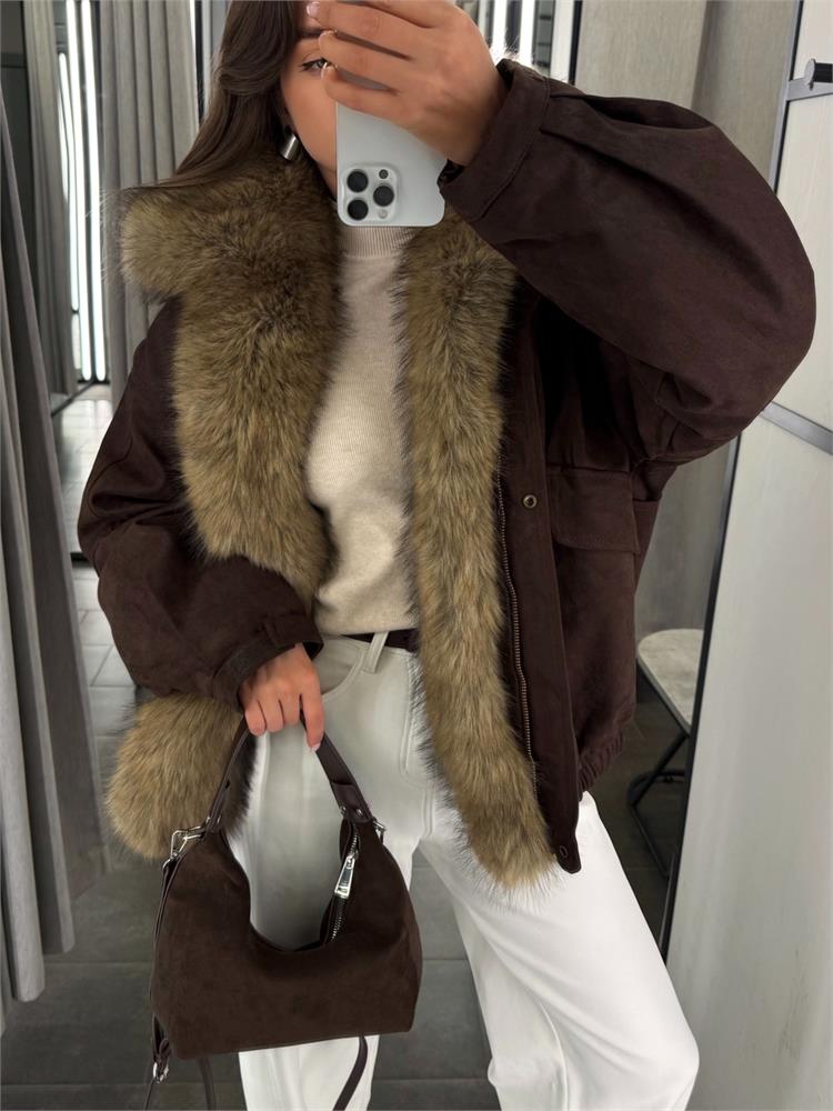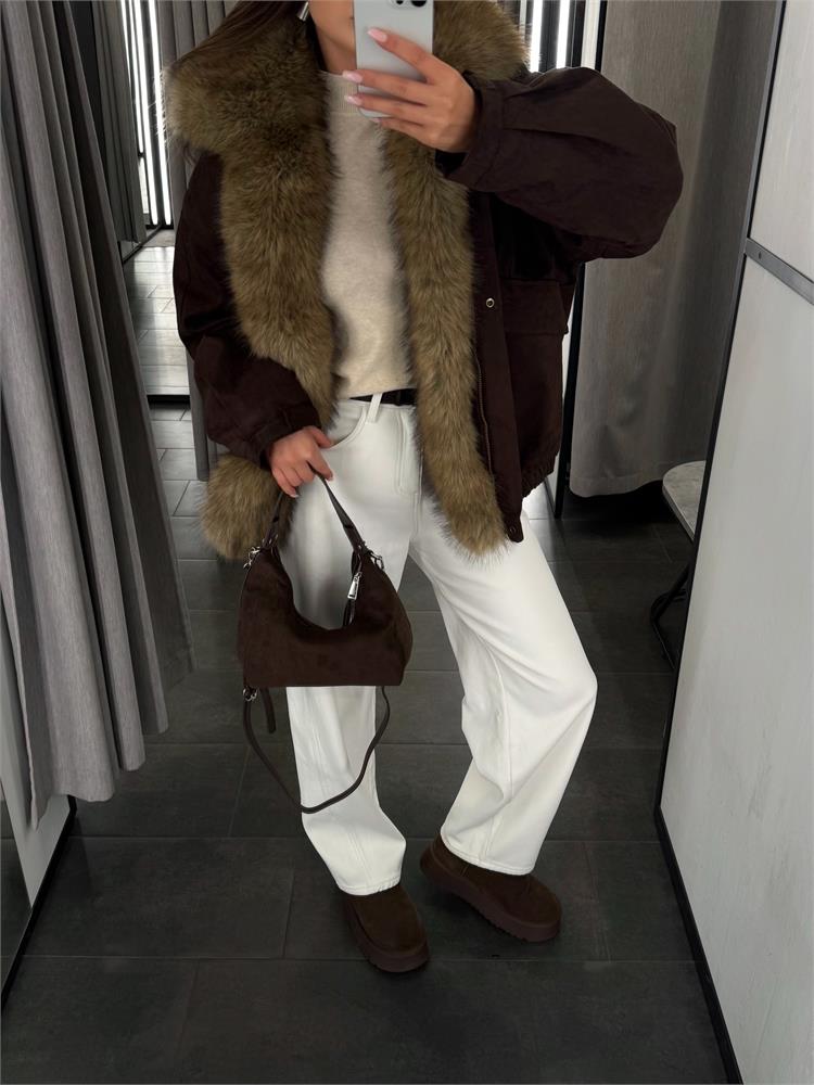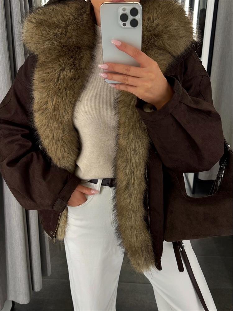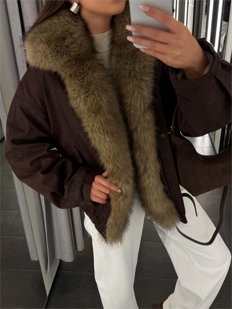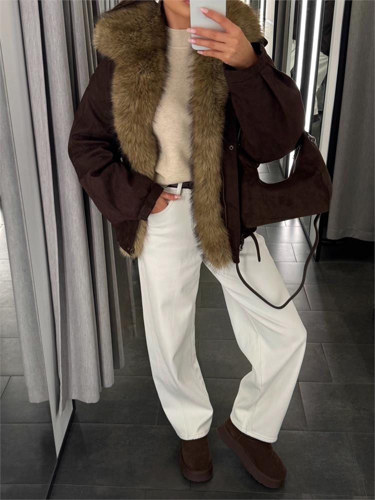 Куртка-пилот из экозамши, с экомехом, утеплённая 25093