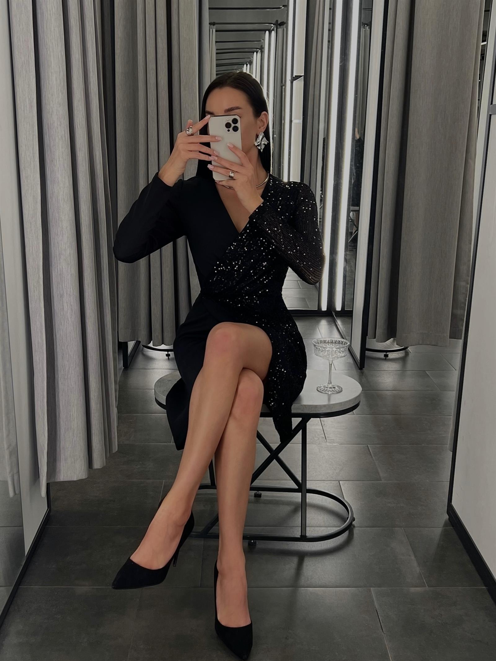 Параметры 44: длина изделия – 90 см; обхват груди – 92 см; обхват талии – 68 см; обхват бёдер – 94 см; ширина плеча – 9 см; длина рукава – 55 см.