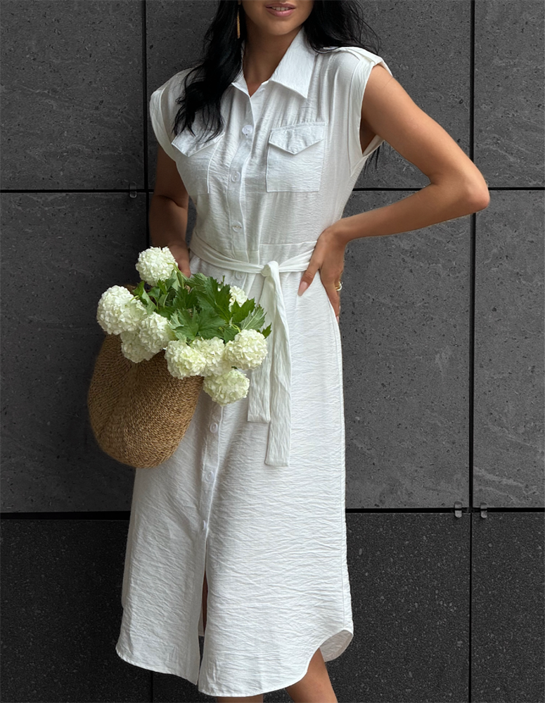 Платье-рубашка в стиле сафари из льна 0322