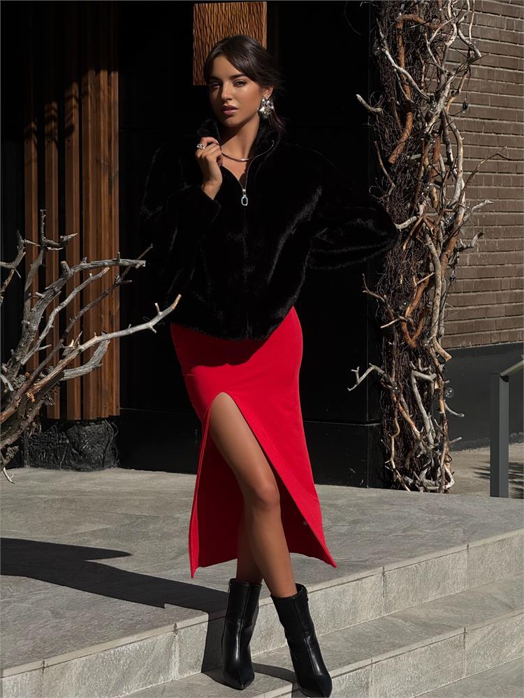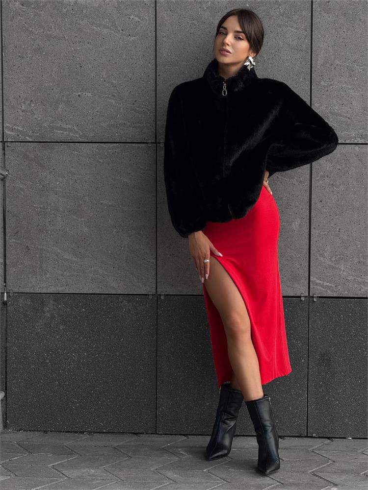 Параметры модели: ОГ 90 см; ОТ 68 см; ОБ 93 см. Рост 168 см.