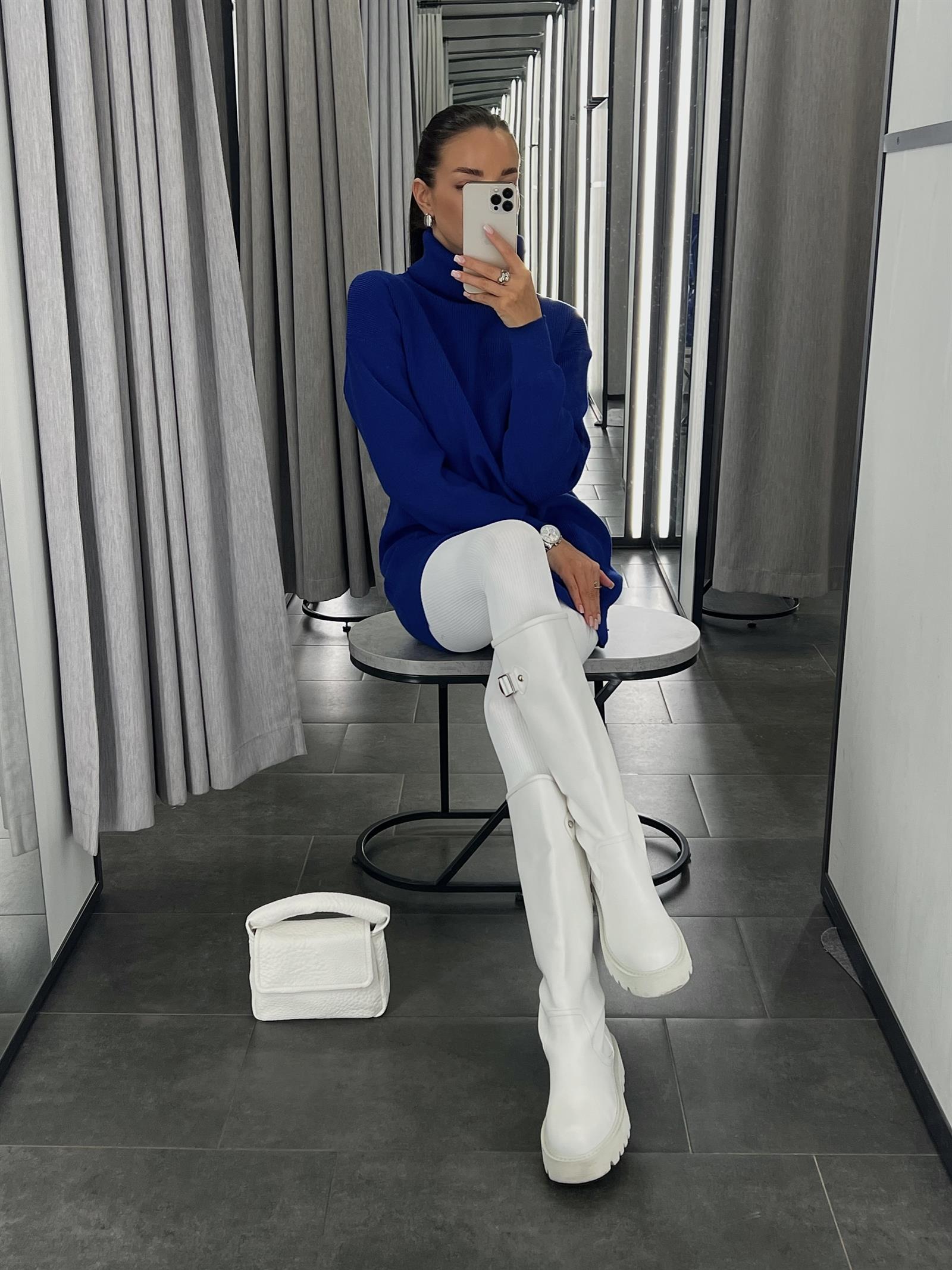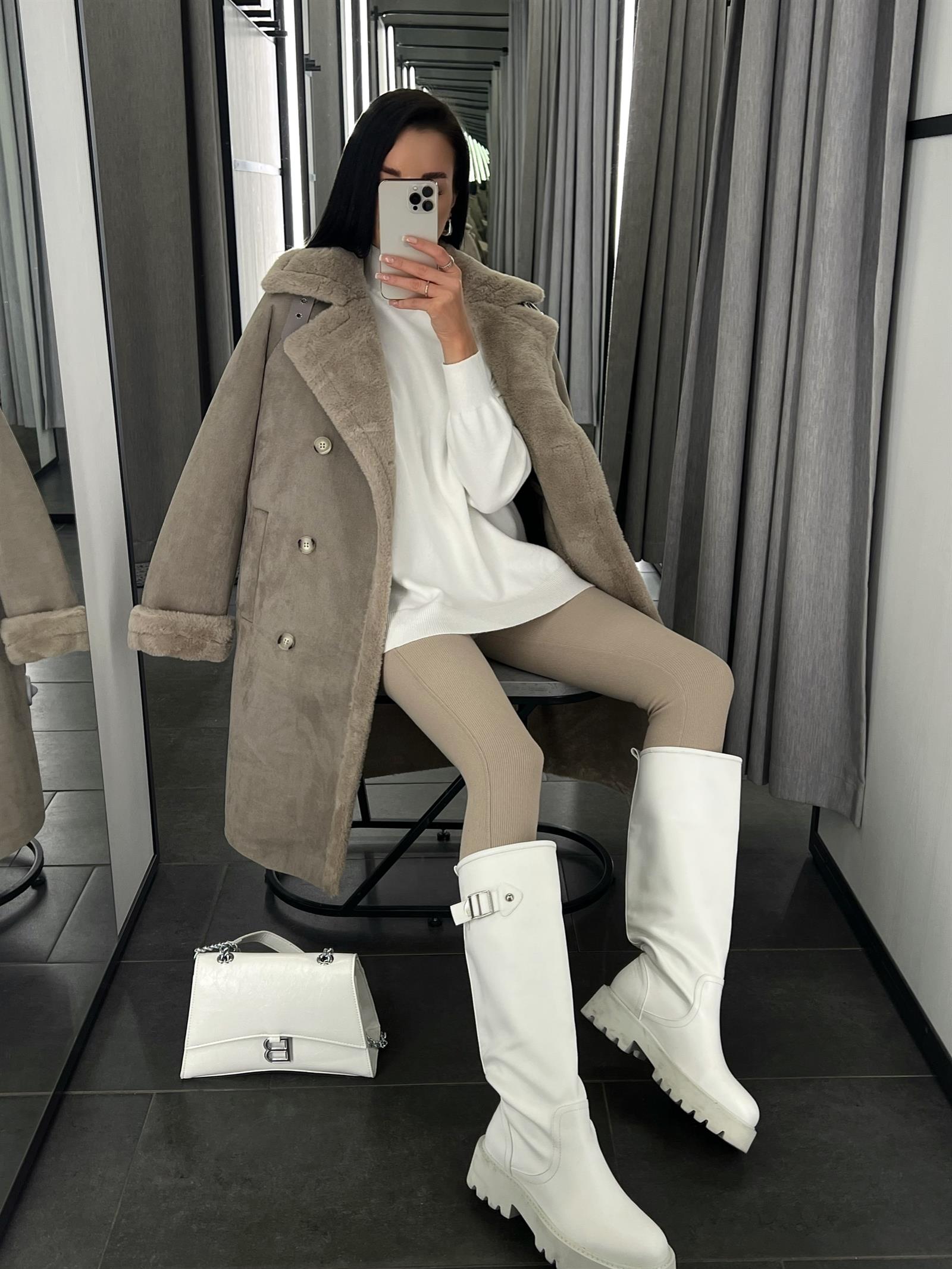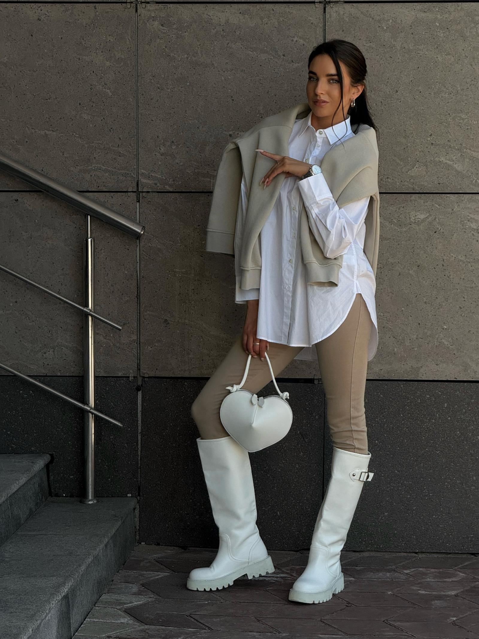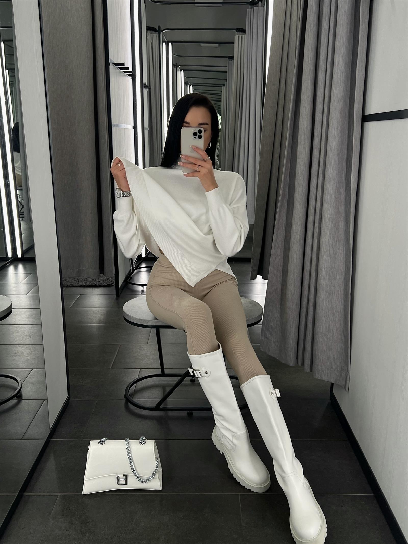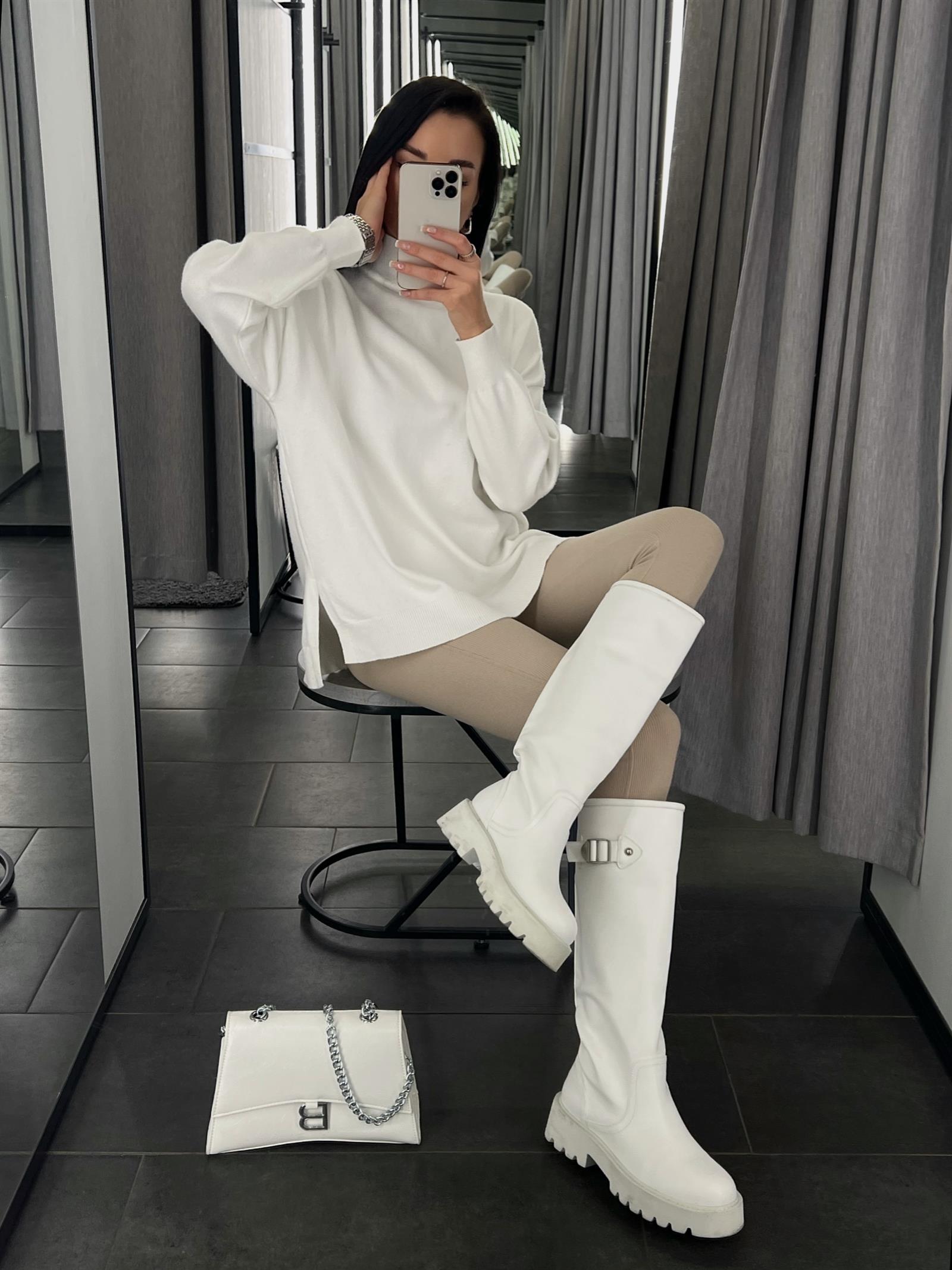 Демисезонные сапоги из экокожи на платформе. Высокое голенище с петелькой сзади, грубая подошва. Акцентный ремешок сбоку голенища.