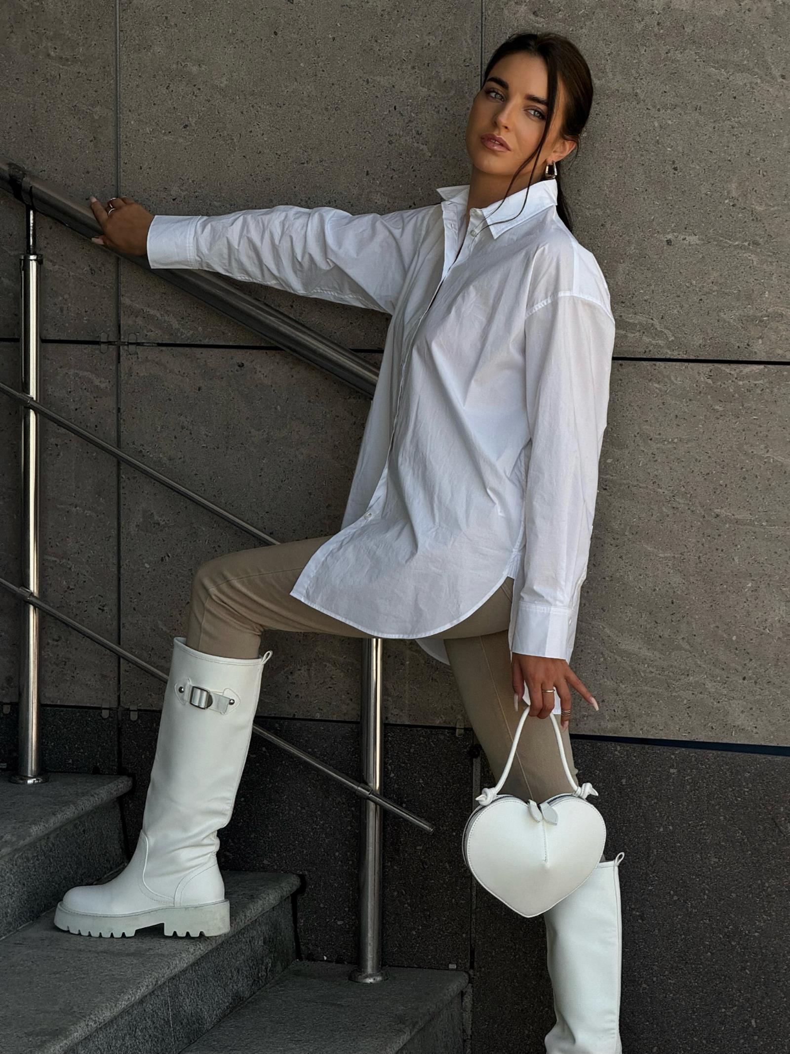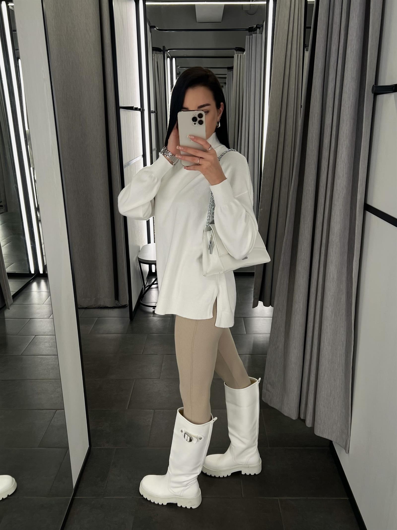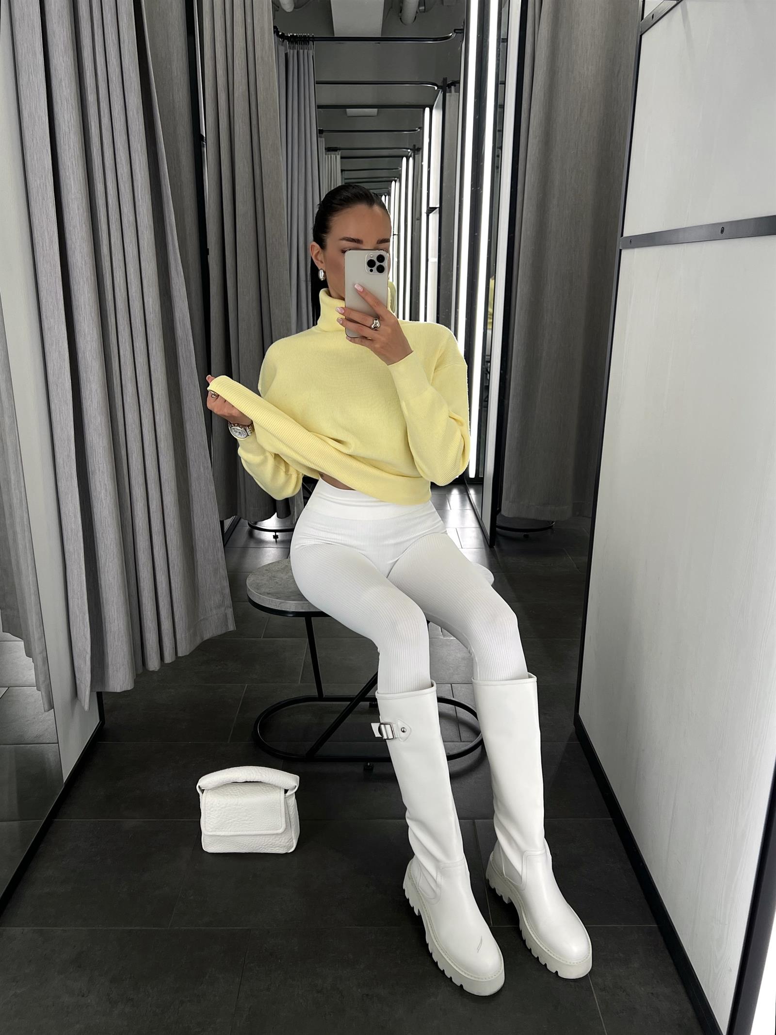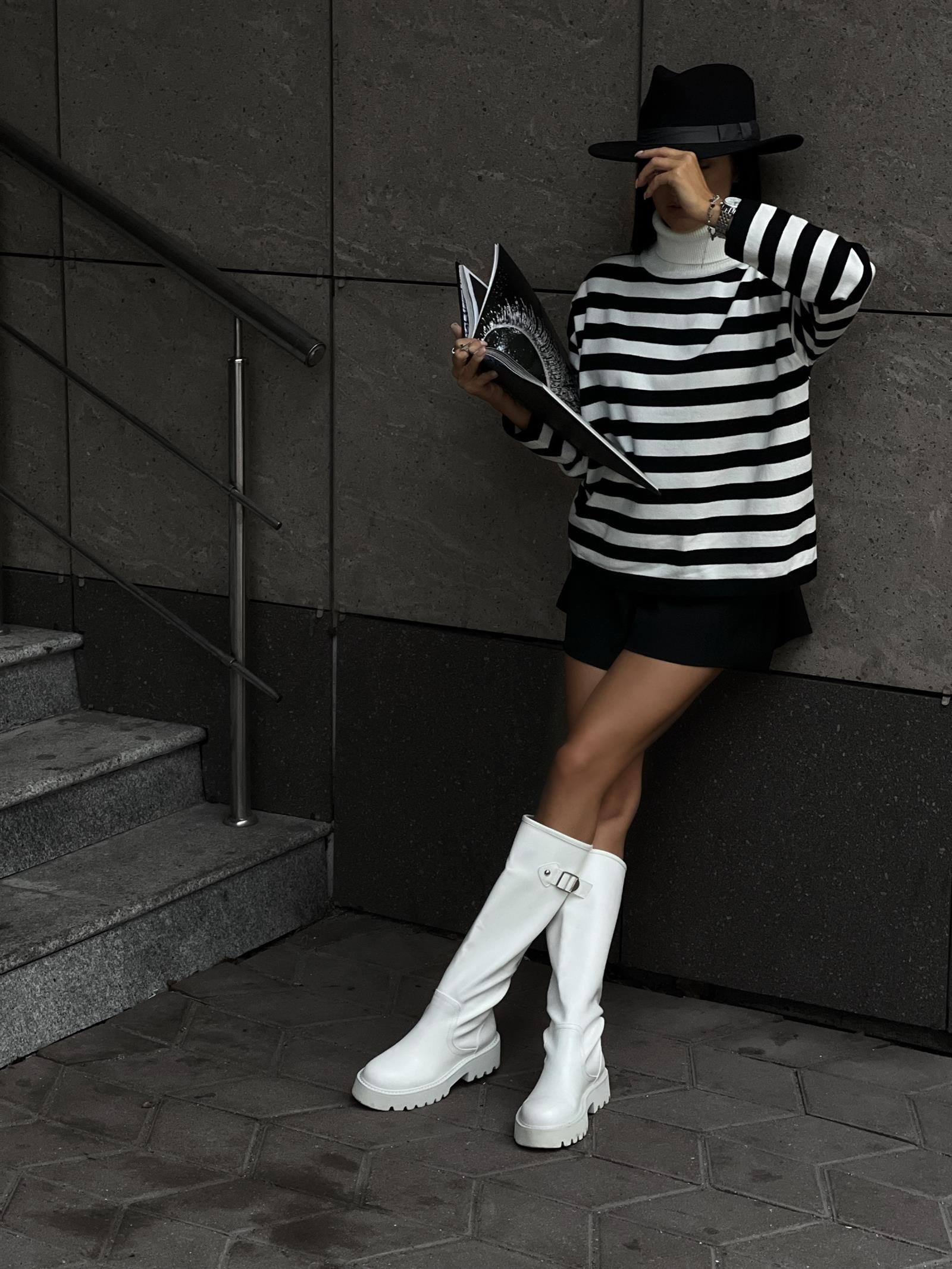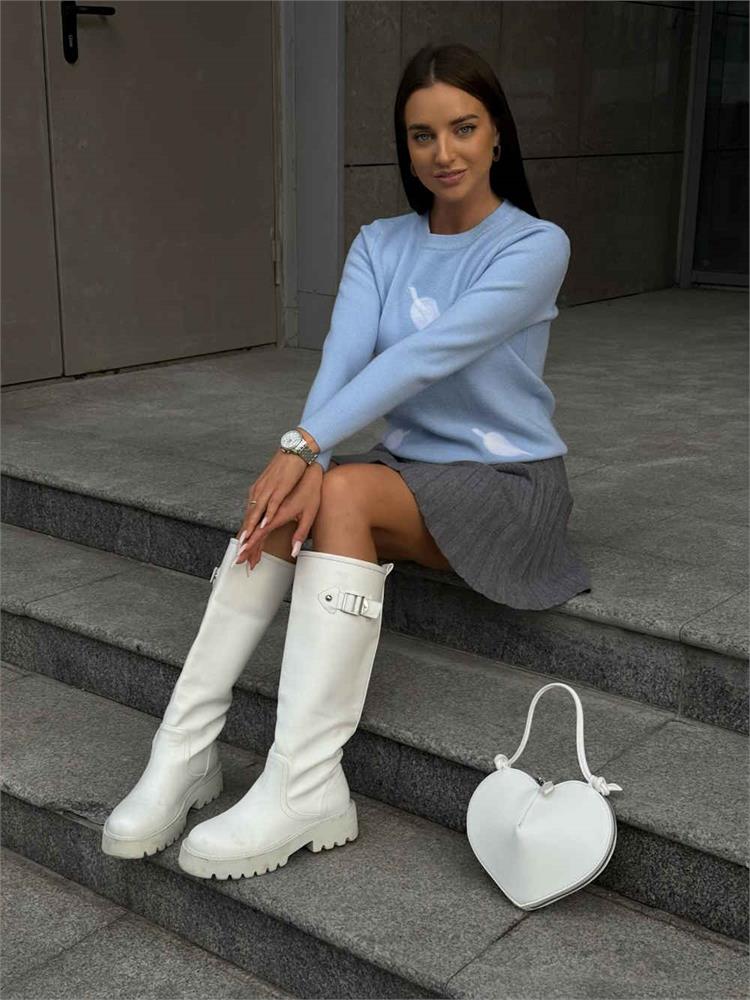 Демисезонные сапоги из экокожи на платформе. Высокое голенище с петелькой сзади, грубая подошва. Акцентный ремешок сбоку голенища.