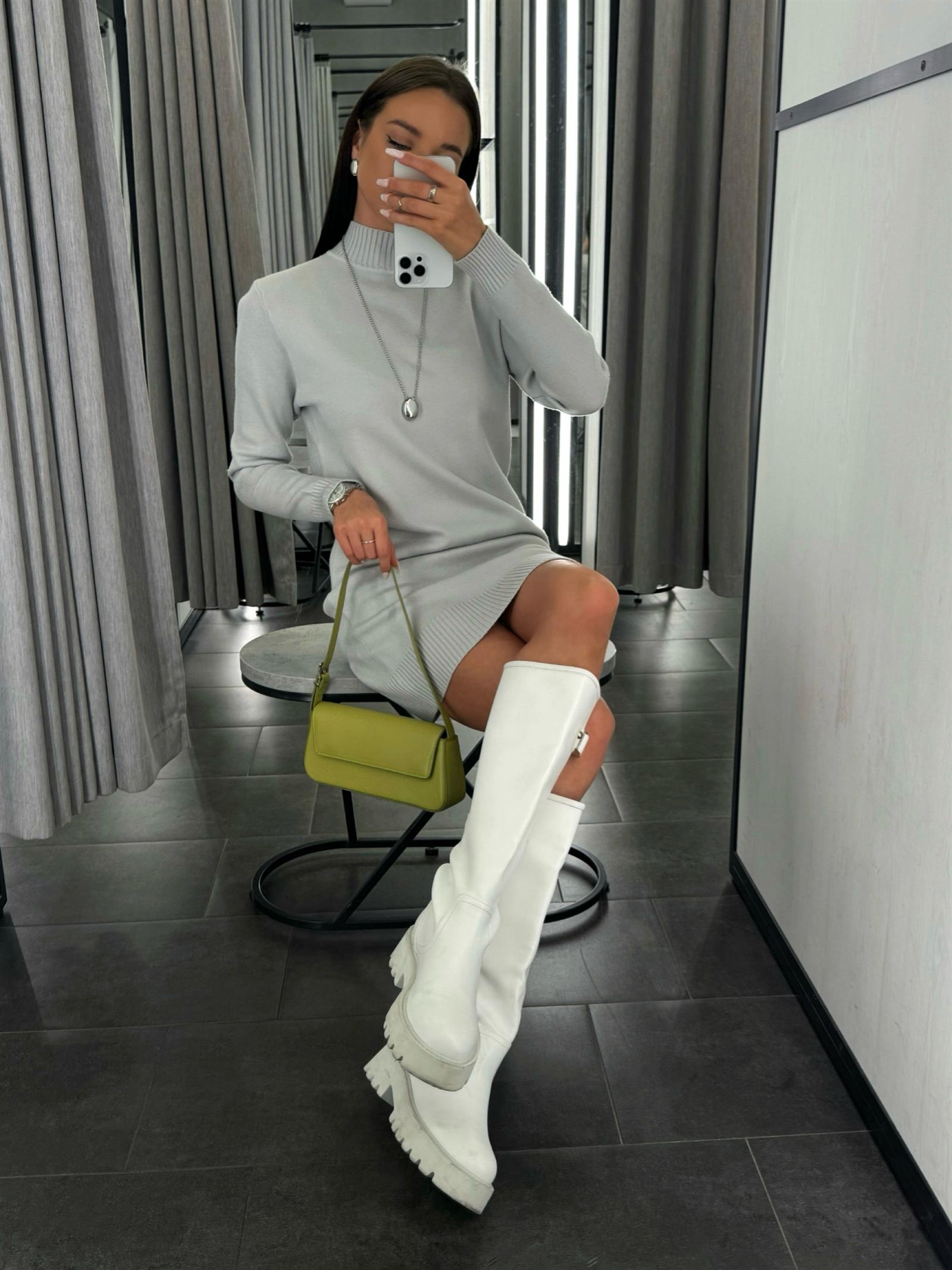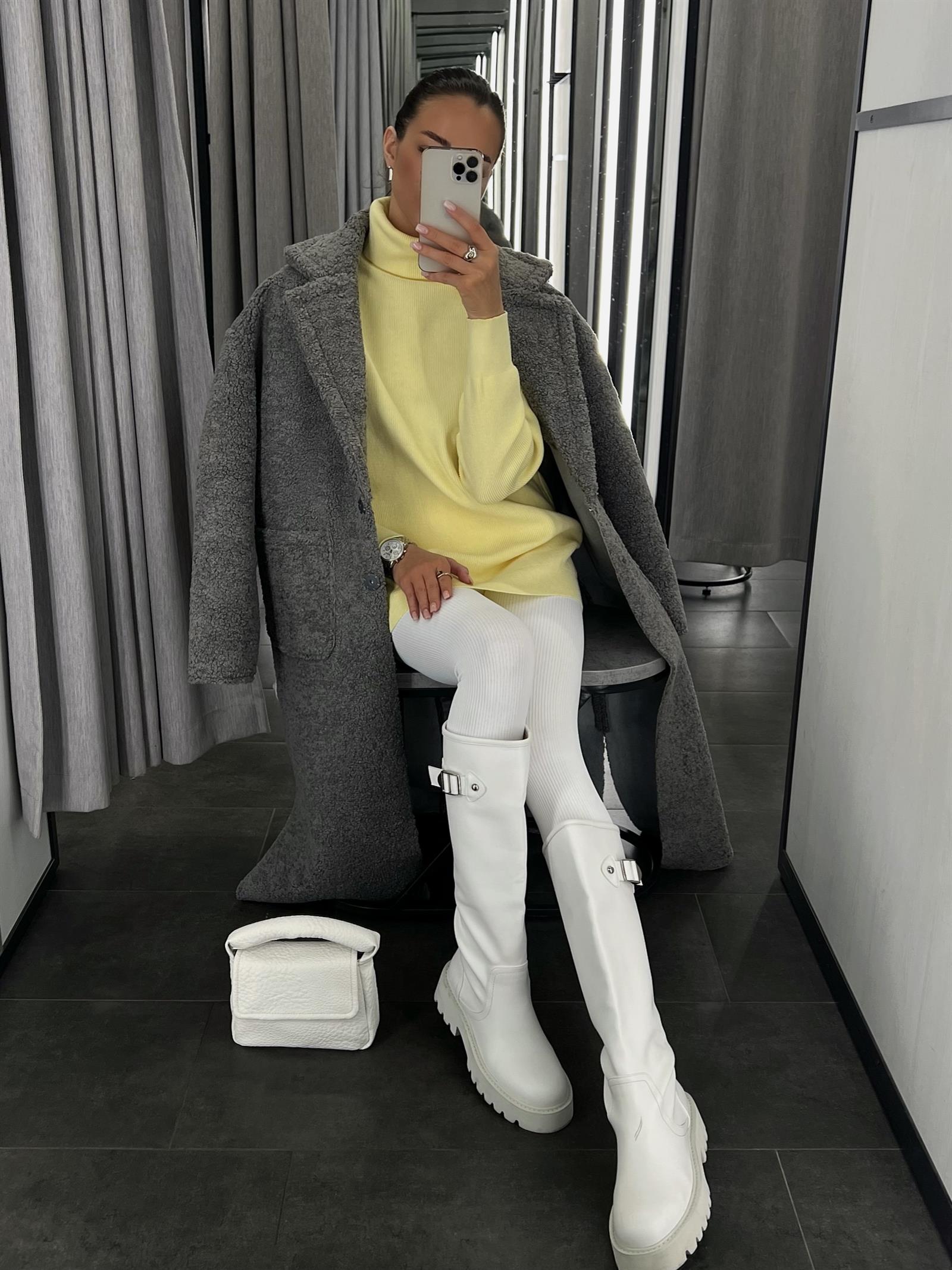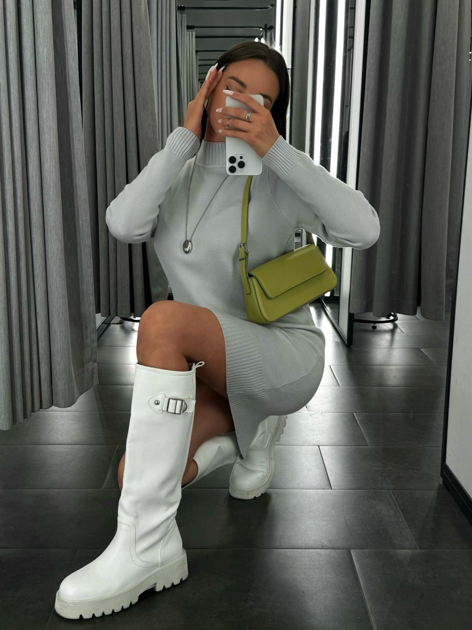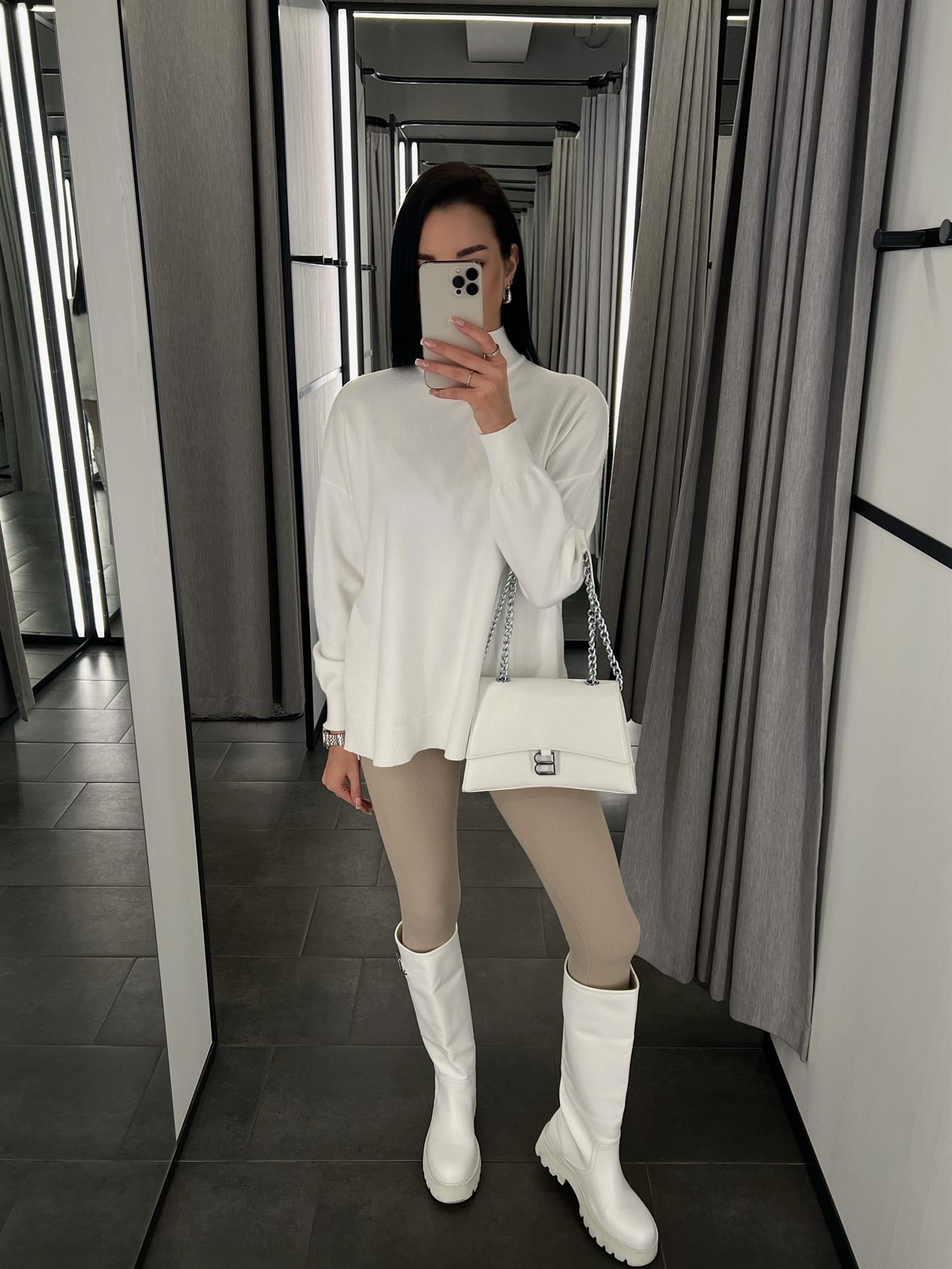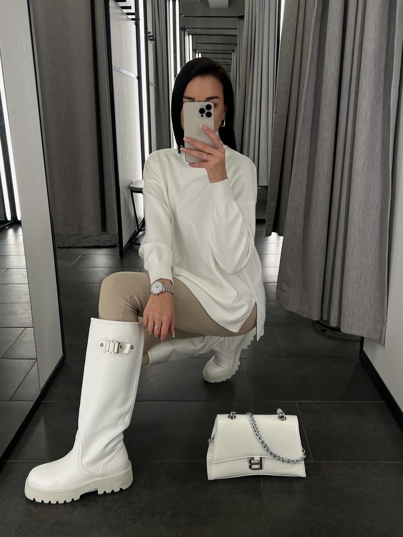 Демисезонные сапоги из экокожи на платформе. Высокое голенище с петелькой сзади, грубая подошва. Акцентный ремешок сбоку голенища.