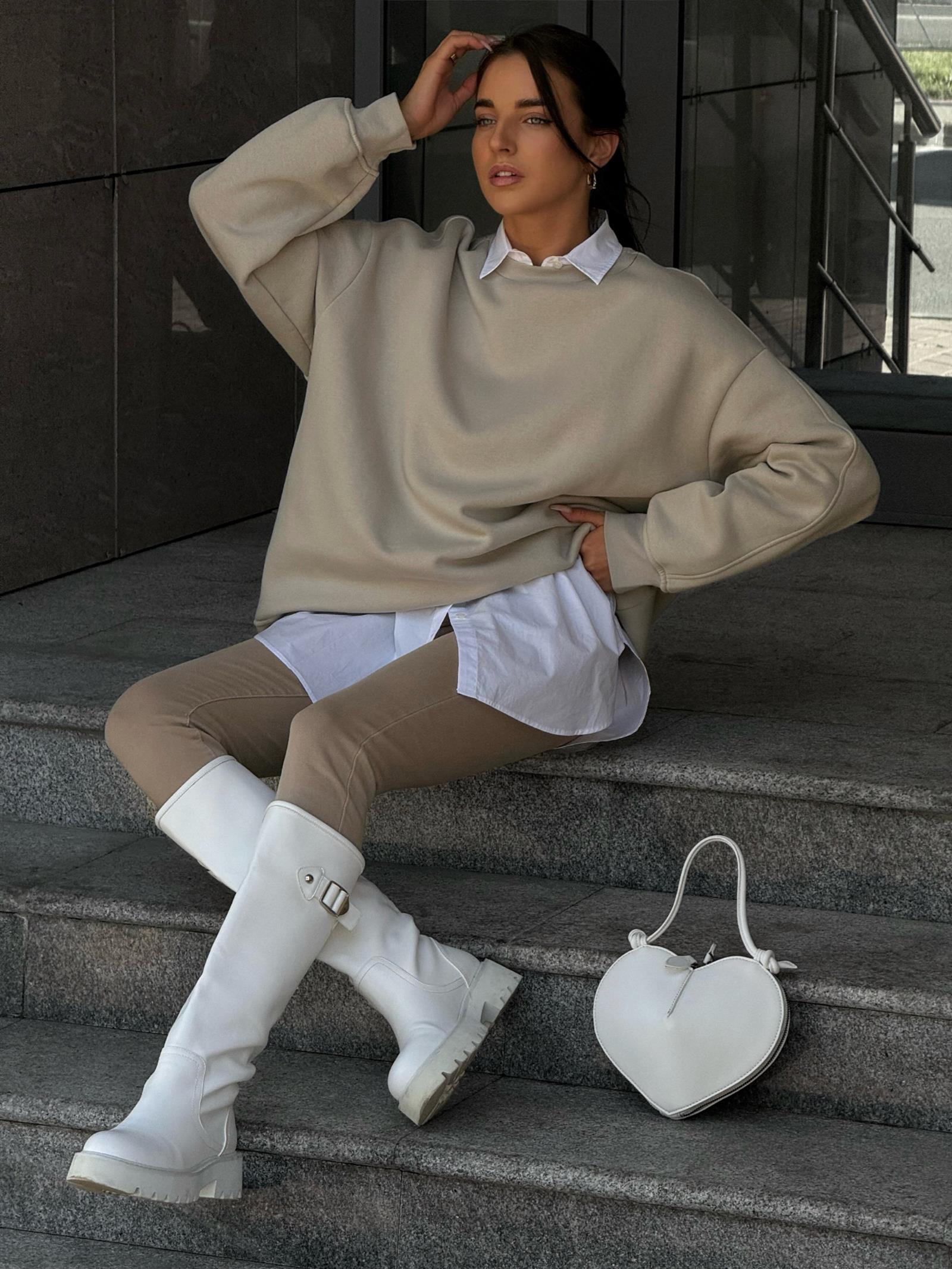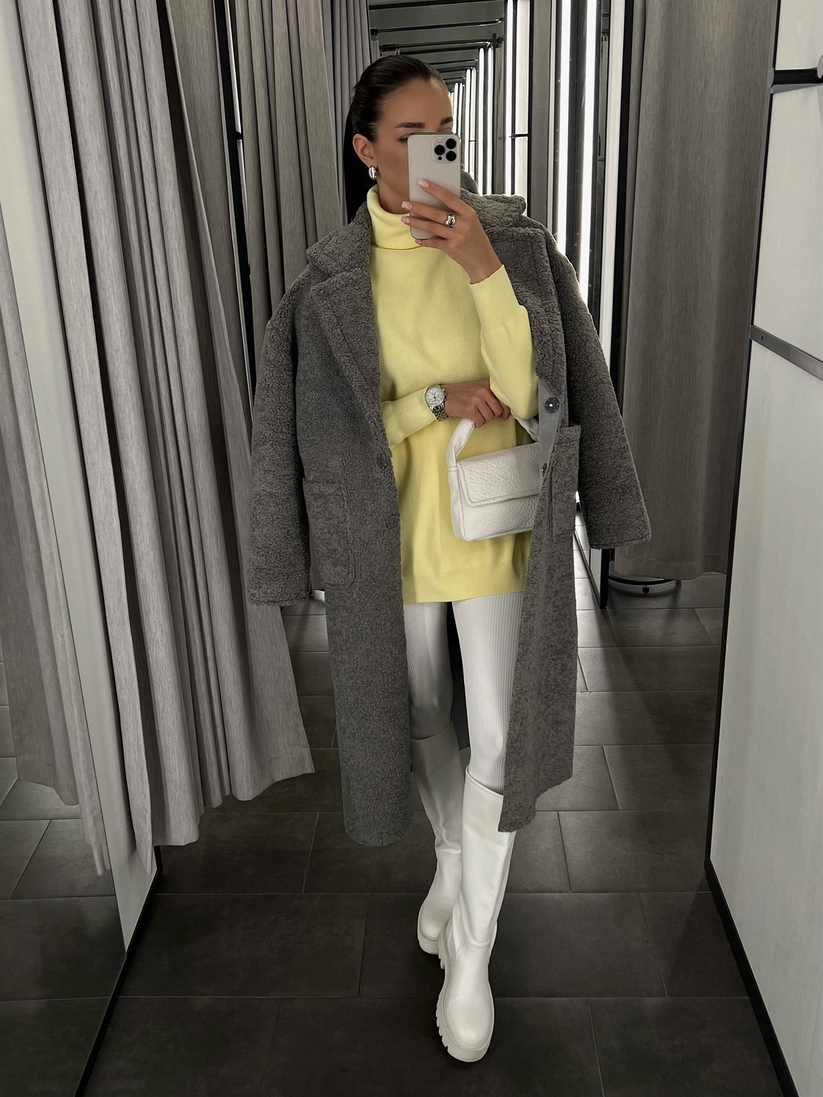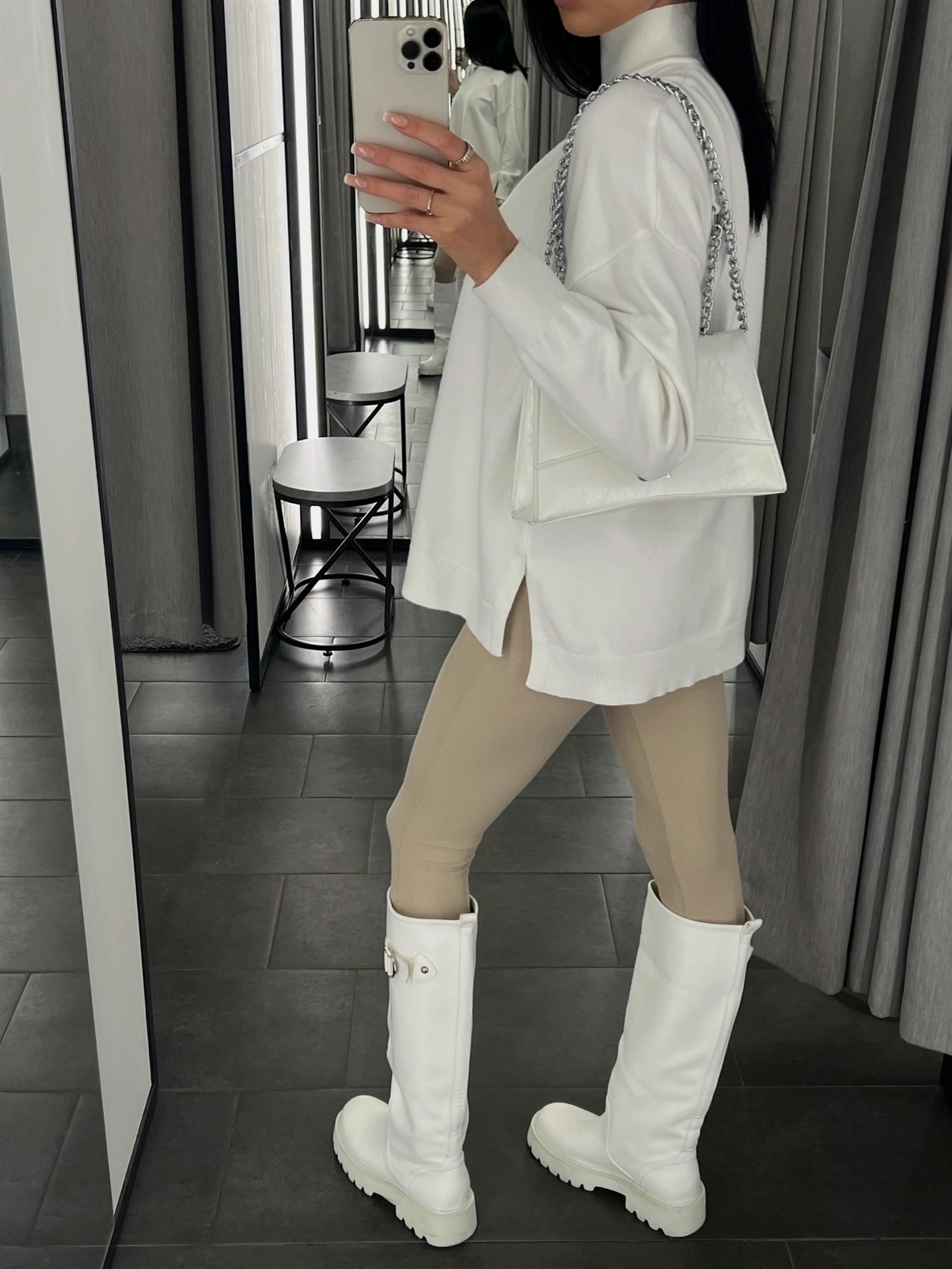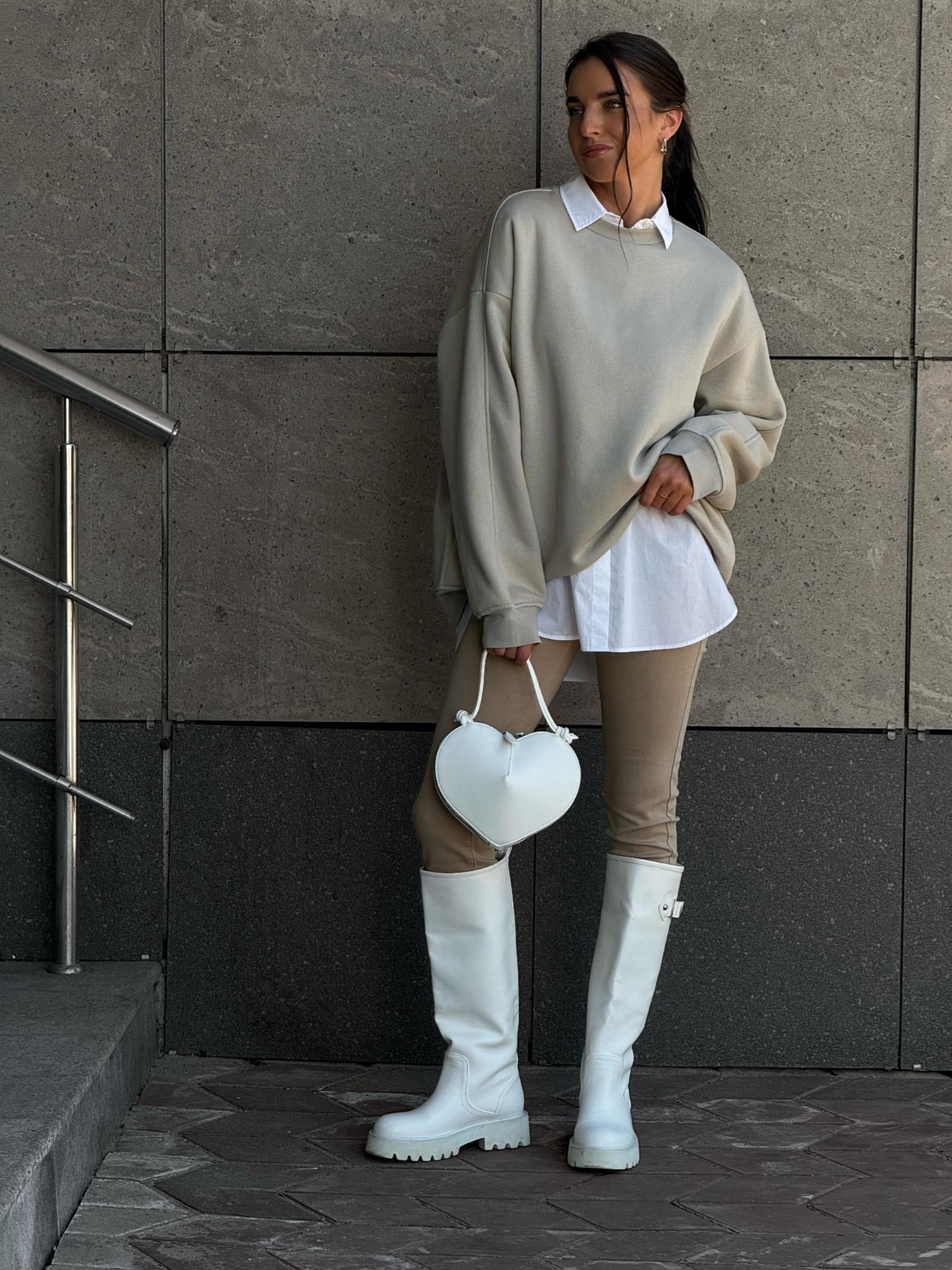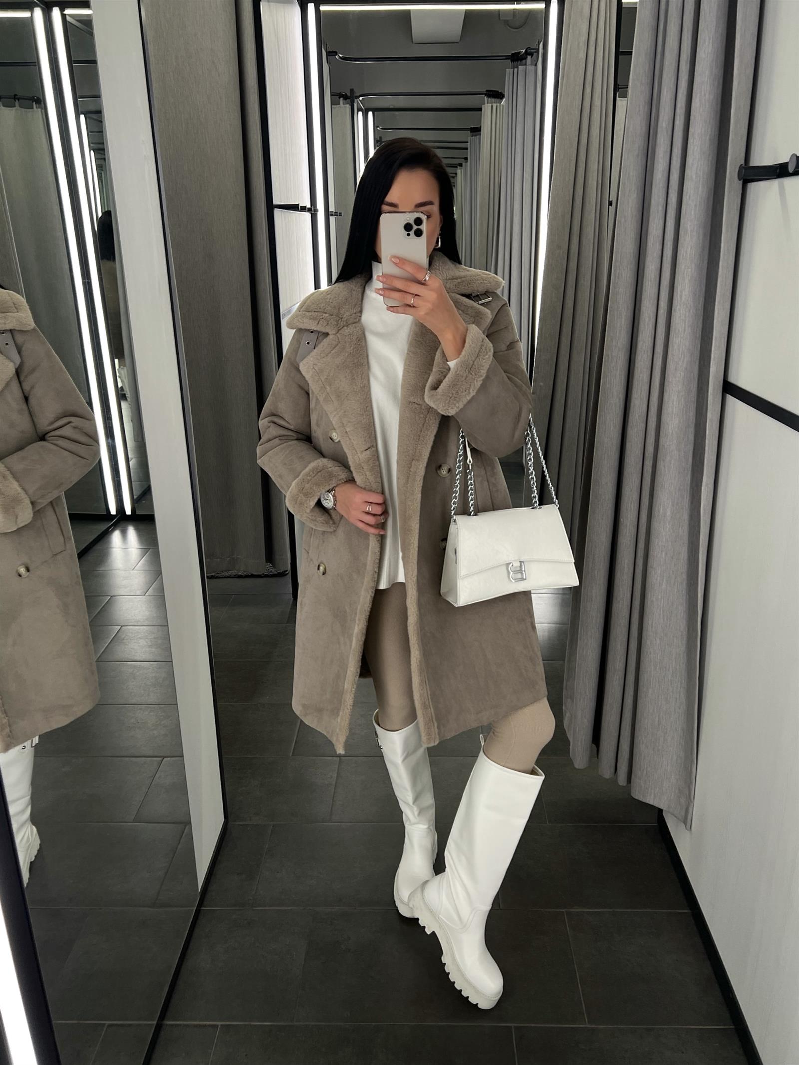 Демисезонные сапоги из экокожи на платформе. Высокое голенище с петелькой сзади, грубая подошва. Акцентный ремешок сбоку голенища.