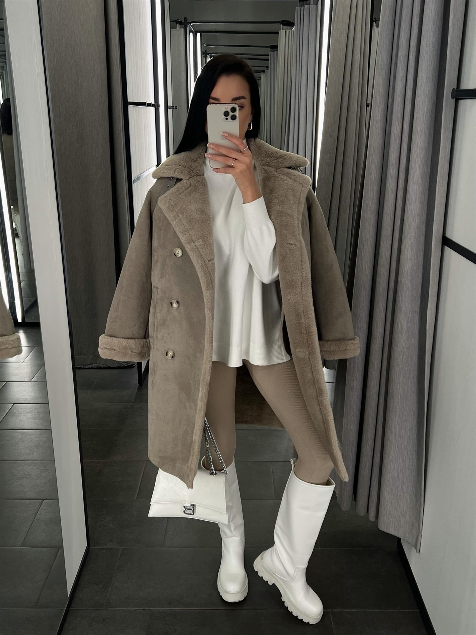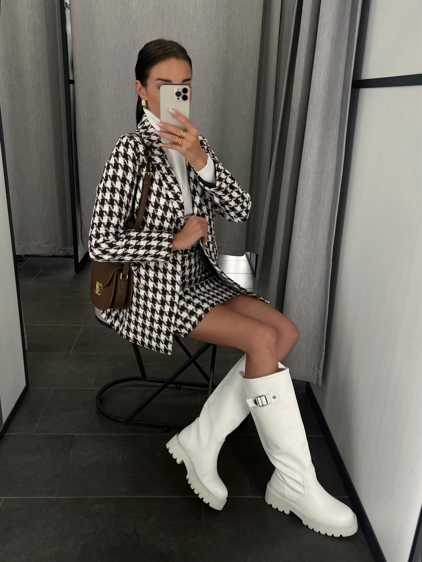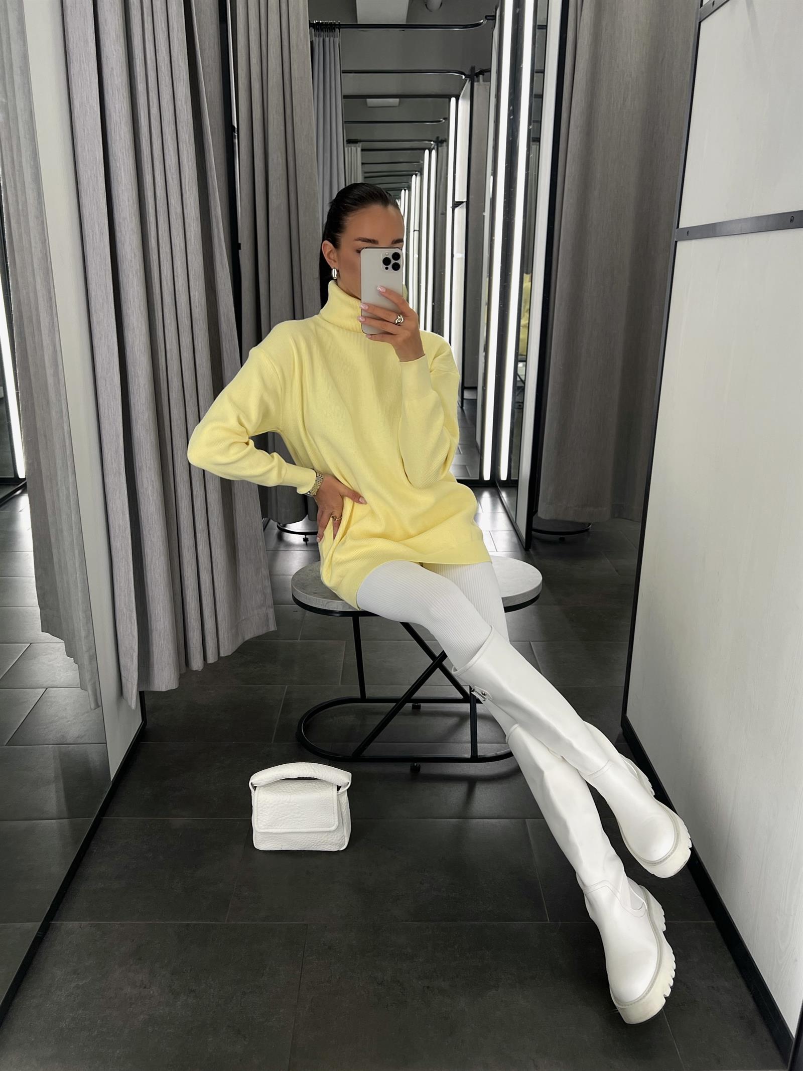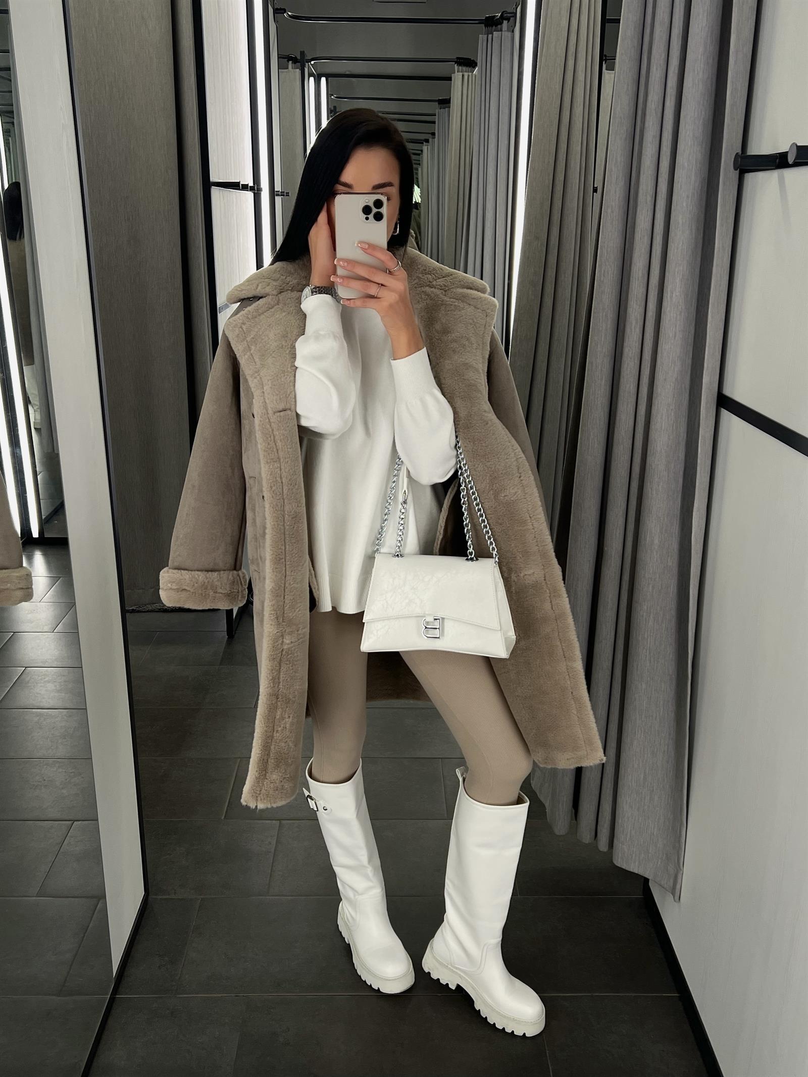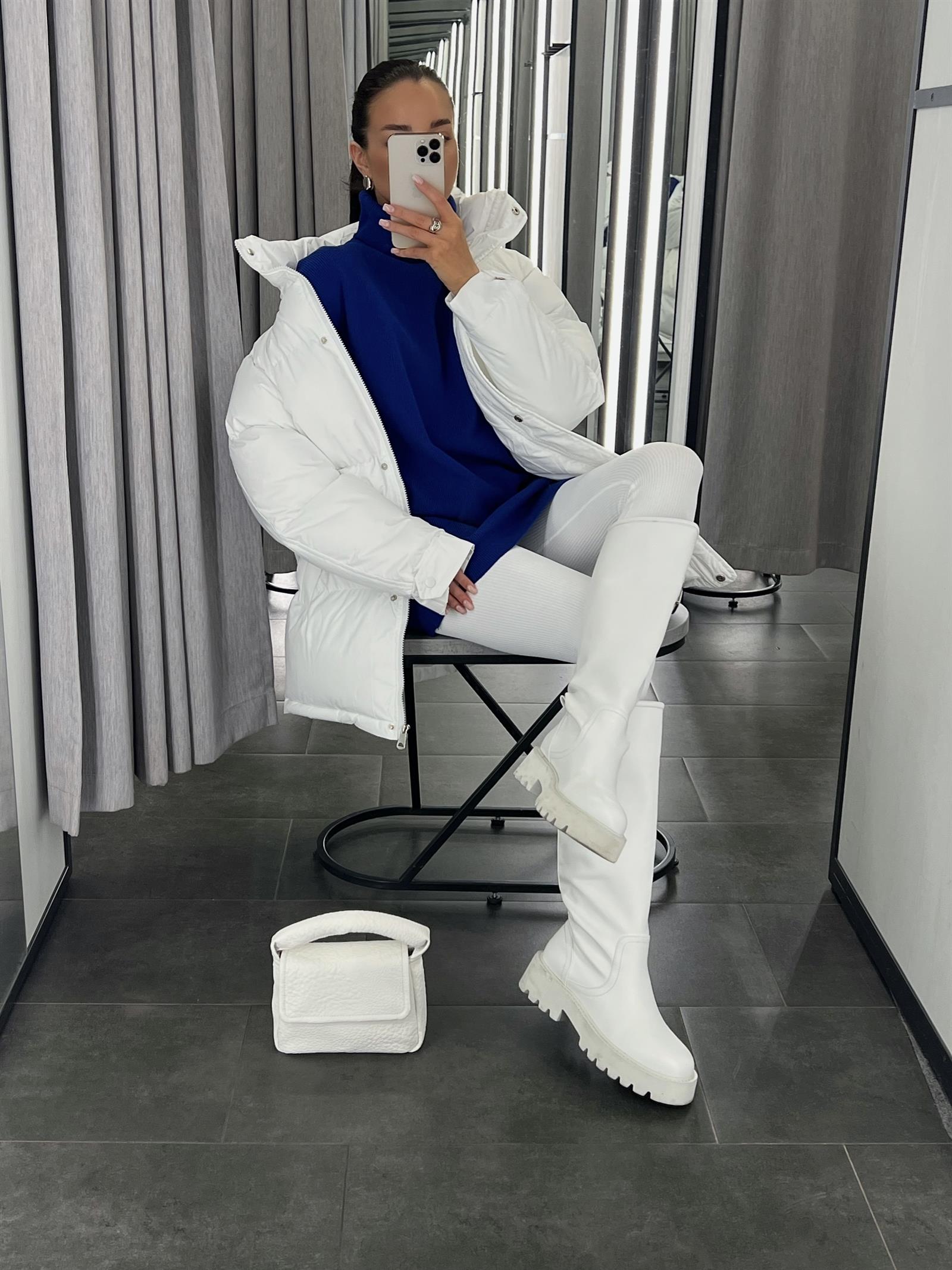 Демисезонные сапоги из экокожи на платформе. Высокое голенище с петелькой сзади, грубая подошва. Акцентный ремешок сбоку голенища.